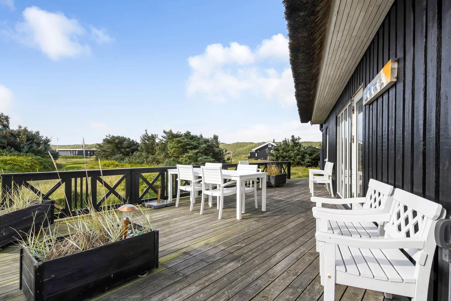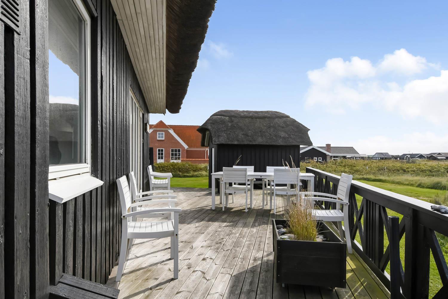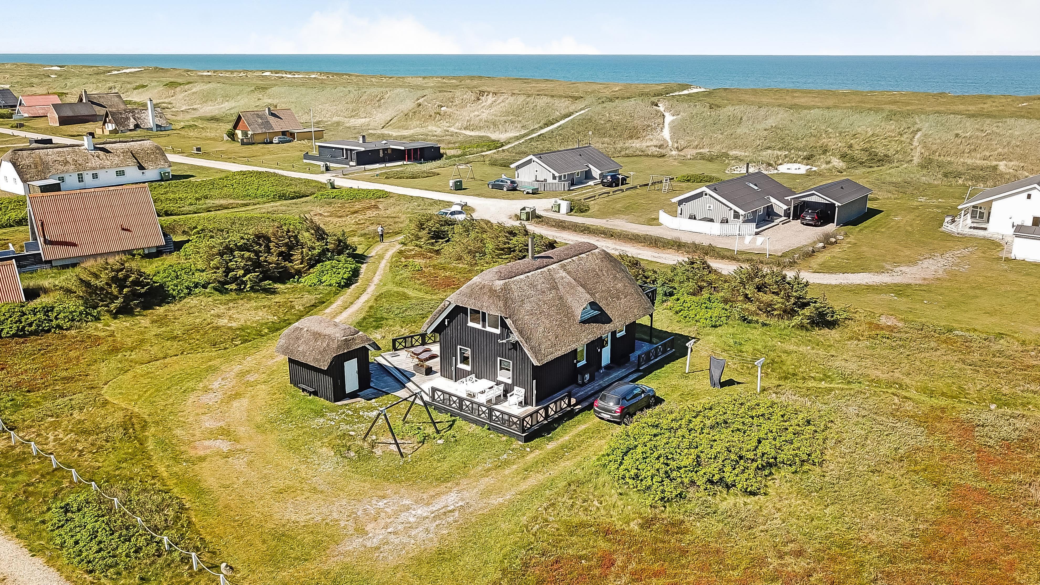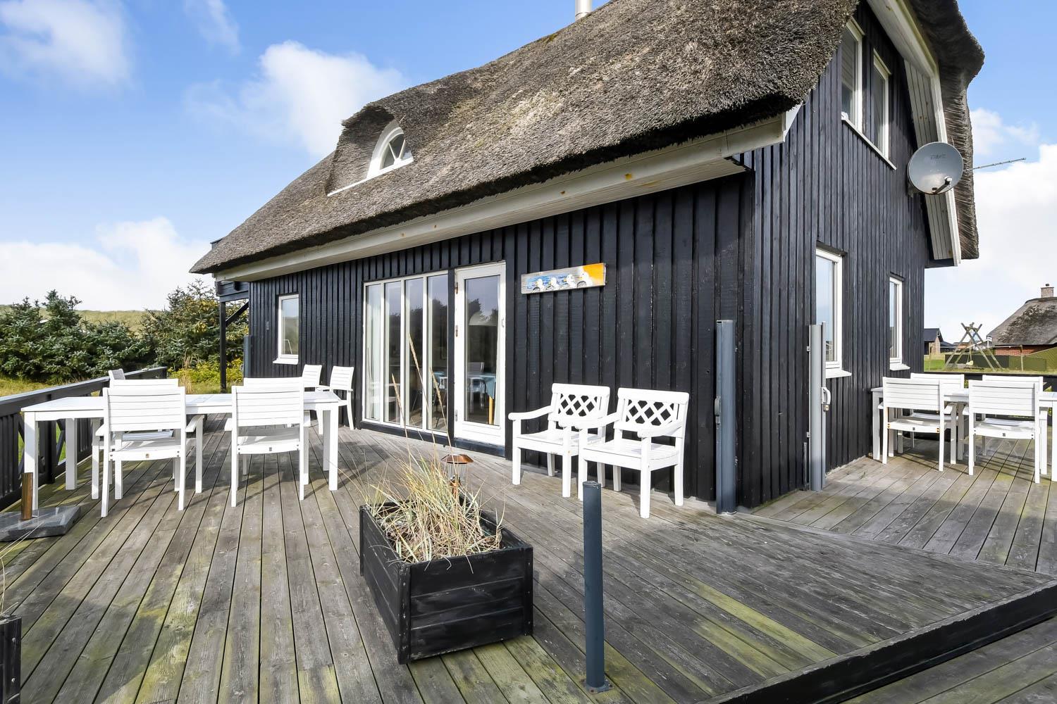 Romantisk, kvalitetshus med stråtag og gratis Internet. Flot og særdeles velholdt træhus med klitudsigt og kun et stenkast fra Vesterhavet. Et flot feriehus med god plads til hele familien eller til parret som ønsker en romantisk ferie. Nyd husets mange muligheder eller gå en dejlig tur ved Vesterhavet.