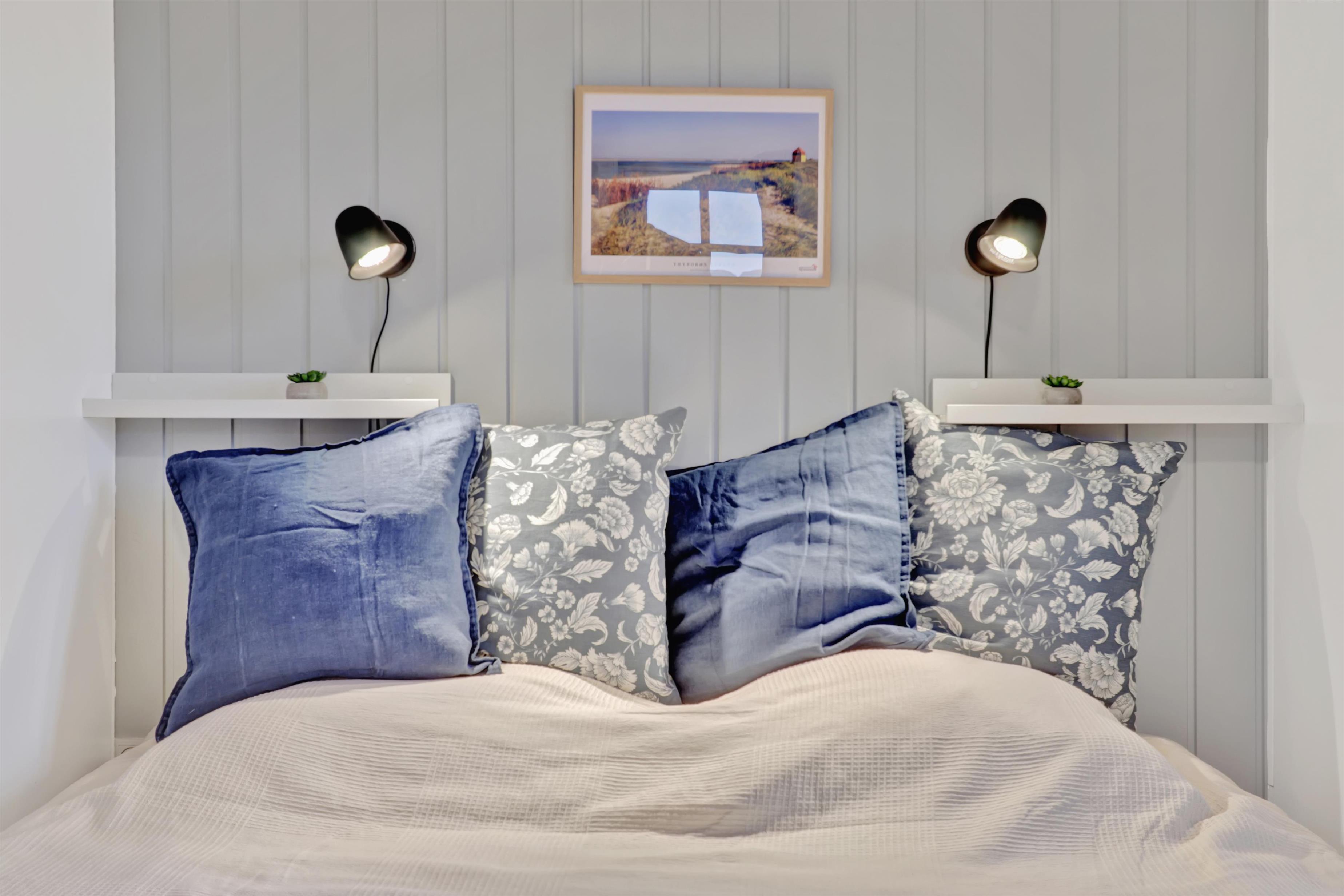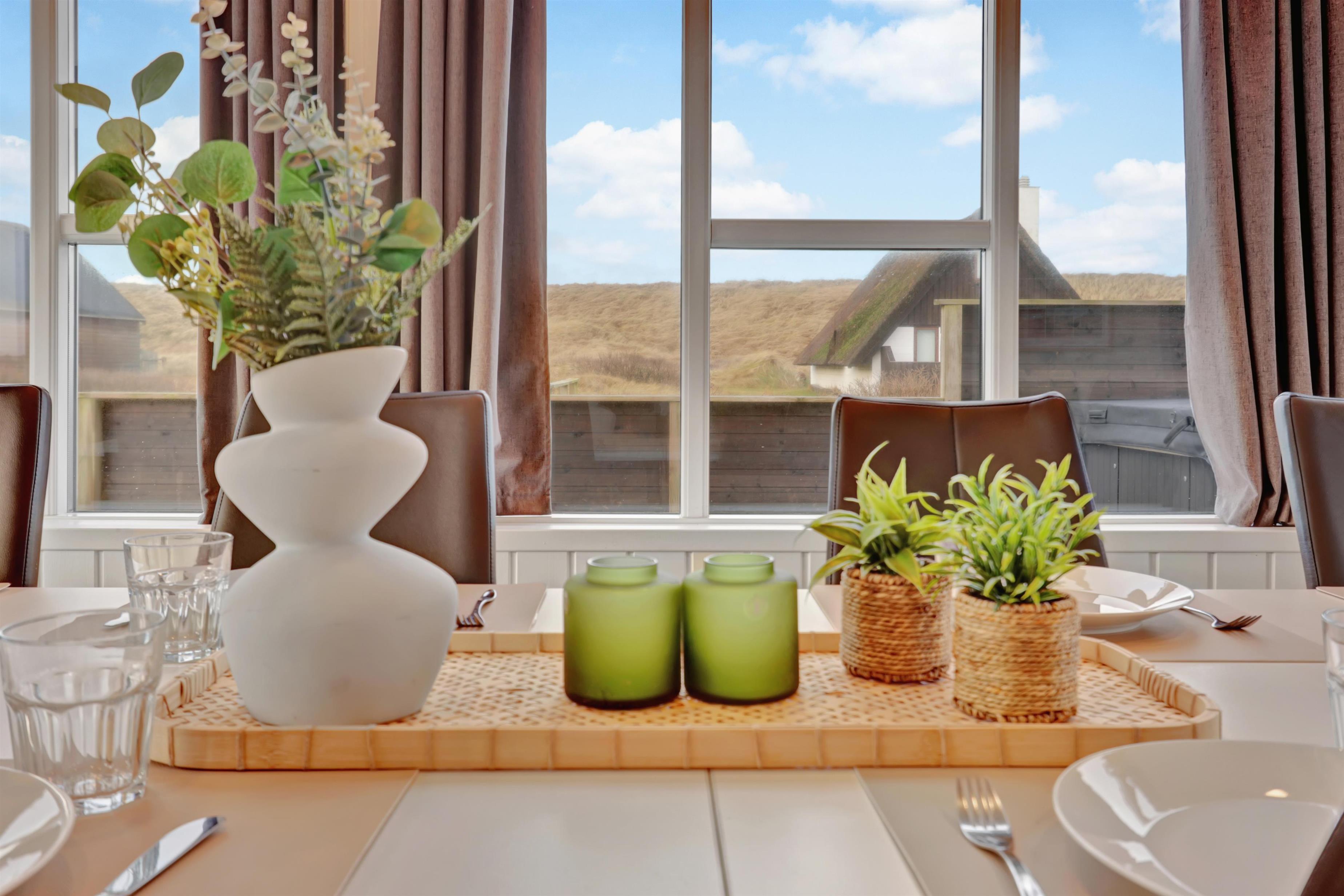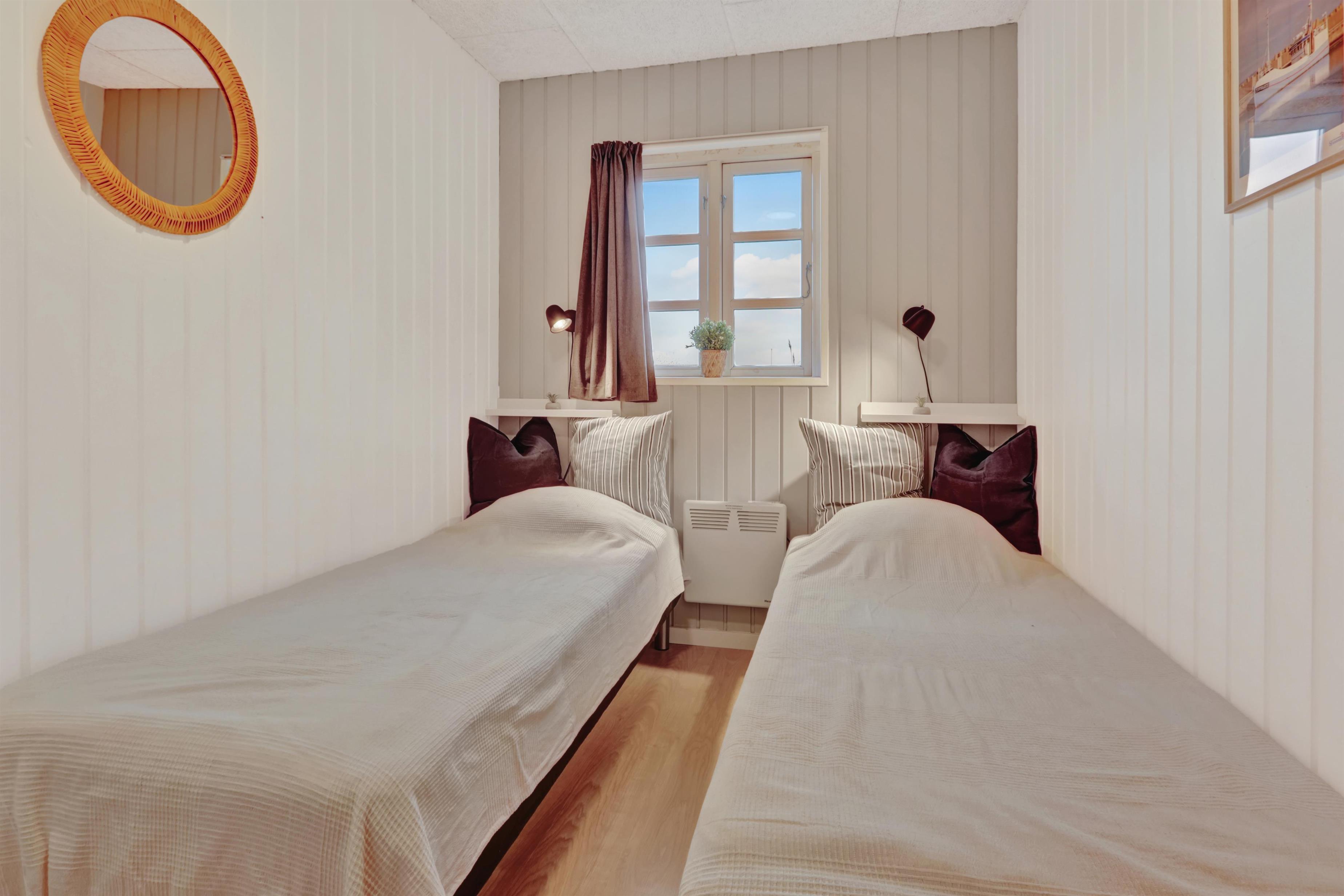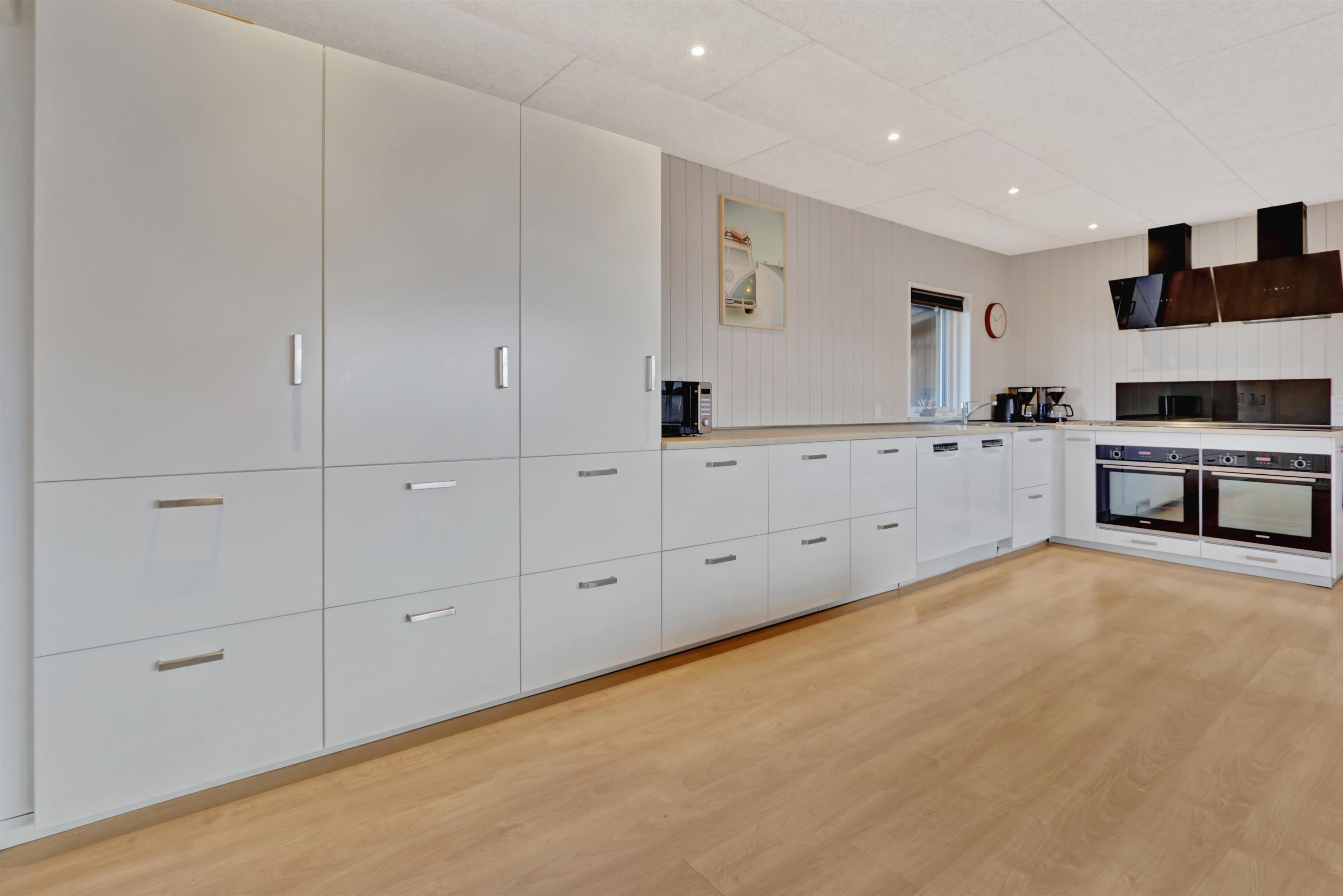 Huset er indrettet med 4 soverum i selve huset, derudover findes der et anneks med plads til to personer. Ligeledes forefindes der en hems i forbindelse med aktivitetsrummet til to personer. Huset indeholder 3 dobbeltsenge samt 4 enkeltsenge og to madrasser på hemsen. Sommerhuset er hele 182m2 stort, og der er derfor rigelig med plads til flere familier. Huset er indrettet med en lille entré med plads til overtøj, derefter går man ind i det store køkken fra 2022 hvor der er dobbelt op på samtlige hvidevarer, to ovne, to opvaskemaskiner, to kogeplader, stort køleskab og fryseskab mm. Køkkenet er kombineret med tv stue med sofagruppe samt 65t fjernsyn og brændeovn. Fra køkkenet er der direkte adgang til spisestuen hvor de store vinduer gør at man kigger direkte op mod klitterne. Huset er ligeledes indrettet med to gode badeværelser med gulvvarme i hver sin ende af huset. i badeværelset ved aktivitetsrummet er der direkte adgang til saunaen. I mellemgangen findes det lille bryggers hvor der findes vaskesøjle med vaskemaskine og tørretumbler. I enden af huset finder man det store aktivitetsrum hvor der er kombibord med poolbord/bordtennis, bordfodbold, sofagruppe med 55t fjernsyn, brændeovn mm. Det er ligeledes herfra der er direkte adgang til husets hems med 2 sovepladser. Huset fremstår lyst over det hele med hvide vægge og lyse laminatgulve samt hvide akustik lofter, så det ikke virker så højlydt når man sidder 12 rundt om spisebordet. Til børnene er der 1 barneseng og 2 barnestole. 2 stk husdyr er tilladt. Huset lejes ikke ud til ungdomsgrupper. Huset har ligeledes Fibernet installeret. Obligatorisk slutrengøring