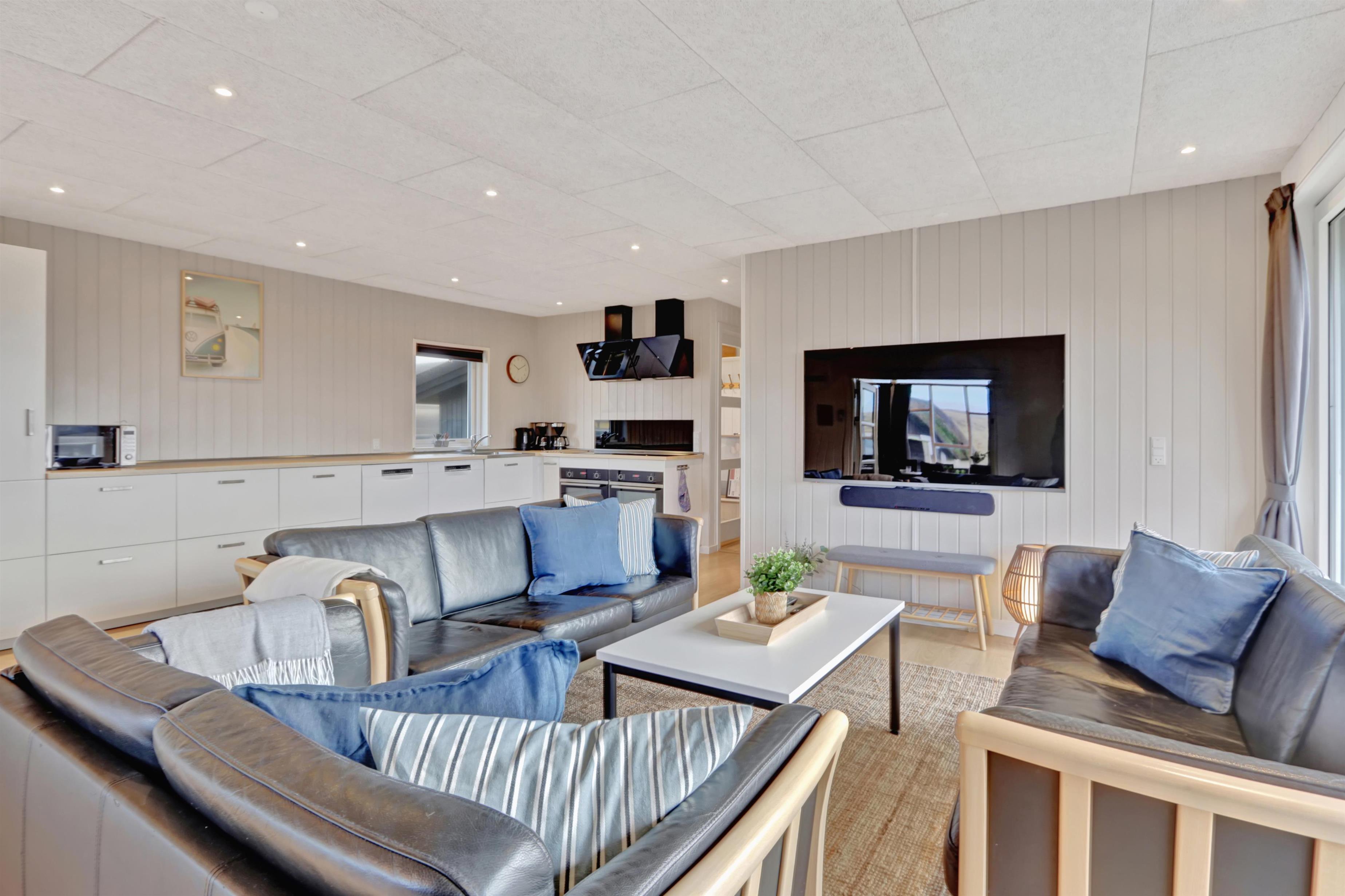 Nyrenoveret aktivitetshus med gratis fibernet. God plads til store familer eller de 2 famlilier som ønsker at rejse sammen. Unikt beliggende kun 100 meter fra Vesterhavet