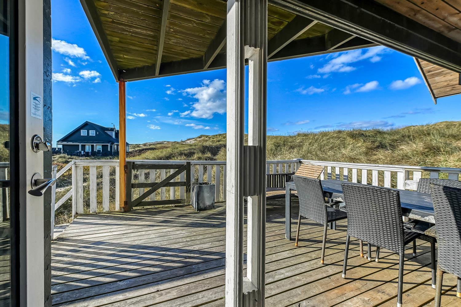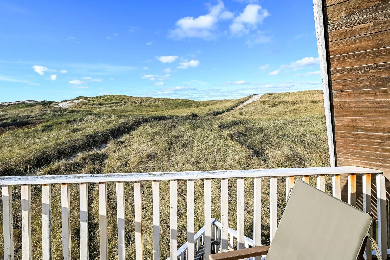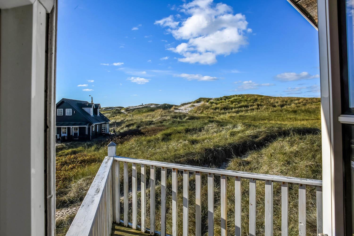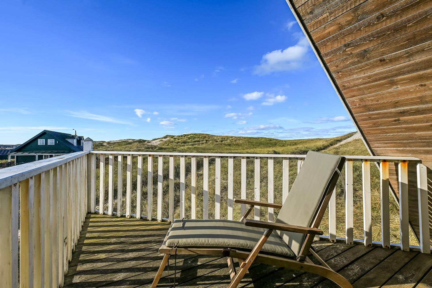 Huset er indrettet med charme og varme, og på første sal åbner udsigten sig over klitterne og det åbne landskab. Fra den sydvendte terrasse kan I nyde både havglimtet og de magiske solnedgange, som gør området så eftertragtet. Her er det oplagt at starte dagen med en kop kaffe i morgensolen eller afslutte aftenen med et glas vin, mens himlen farves gylden.