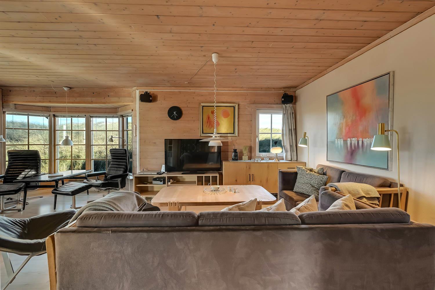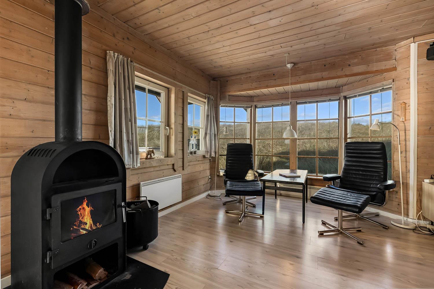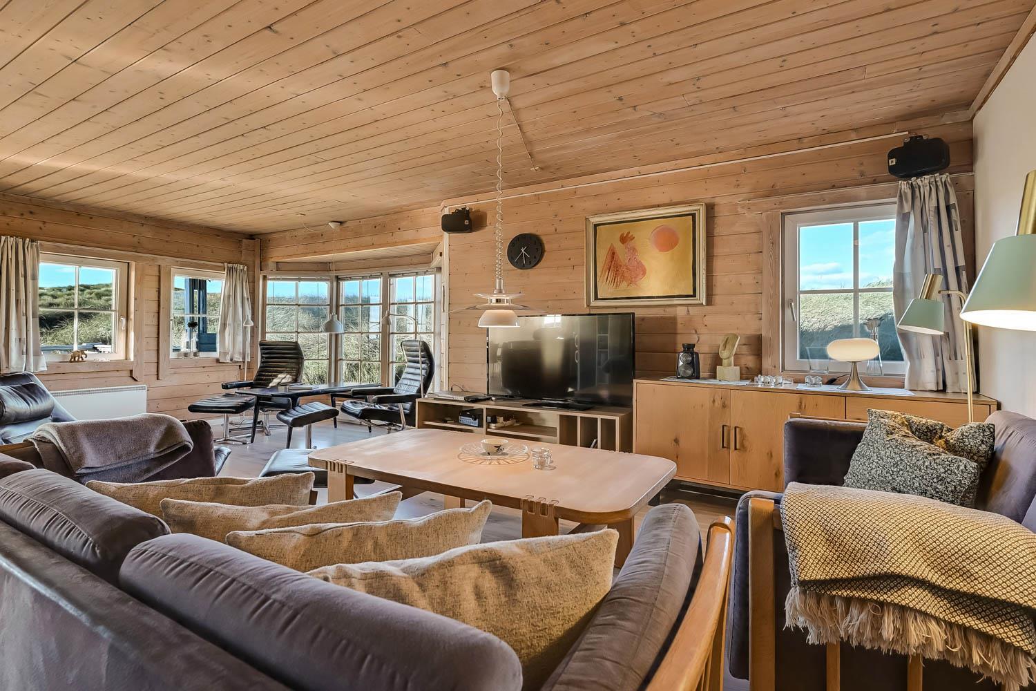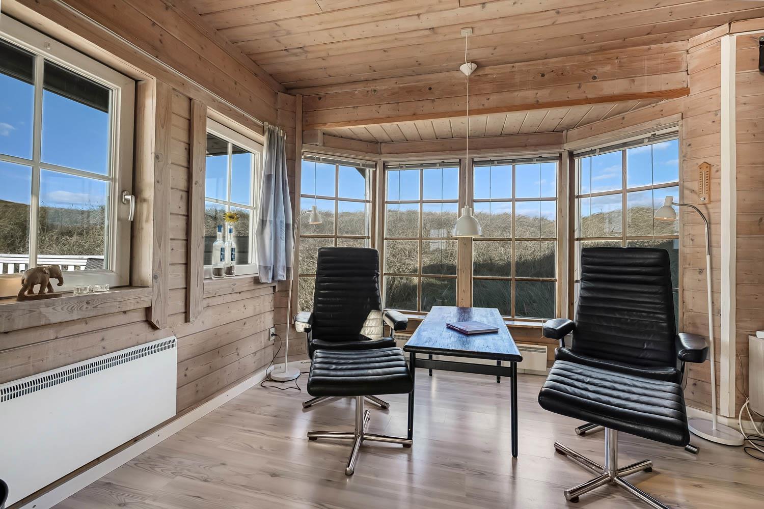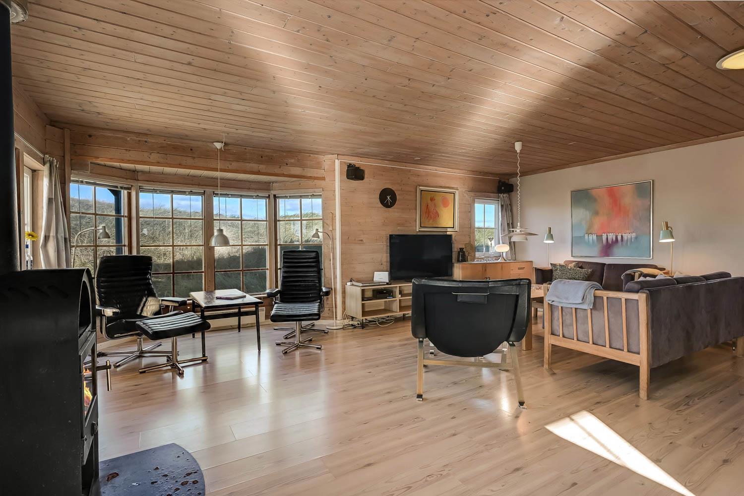 Huset er indrettet med charme og varme, og på første sal åbner udsigten sig over klitterne og det åbne landskab. Fra den sydvendte terrasse kan I nyde både havglimtet og de magiske solnedgange, som gør området så eftertragtet. Her er det oplagt at starte dagen med en kop kaffe i morgensolen eller afslutte aftenen med et glas vin, mens himlen farves gylden.