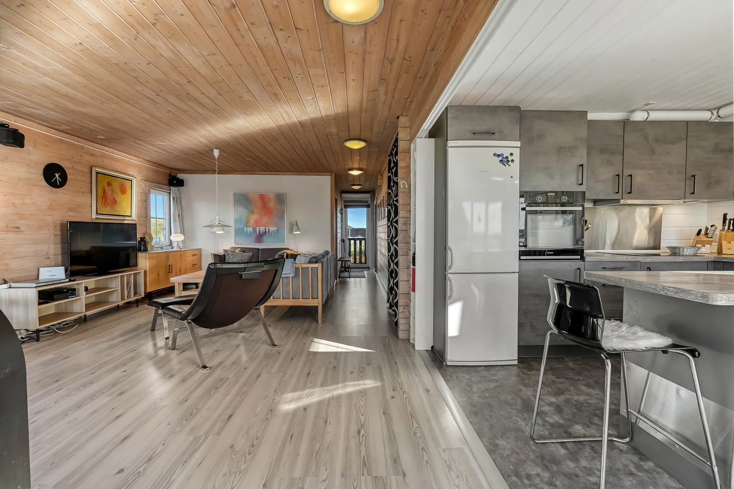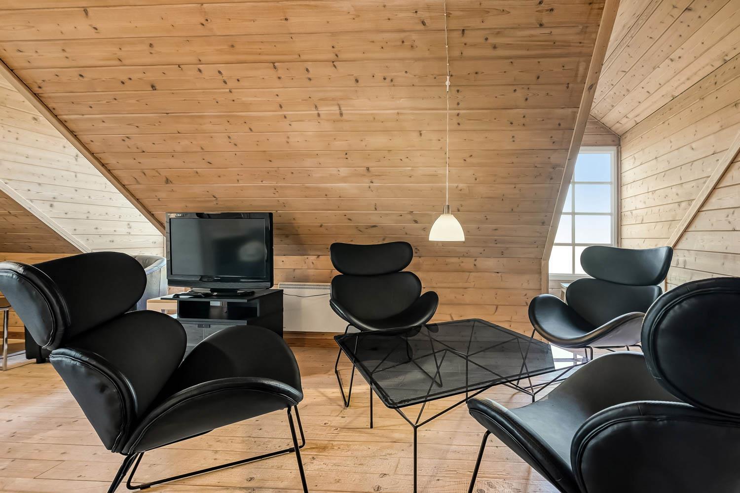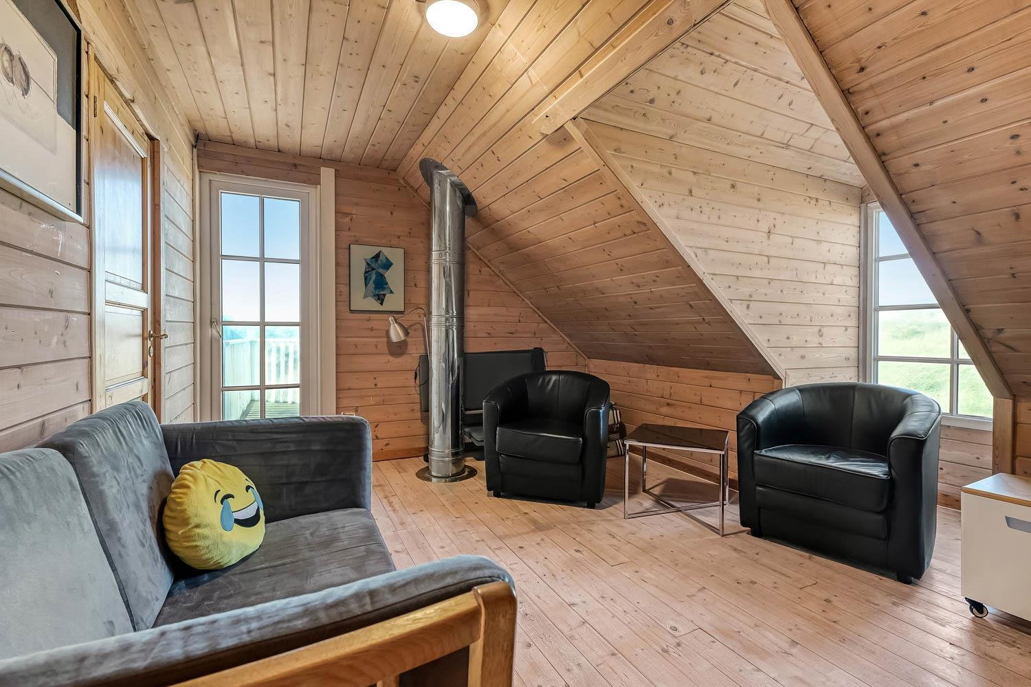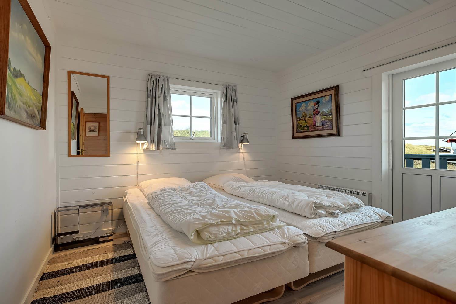 Huset er indrettet med charme og varme, og på første sal åbner udsigten sig over klitterne og det åbne landskab. Fra den sydvendte terrasse kan I nyde både havglimtet og de magiske solnedgange, som gør området så eftertragtet. Her er det oplagt at starte dagen med en kop kaffe i morgensolen eller afslutte aftenen med et glas vin, mens himlen farves gylden.