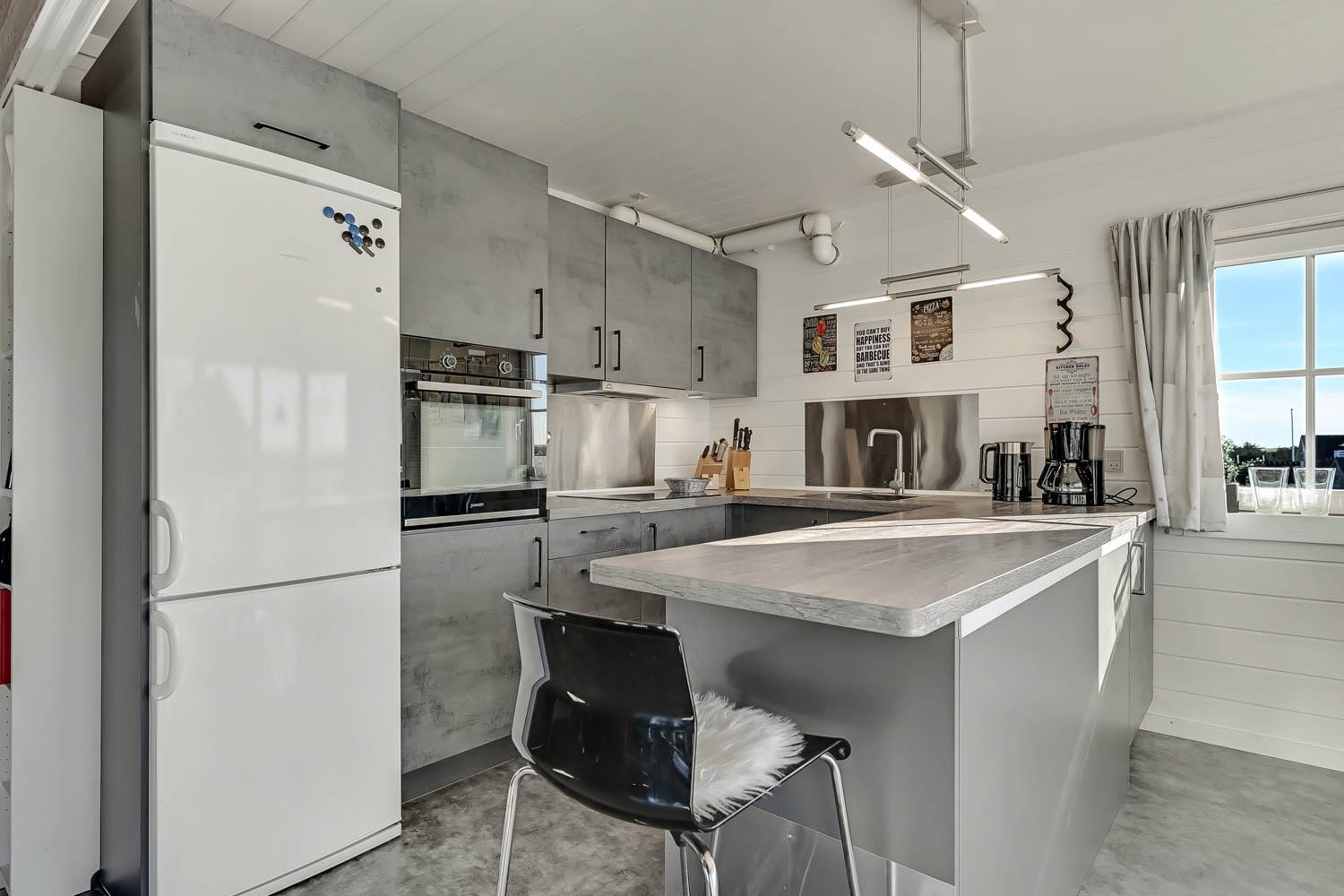 Udenfor venter havemøbler og grill, så de lange sommeraftener kan nydes under åben himmel med lyden af havet i baggrunden. To husdyr er velkomne, og huset udlejes udelukkende til familier og privatpersoner, hvilket sikrer rolige og trygge omgivelser for alle gæster.
