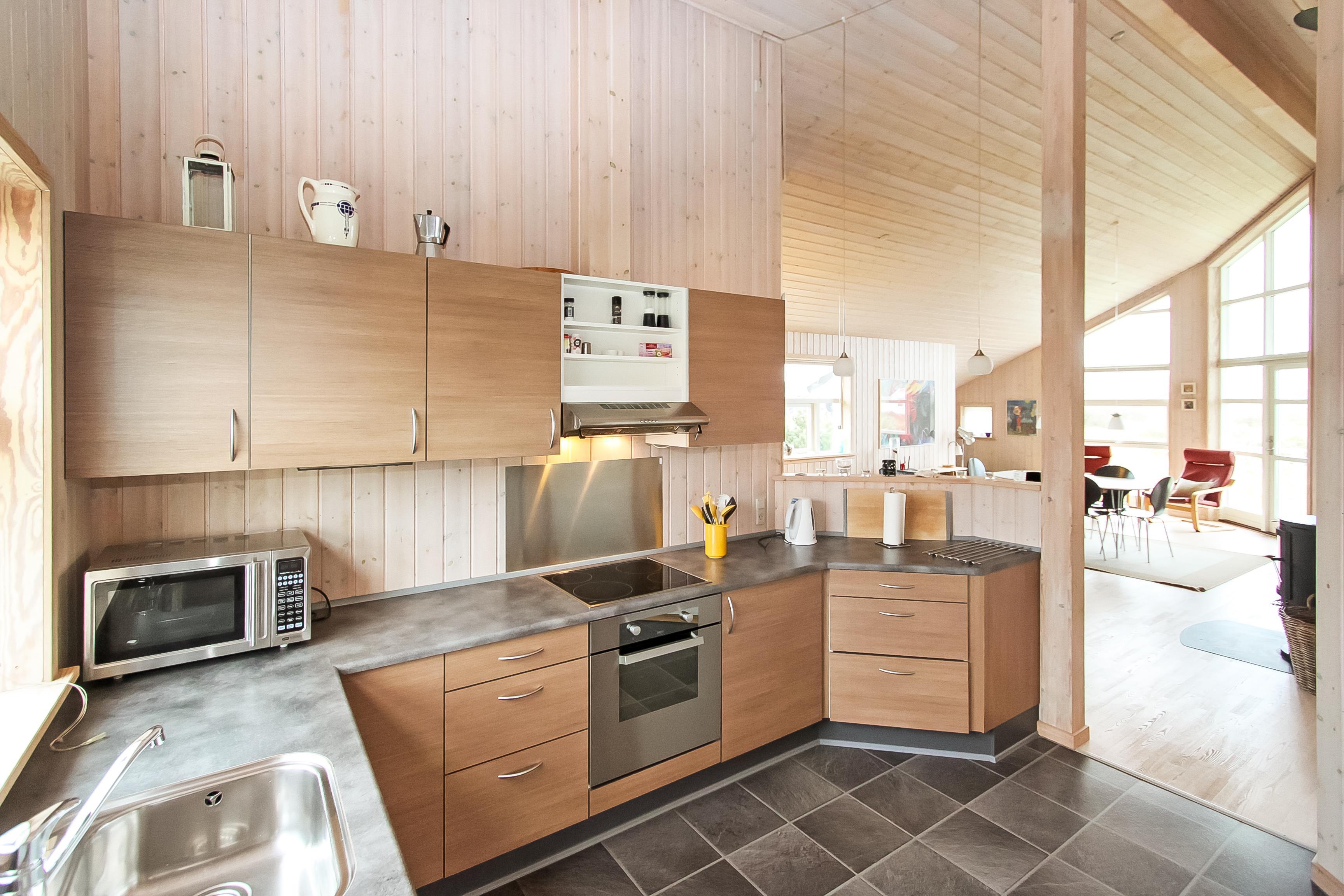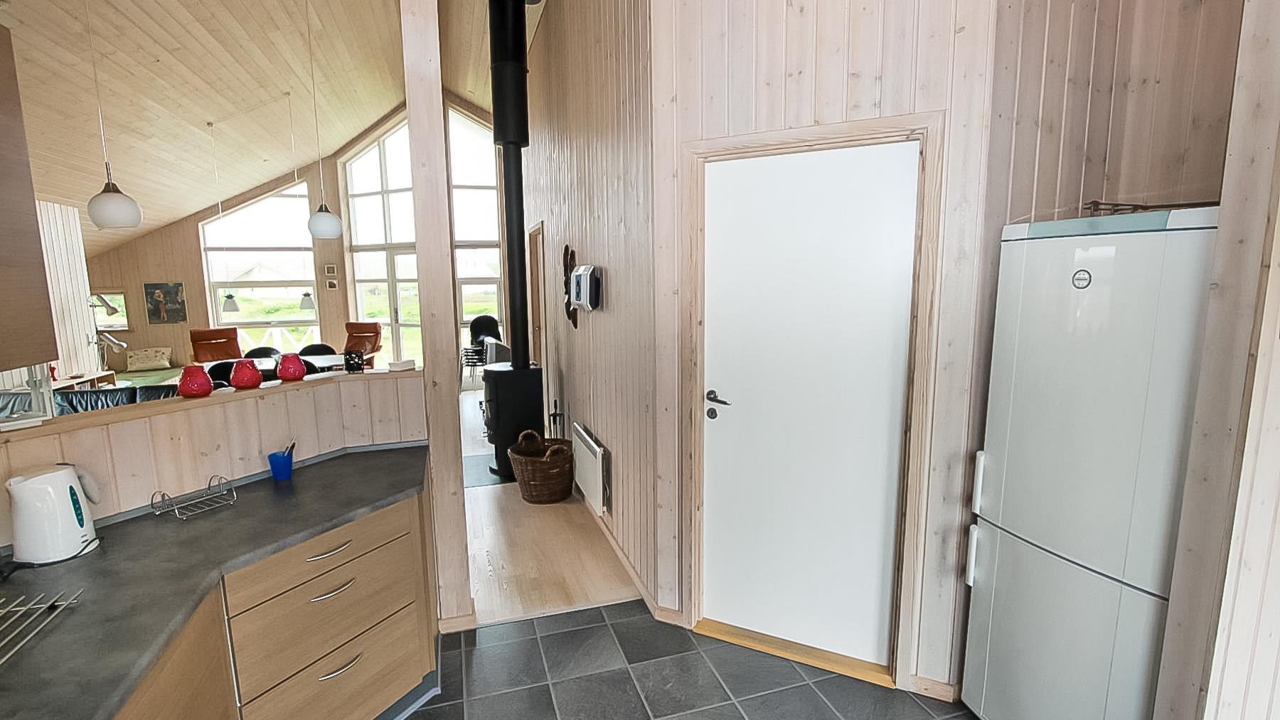 Dette dejligt og pænt indrettede feriehus i træ er med god møblering. Stuen er kombineret med køkkenet og har udgang til en delvis overdækket terrasse. Stuen er med gode møbler og et spisebord, der er en skøn brændeovn som giver en dejlig varme uanset årstid. Der er TV med parabol (kun tyske programmer). Fra stuen er der indgang til 2 af soverummene som er indrettet med 1DS og 2S. Fra køkkenet er der indgang til det sidste værelse som er med 2S. Husets badeværelse indeholder toilet, håndvask, bruser, spabad og adgang til sauna. På badeværelset er der også en vaskemaskine og tørretumbler. På badeværelset er der klinker og gulvvarme. Veludstyret køkken med el keramisk komfur, opvaskemaskine, emhætte, mikroovn og køle-/fryseskab. Der er trægulve i alle rum på nær køkkenet som er med vinyl gulv. Husdyr er ikken tilladt. Ikke rygerhus.