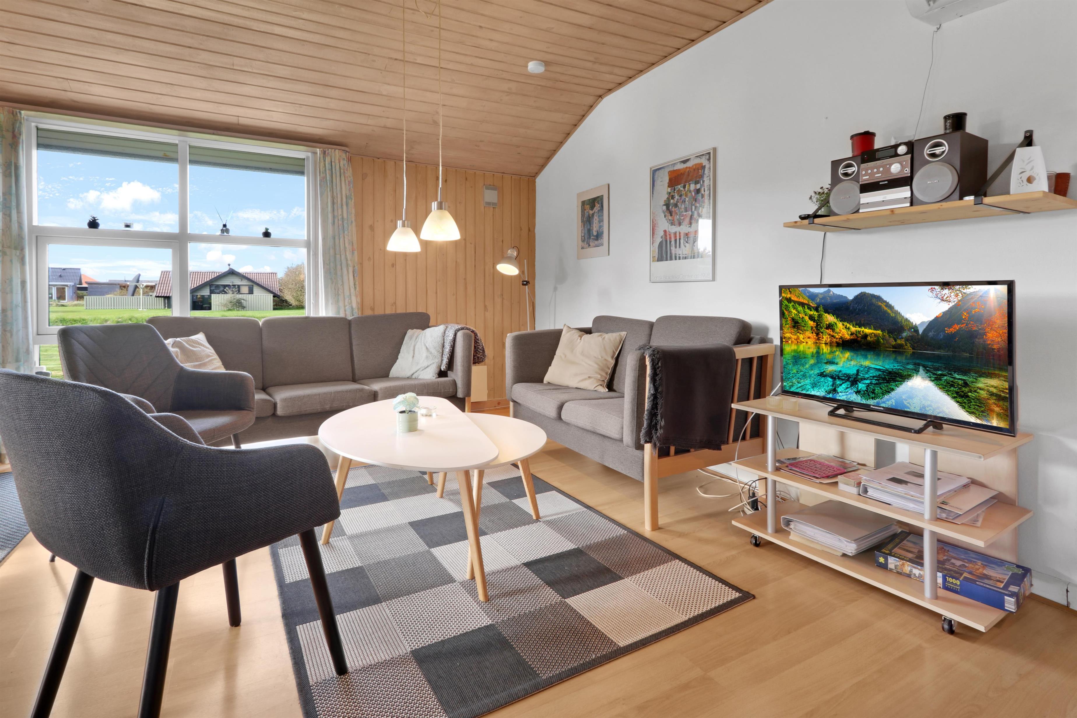 I stuen er der farve-tv med parabol (kun tyske kanaler) samt mulighed for streaming af TV. Huset har gratis internetadgang, brændeovn og varmepumpe, som begge bidrager til lavere opvarmningsforbrug. Som lejer har man gratis adgang til Wærket i Thyborøn samt adgang til Harboøre-Centeret.