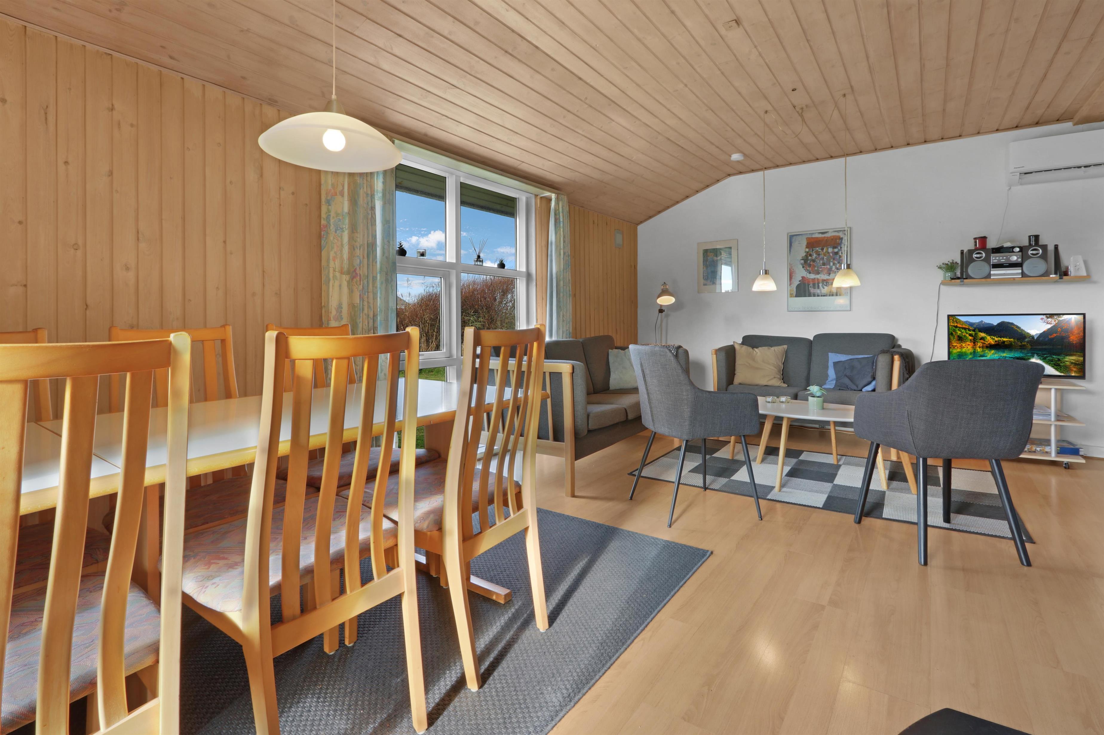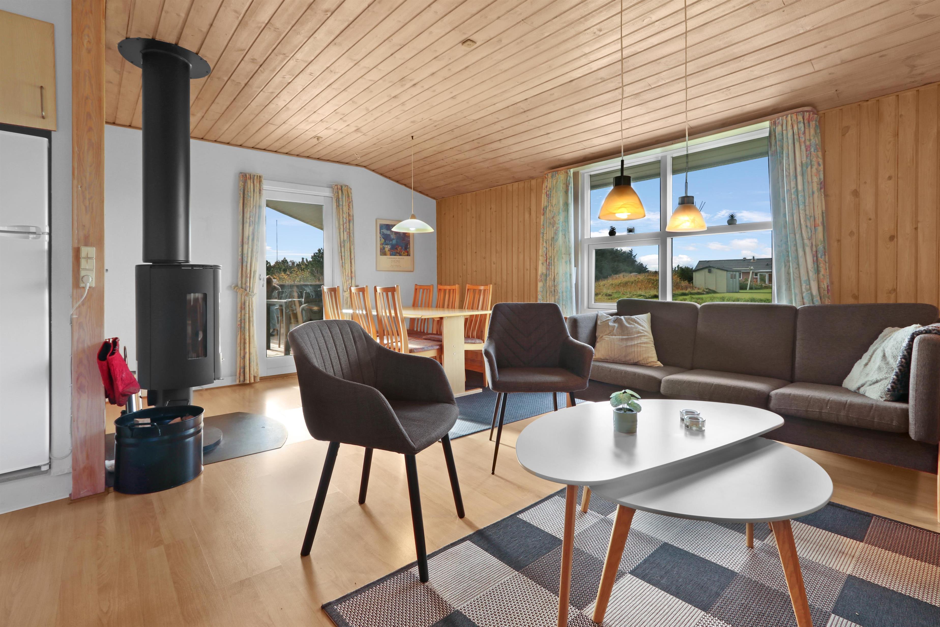 Dette dejlige, hyggeligt indrettede træhus ligger i et roligt ferieområde på en 1.450 m² stor naturgrund, kun 350 meter fra stranden. Huset er løbende moderniseret, blandt andet med et nyt badeværelse i 2003, og fremstår lyst og indbydende.