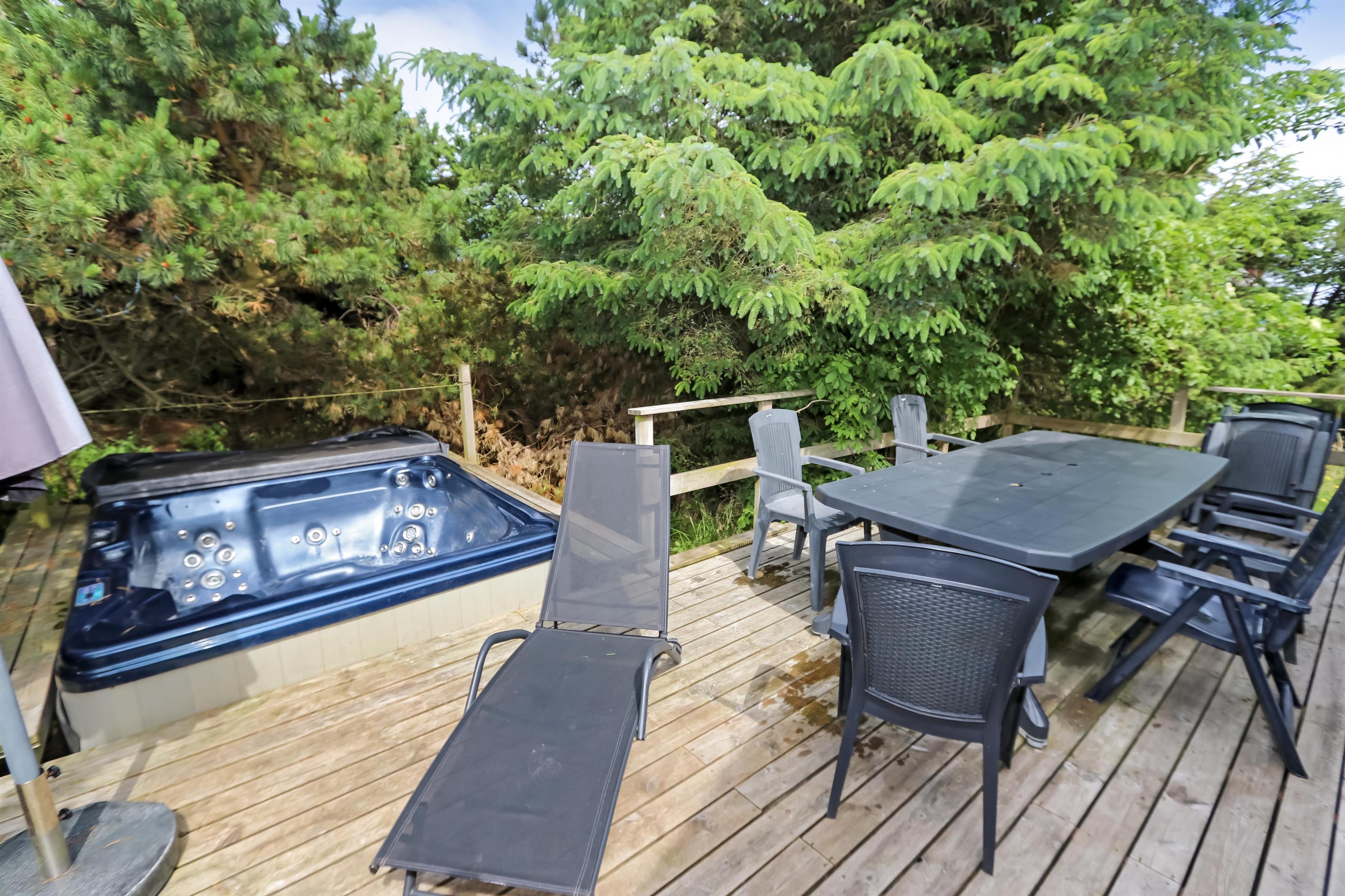 Der er masser af plads på 2100 m2 store afskrærmet og private grund. Pragtfulde terrasseanlæg som totalt har 3 Terrasser. Der er der masser af muligheder for en plads i solen eller i skyggen, da en del af terrassen er delvis overdækket. Der er naturligvis havemøbler, Loungemøbler, solvogne samt gasgrill og kulgrill. Der er altid mulighed for at finde læ eller sol på terrasseanlægget. Hvad med en tur i den udendørs spa som der også er adgang til fra huset private på terrassen. Helt speciel oplevelse at sidde i den udendørs spa på de mørke aftener med den klare stjernehimmel, ren terapi for sjæl og krop. Gyngestativ til børnene. Huset ligger ca. 2200 meter fra dagligvarebutikker. Indenfor kort køreafstand nåes både den aktive handelsby i Lemvig med flere specialbutikker eller den unikke fiskerby Thyborøn, som udover den aktive fiskerihavn også byder på badestrand og op til flere aktivitetstilbud, som alle er et besøg værd.