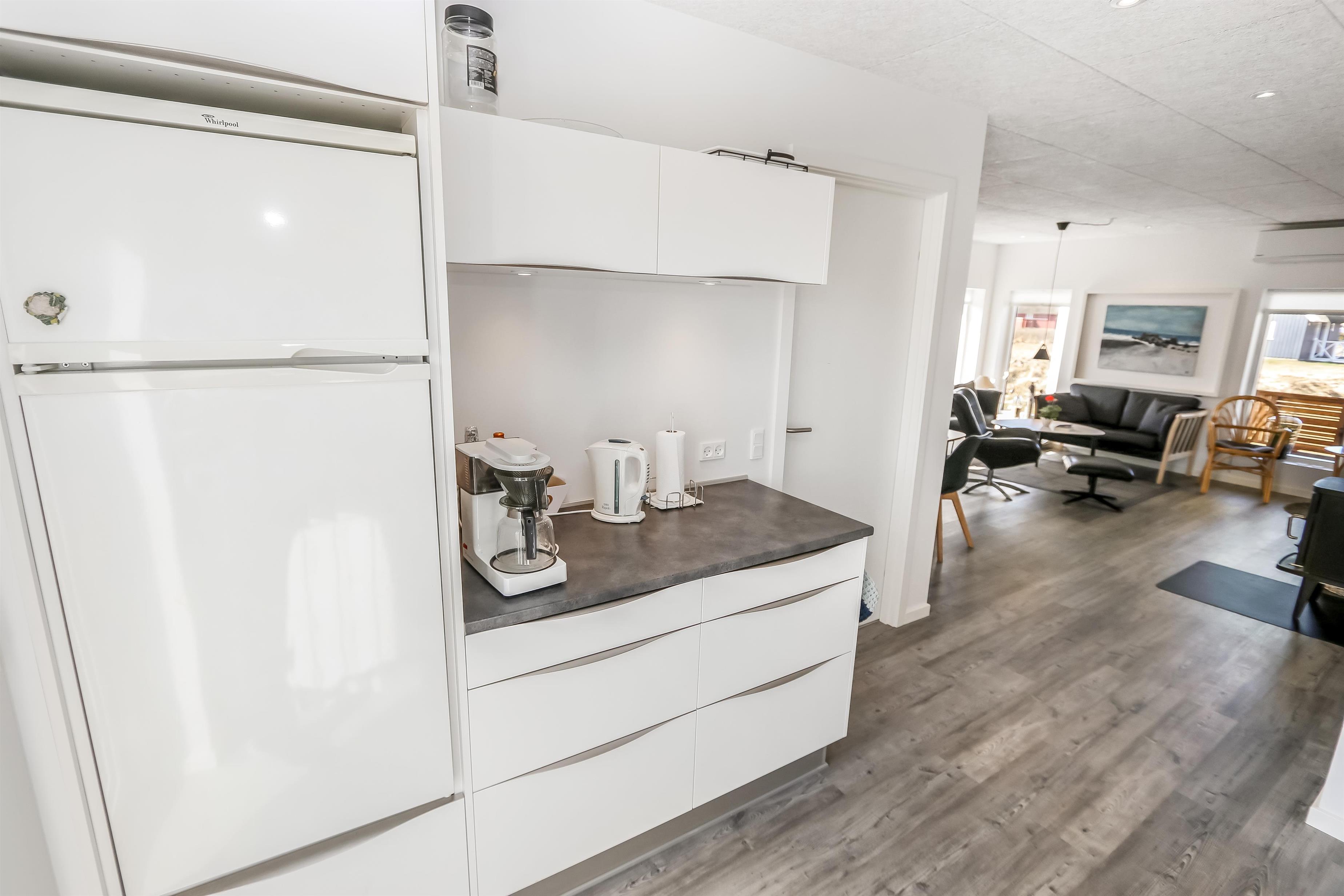 Indbydende og velindrettet feriehus på 74 m2 og fritliggende anneks på 15 m2. Huset byder på entré med plads til overtøj samt afliggeplads og vaskemaskine. Køkkenhjørne og stue glider let og naturligt sammen og danne en dejlig opholdsstue med spiseplads og samtalekøkken. Køkkenhjørnet er veludstyret med bla. komfur med keramiske kogeplader, mikroovn, emhætte, opvaskemaskine, køleskab med fryseboks, alt i service og køkkengrej samt udgang til morgenterrasse. På vej ind i stuen går man forbi et dejligt spisebord, som er praktisk placeret lige ved køkkenhjørnet. Opholdsstuen er indrettet med pæne nye lædermøbler, Smart-TV med danske og tyske programmer samt mulighed for streaming af TV / radio / Apps. En dejlig brændeovn og varmepumpe sørger for ekstra hygge samt varme til de rå dage ved Vesterhavet. Dejligt badeværelse med bruser, toilet, håndvask og klinkegulv med gulvvarme. 3 flotte og rummelige soverum (1DS, 2ES) samt anneks med dobbeltseng (1 DS). Trods de 3 soveværelse må huset max bebos af 4 personer. Trægulve i alle opholdsrum og soverum med gulvtæpper. Ikke-ryger hus. Husdyr ikke tilladt.