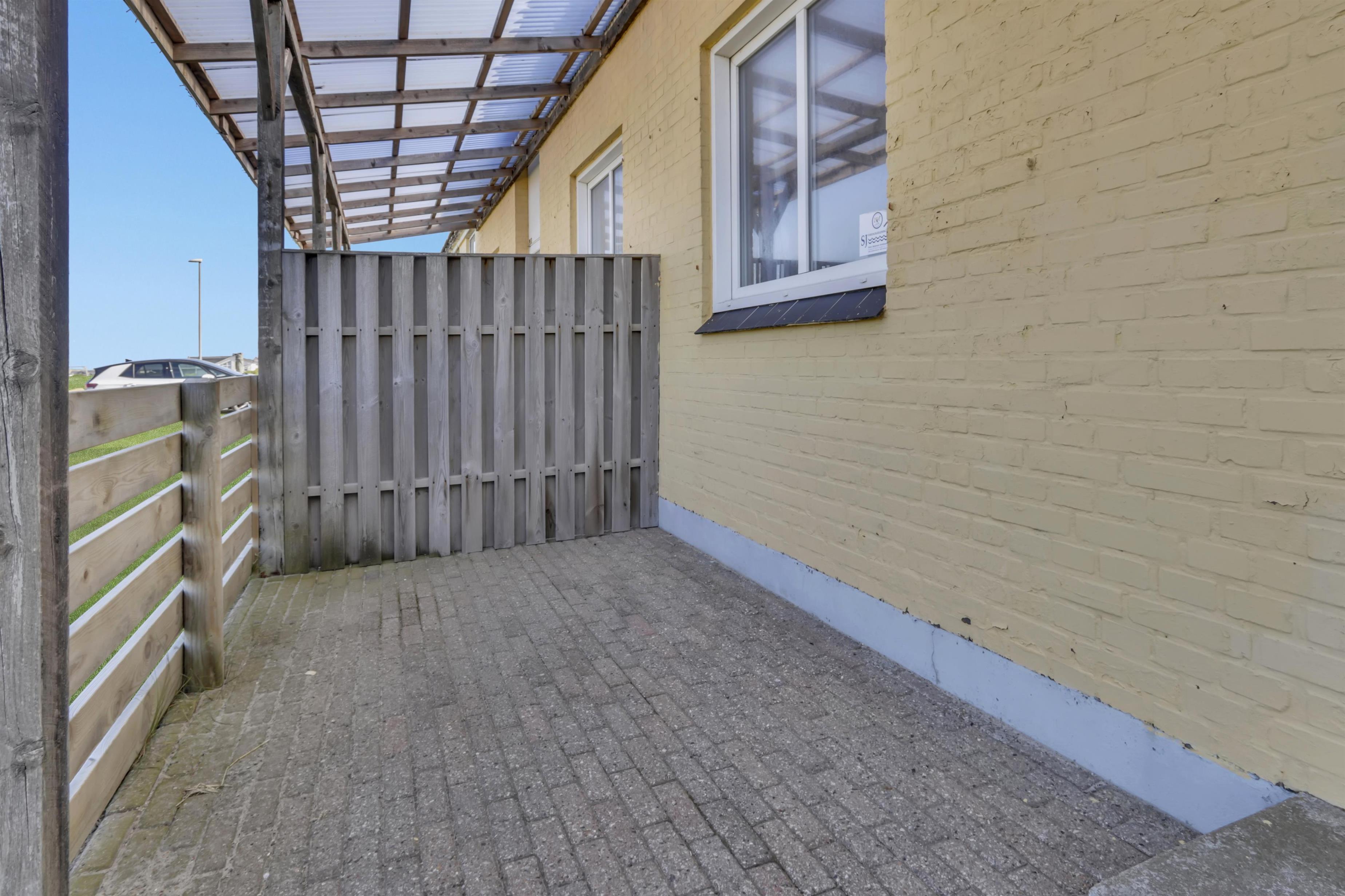 Beliggende i et kompleks med flere lejligheder på en 13000 m2 naturgrund kun ca. 300 m fra vesterhavet. Der er p-plads ved lejligheden. Delvis overdækket terrasse med havemøbler og liggestole. Lejligheden ligger kun 300 m fra Vesterhavet som er et besøg værd hver dag. Ønsker man andet i ferien så er et besøg i fiskerbyen Thyborøn eller handelsbyen Lemvig en god ide, her er der gode indkøbsmuligheder, restauranter og seværdigheder.