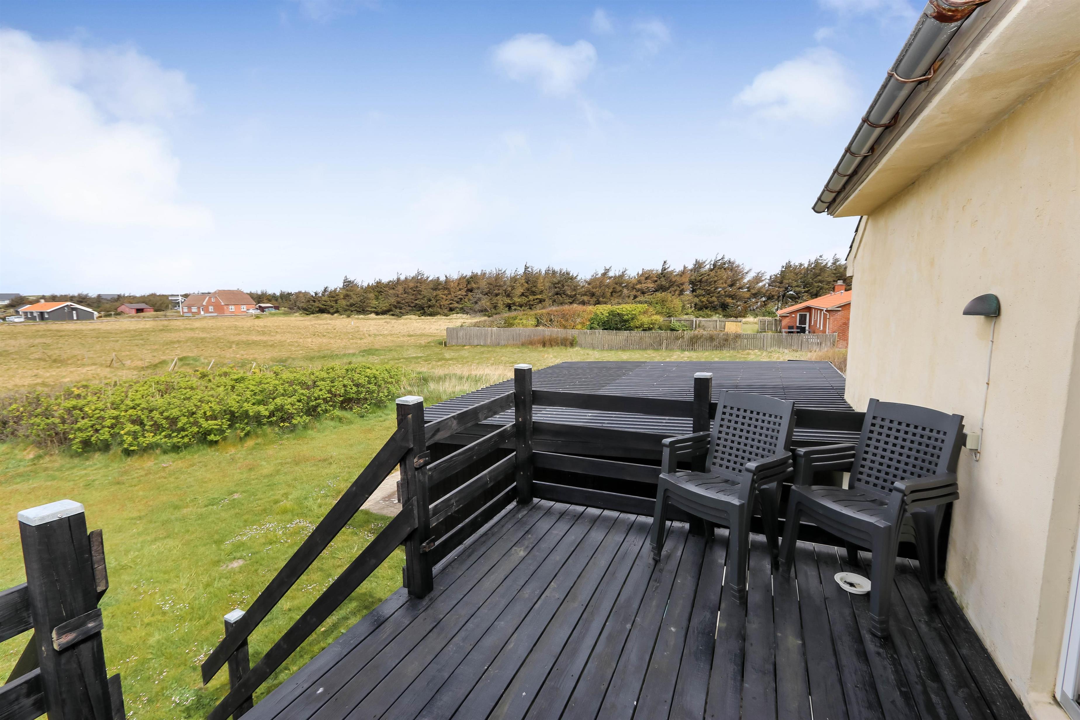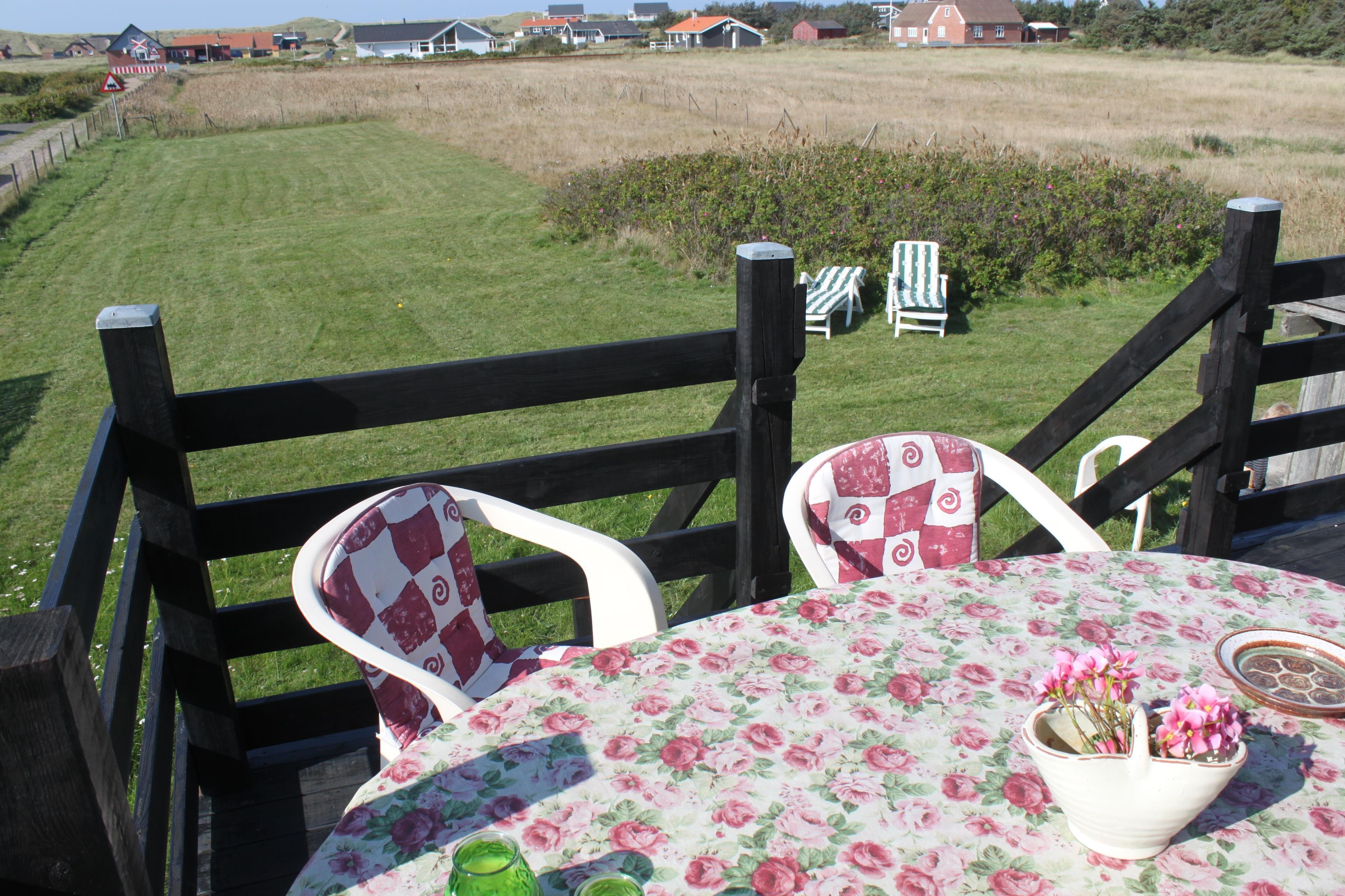 Huset har en skøn terrasse mod vest og her går man direkte ud fra stueplanet, så man faktisk sidder på et lidt højere plateau udenfor. Udenfor er der så en trappenedgang til selve haven. Hertil hører grill, 2 solvogne og havemøbler, så man har gode muligheder for mange hyggelige sommertimer i de lyse sommerdage. Der er kun 300 meter til Vesterhavet med den brede strand. Her er masser af aktiviteter hvor solbadning og badning i havet er blandt de mest populære sysler. Snyd heller ikke dig selv for nogle lange vandreture i naturen eller kulturlandskabet omkring Harboøre og Vrist. Huset ligger kun 100 meter fra det lokale minimarked i Vrist og der er kun cirka 2 km til både Aldi og Brugsen i Harboøre.