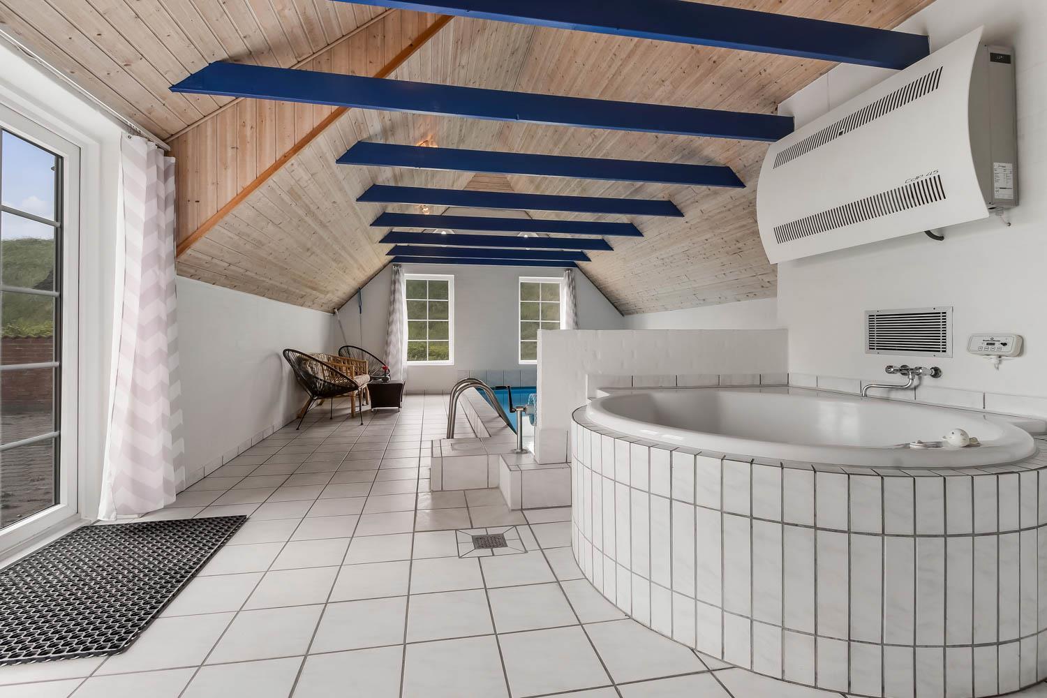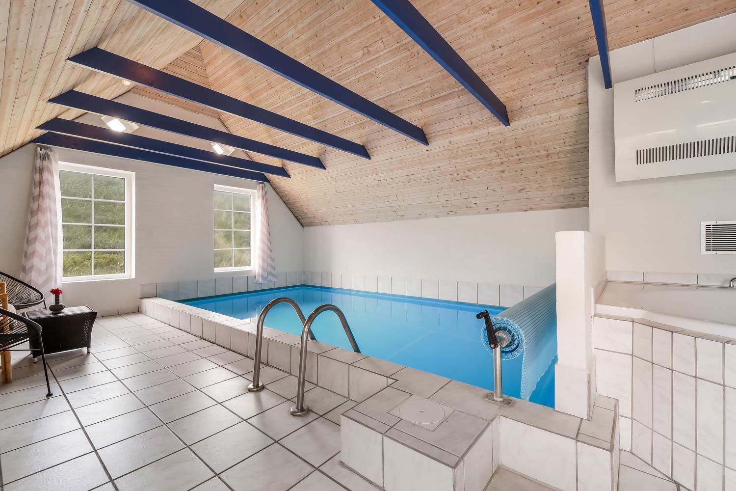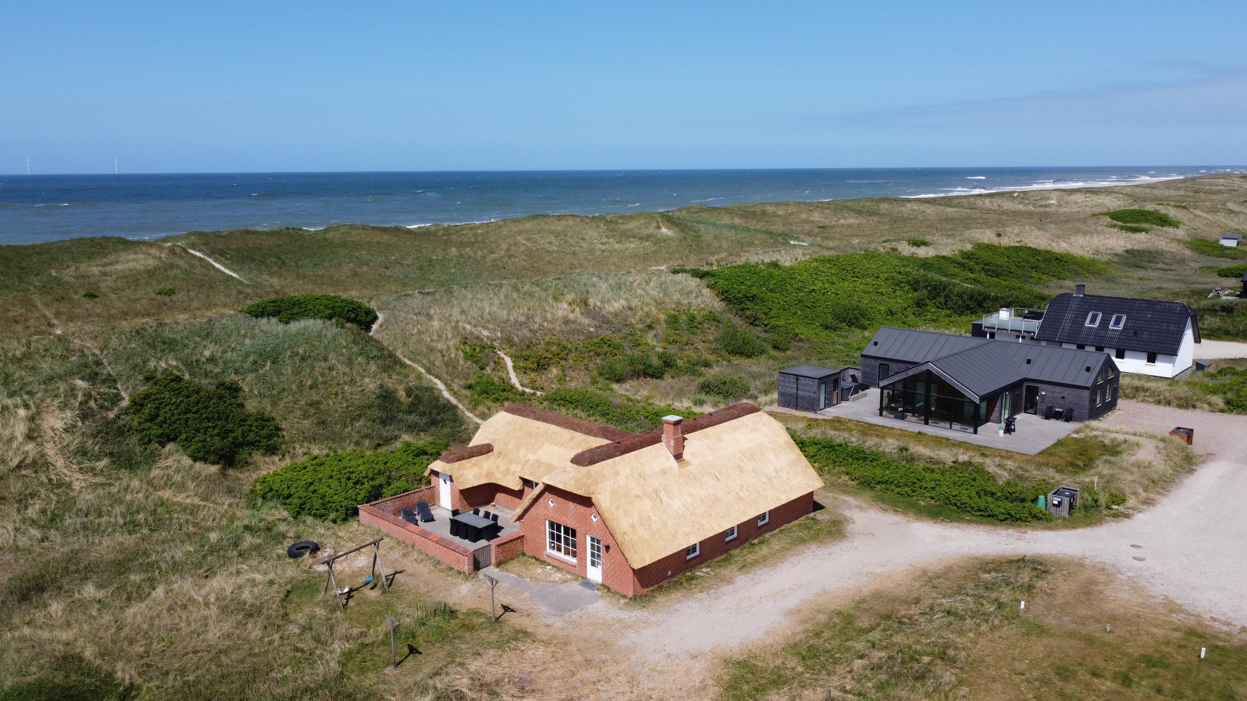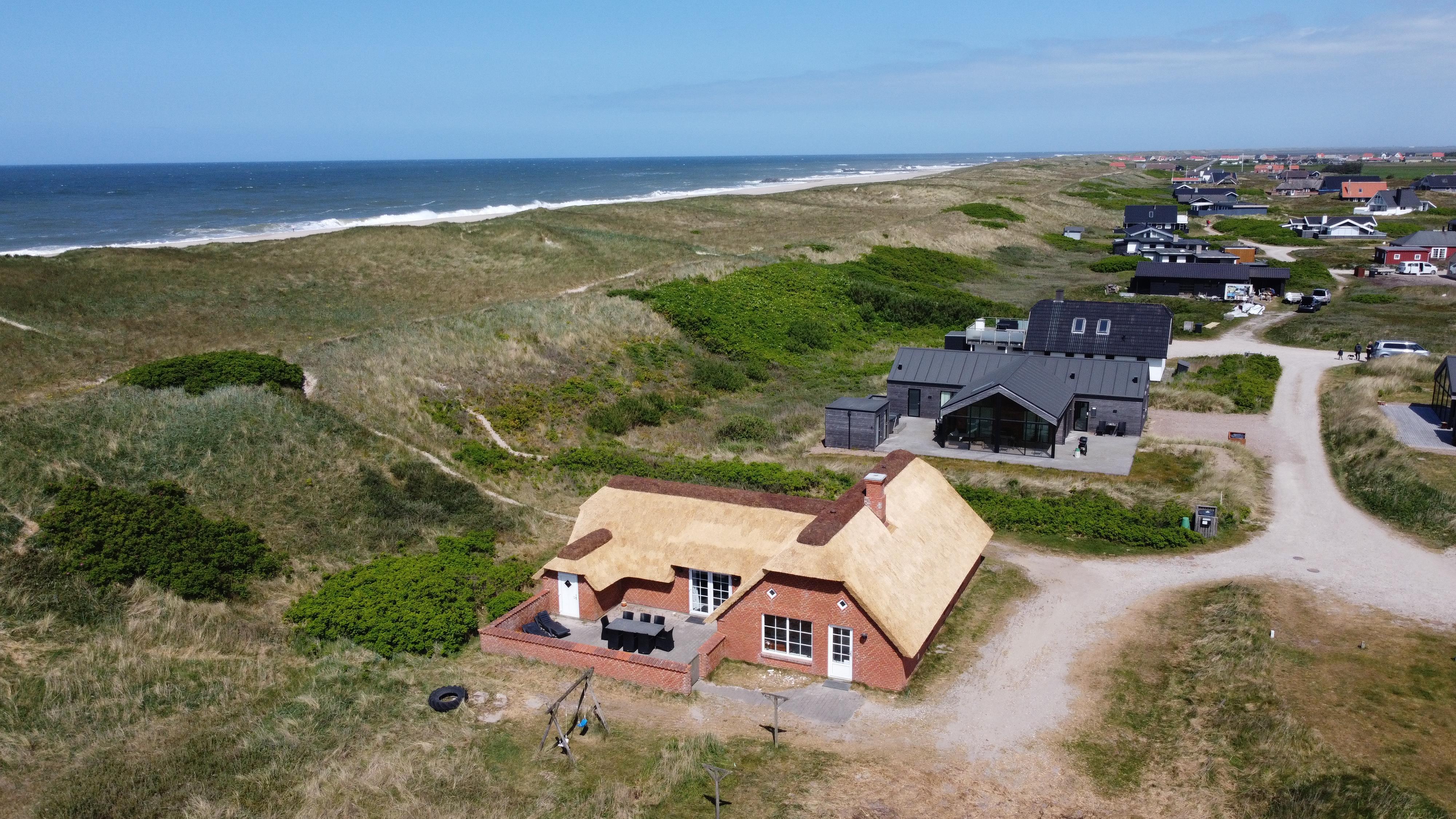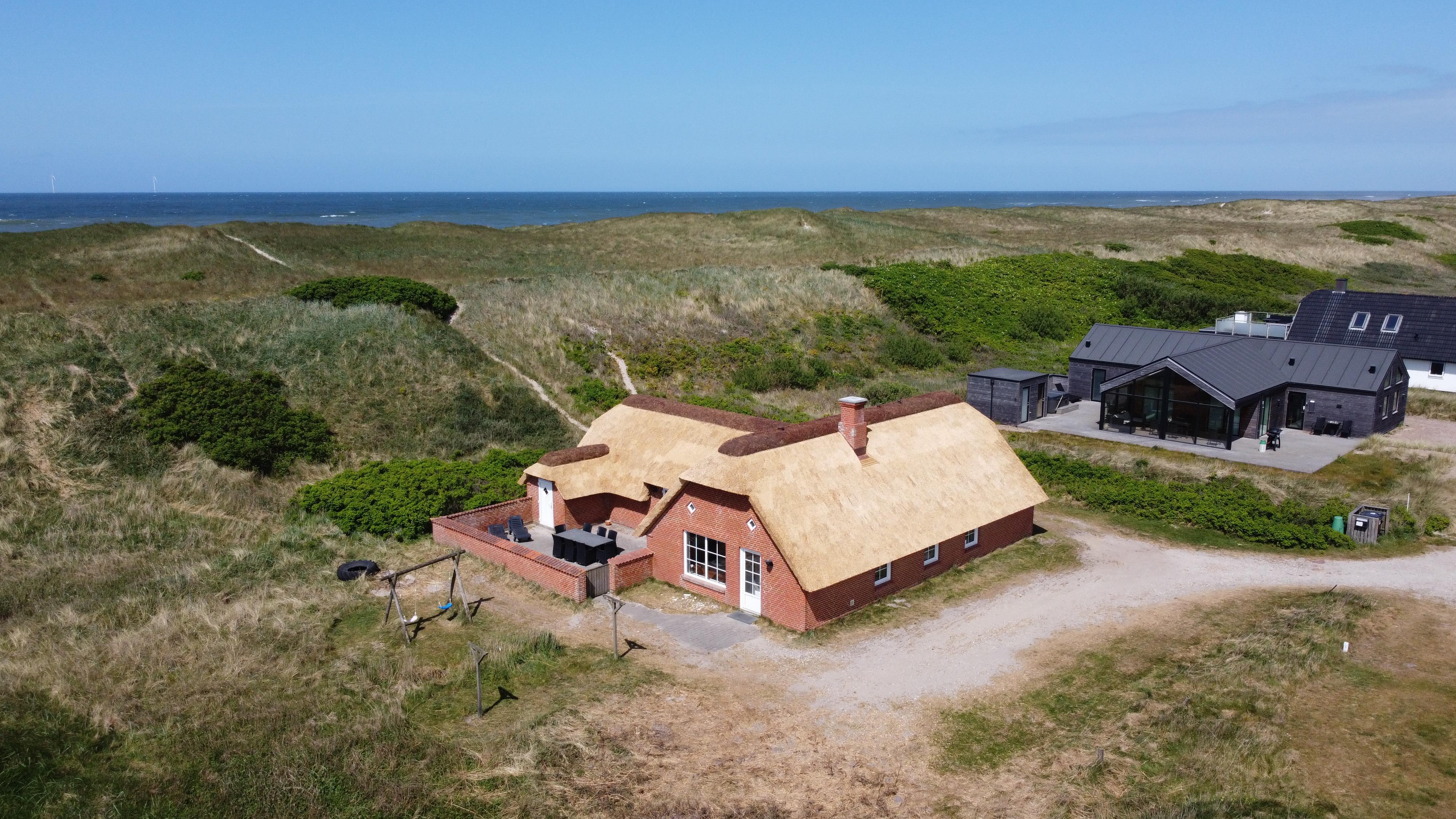 Med blot 100 m til Vesterhavet og beliggende på en klitgrund direkte op til klitterne finder I dette flotte stenhus med stråtag og pool. Dette hus kan nydes på alle årstider, og der er altid rig mulighed for aktivitet både ude og inde. Gratis internetadgang.