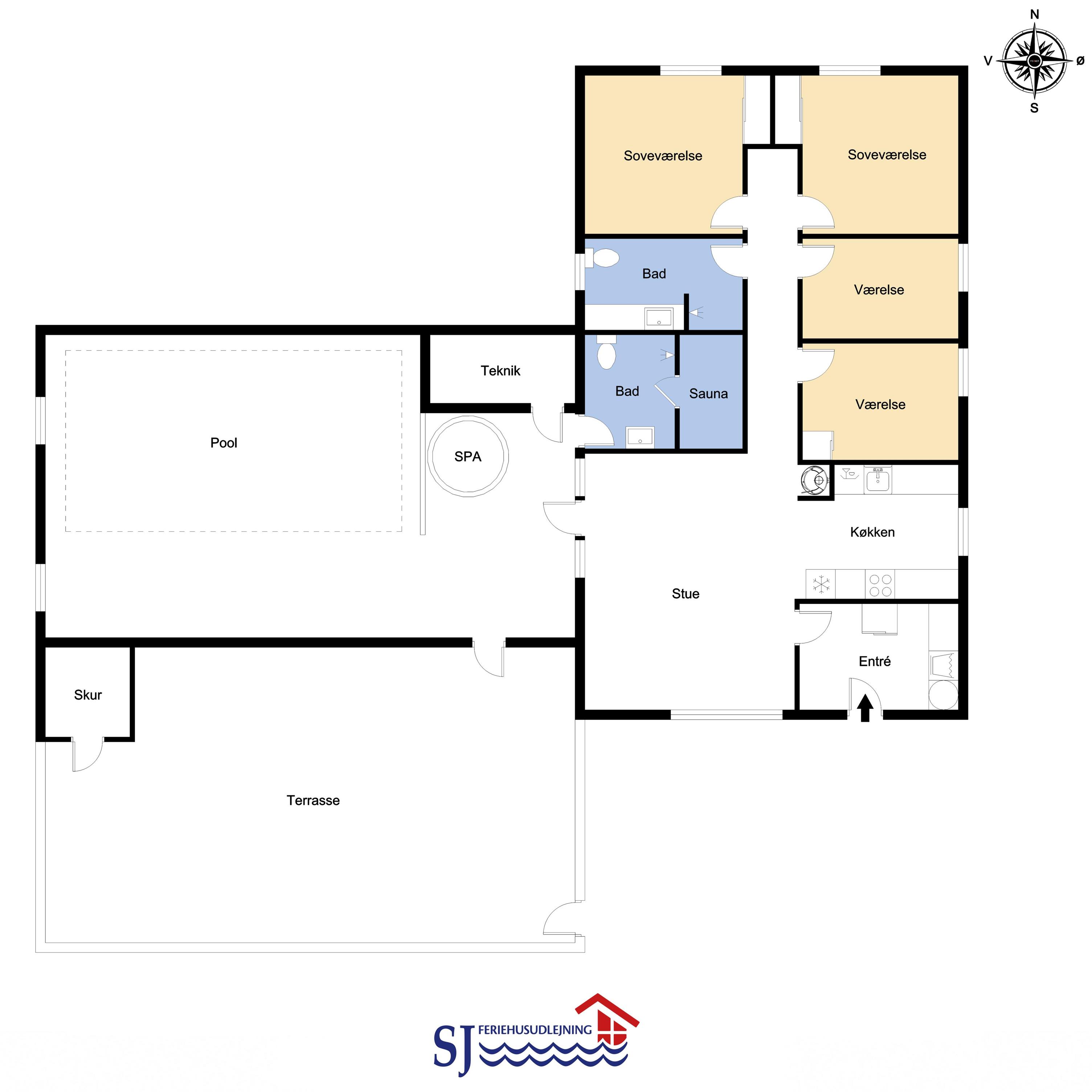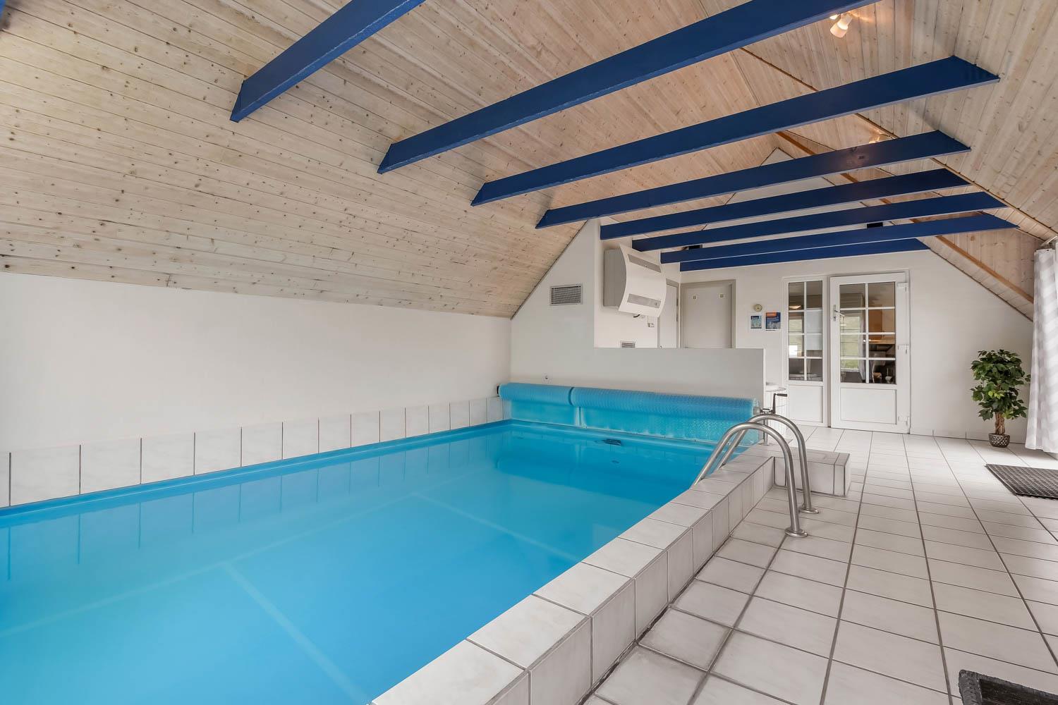 Dette fantastiske feriehus er lækkert indrettet med kombineret køkken/alrum, i stuen er der brændeovn, fladsskærms-TV med DR-kanaler og parabol med tyske kanaler. Køkkenet er veludstyret og råder over bl.a. opvaskemaskine og mikroovn samt køle-fryseskab. 4 gode soverum som indeholder 1DS + 1DS + 2S + 2S. Huset har 2 badeværelser, som begge er med brusenische og gulvvarme, det ene har direkte adgang til saunaen. Poolrummet har ud over poolen, som er med modstrømsanlæg, også et stort 5 personers spabad. 1 husdyr er tilladt. Depositum vintersæsonen kr. 4500 og sommersæsonen kr. 2200.