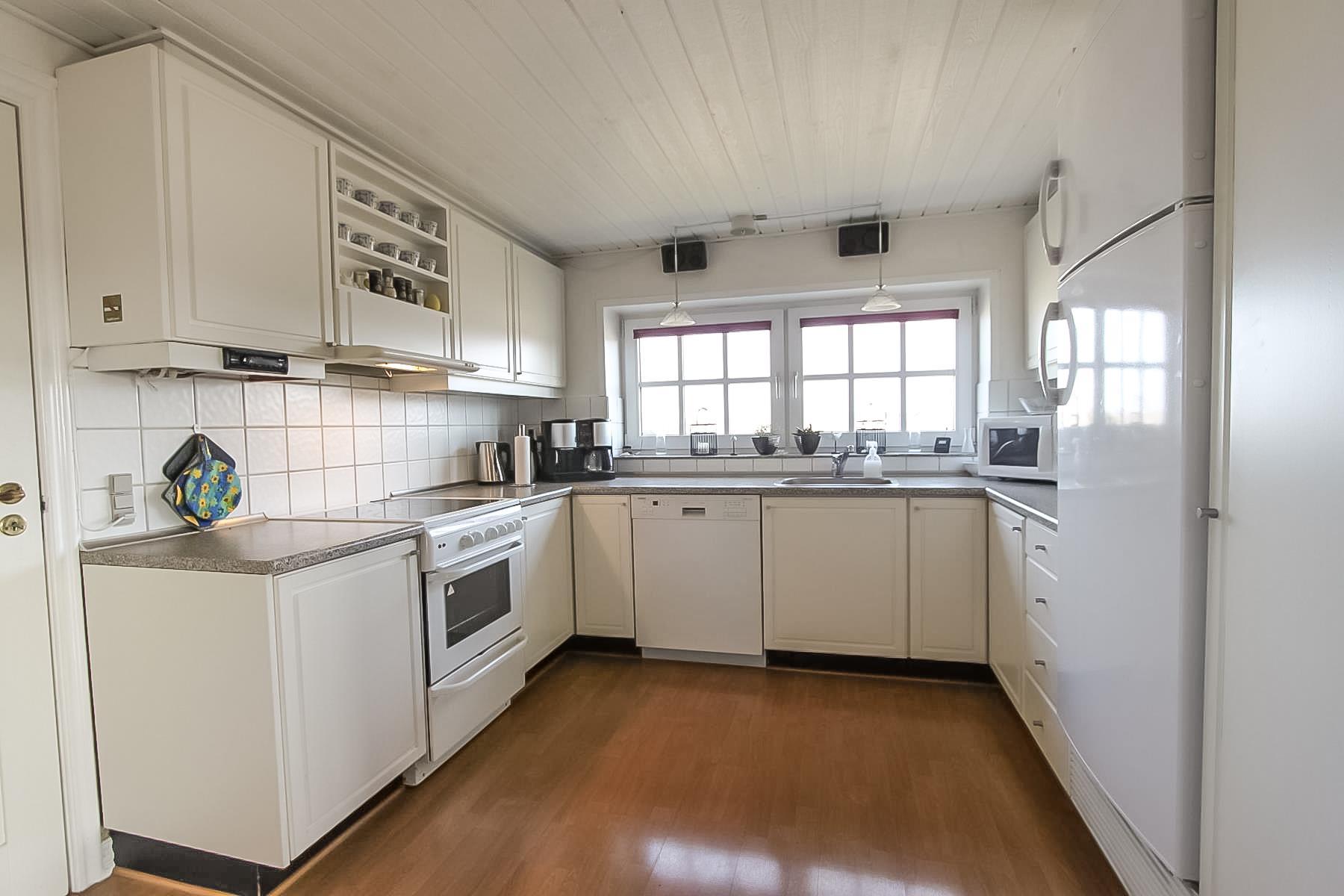 Huset har alle moderne bekvemmeligheder, der letter hverdagen, herunder mikroovn, opvaskemaskine og vaskemaskine. Køkkenet er udstyret med el-komfur, køleskab med 60 l frostboks, mikroovn og opvaskemaskine.