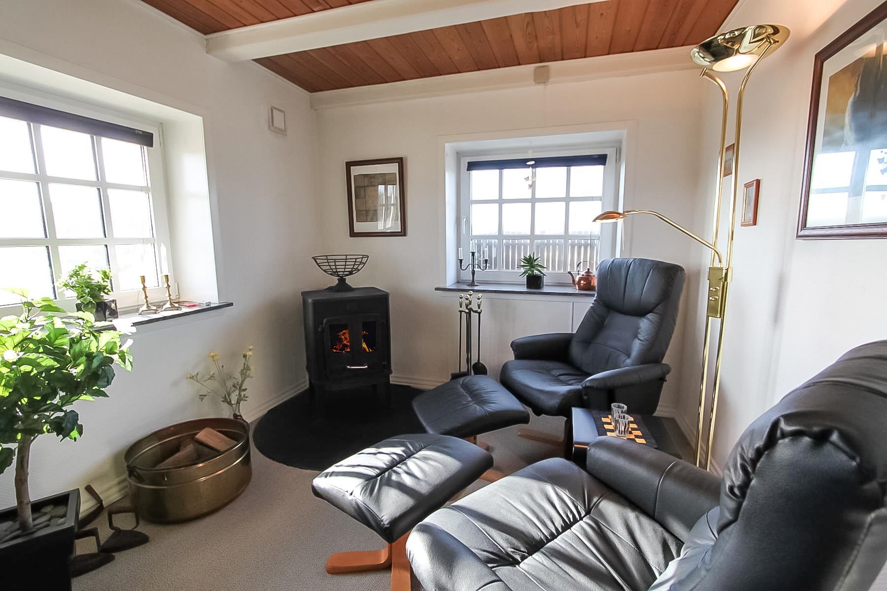 Stuerne byder på brændeovn, Smart-TV med danske kanaler samt parabol (kun tyske kanaler), mulighed for streaming af TV, radio og apps samt stereoanlæg med CD. På 1. sal findes yderligere stue med stereoanlæg.