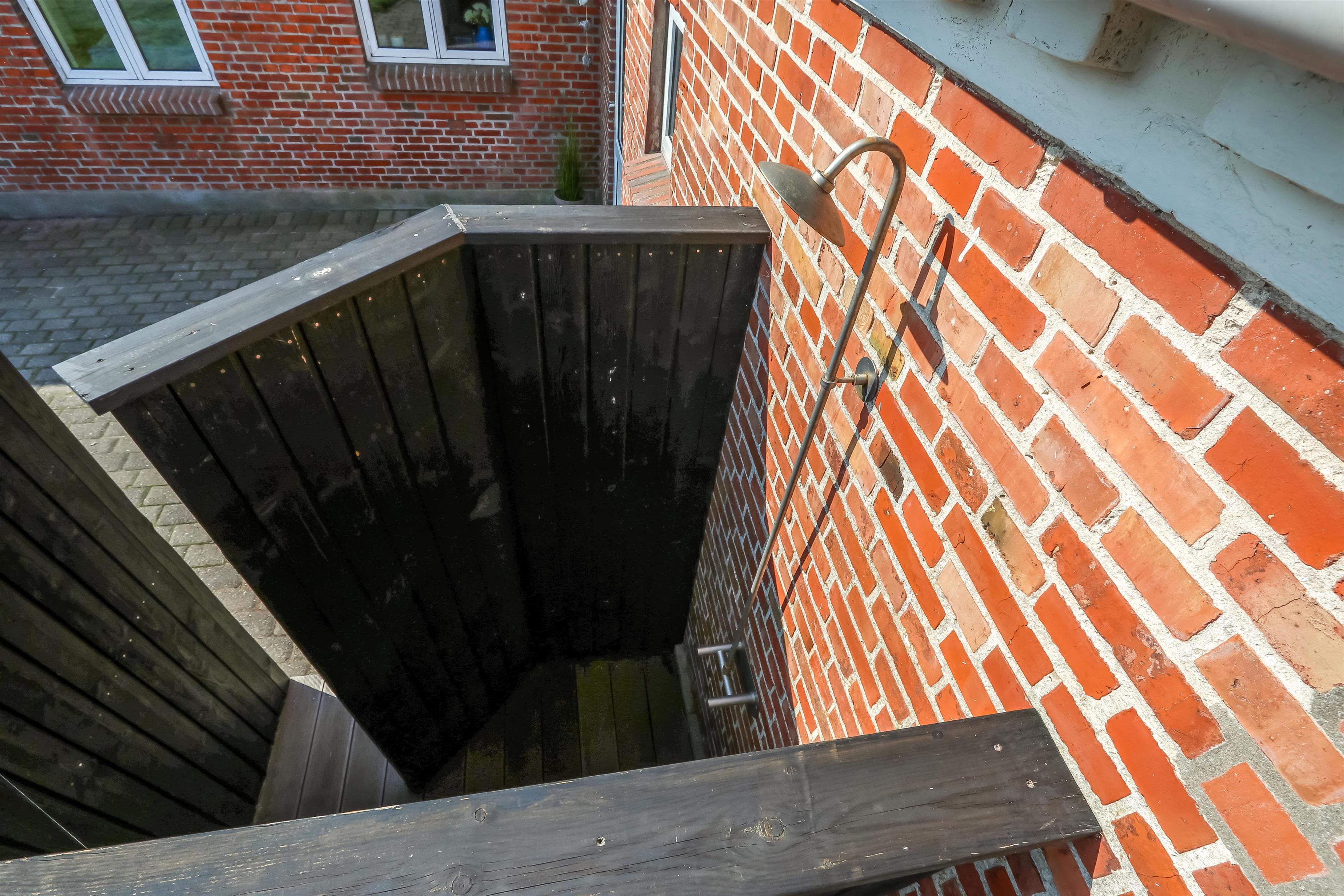 I hjørnet af grunden findes en overdækning med et vildmarksbad, der opvarmes med træ. Der er også en lækker udendørsbruser med både koldt og varmt vand. Huset har desuden en ladestander til el-biler og plug-in/hybrid biler med type 2 stik (11 kwh).
