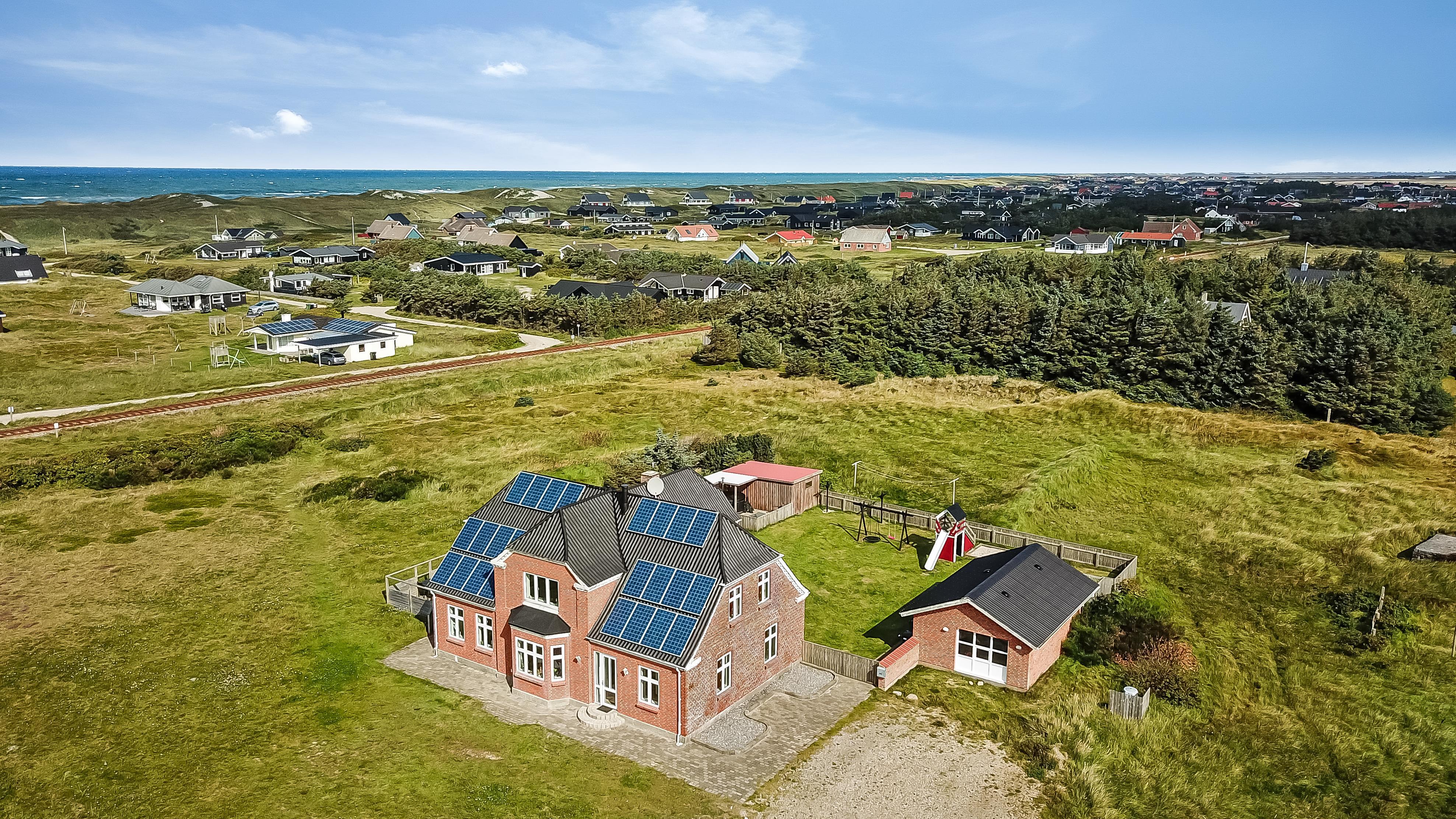 Hyggelig og moderniseret murermestervilla med masser af plads i 2 etager. Der er aktivitetsrum med billard og bordtennis, vildmarksbad og gratis internet. Huset er beliggende på en stor grund kun 250 m fra Vesterhavet. Ideelt til større familier eller til personer, der rejser sammen og ønsker god plads. Huset tillader op til 2 husdyr og er et ikke-ryger hus.