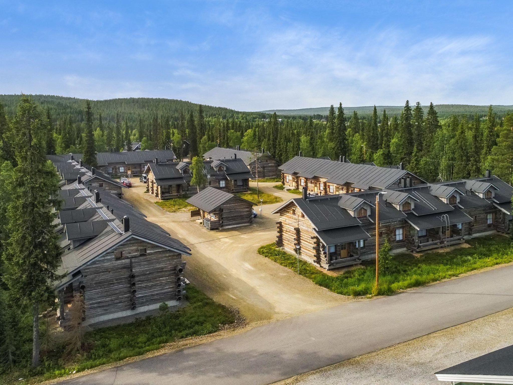 40 km north of Kolari, Lake Äkäslompolojärvi 1 km, swimming shore 2.5 km. Silverlog row house apartment 2008. Area 53 m² of which 11 m² on the loft. Living room/kitchen, 1 bedroom, both with 2 separate beds, in sleeping loft 2 separate beds, in living room/kitchen also convertible sofa/bed, sauna (electric stove), washroom/WC, sleeping loft has separate WC. The apartments share a ski maintenance room in the yard.