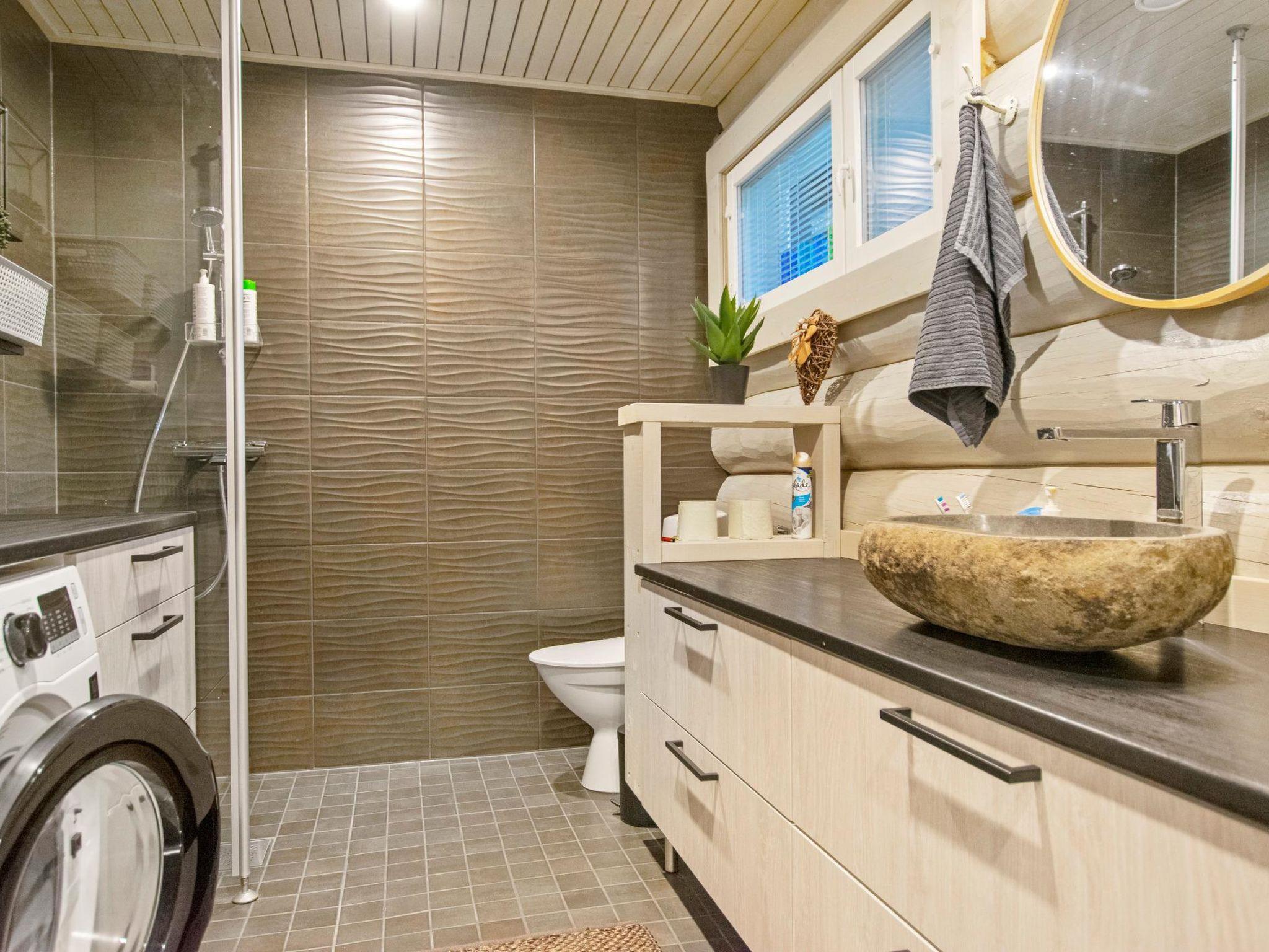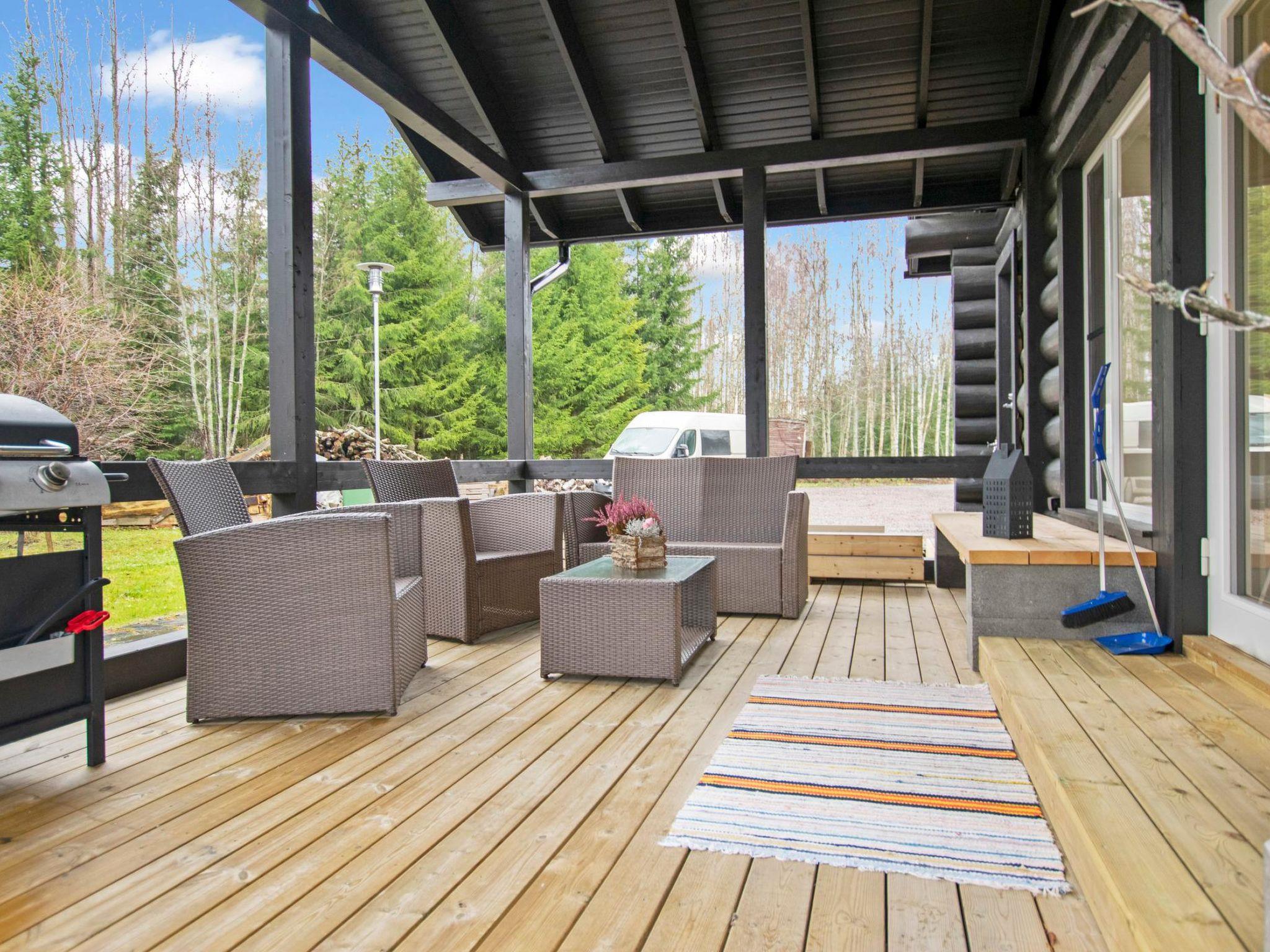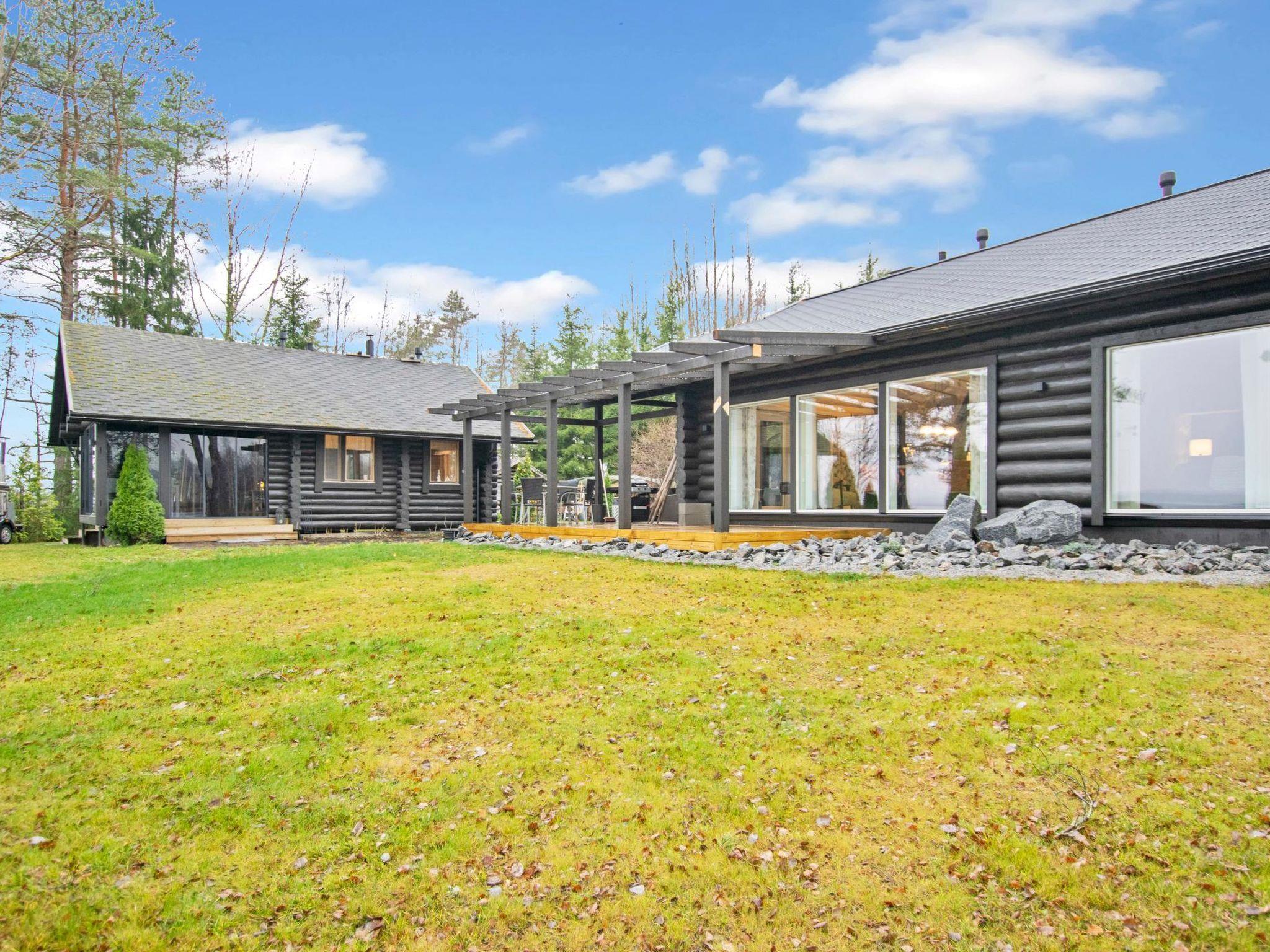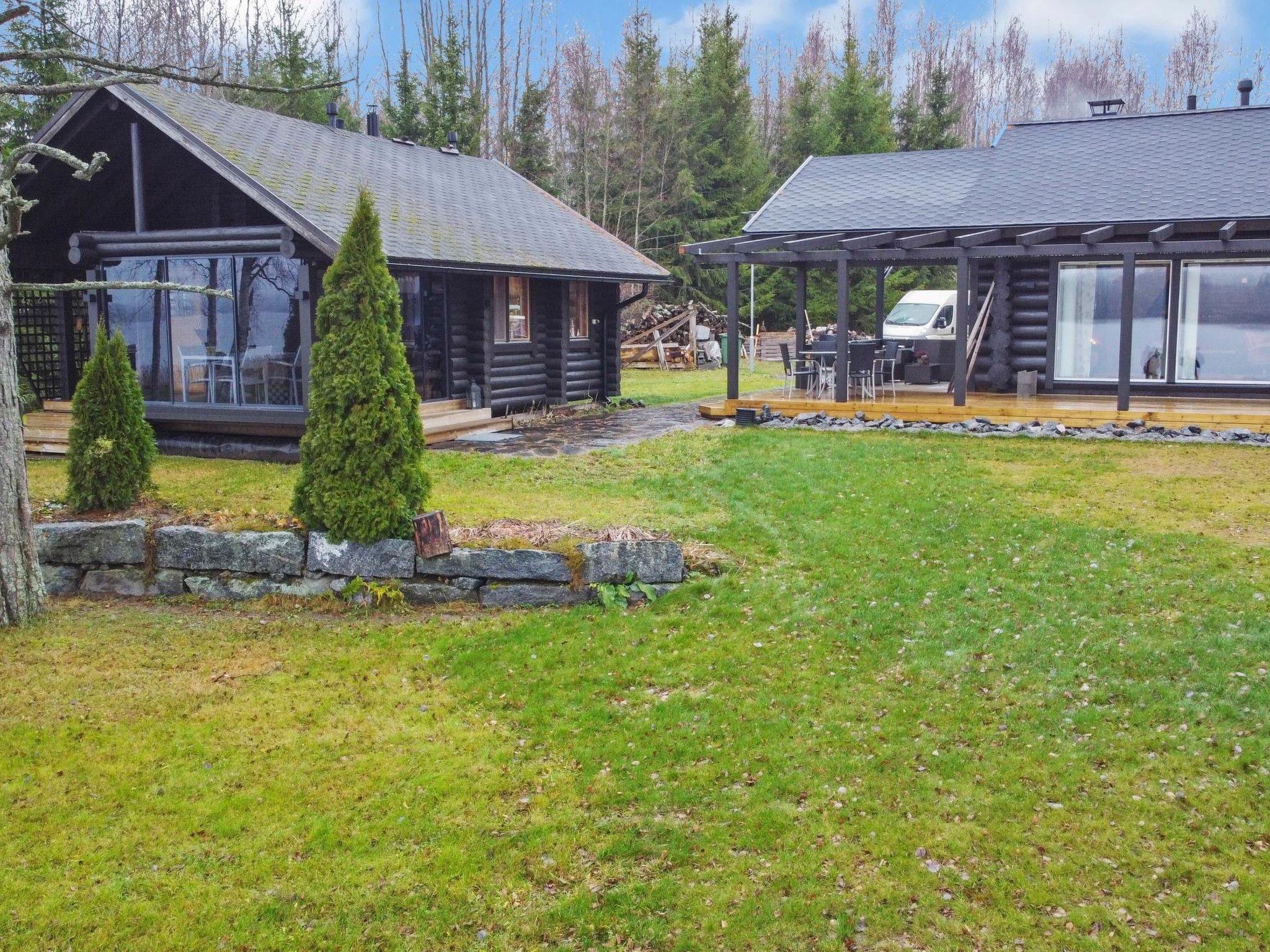 Log cabin 2021, living room, living room / kitchen, two bedrooms, bedroom 1: double bed, bedroom 2: two beds and washroom with WC. Spacious terrace with terrace furniture and gas grill. The cabin has geothermal heat, which also provides cooling function.