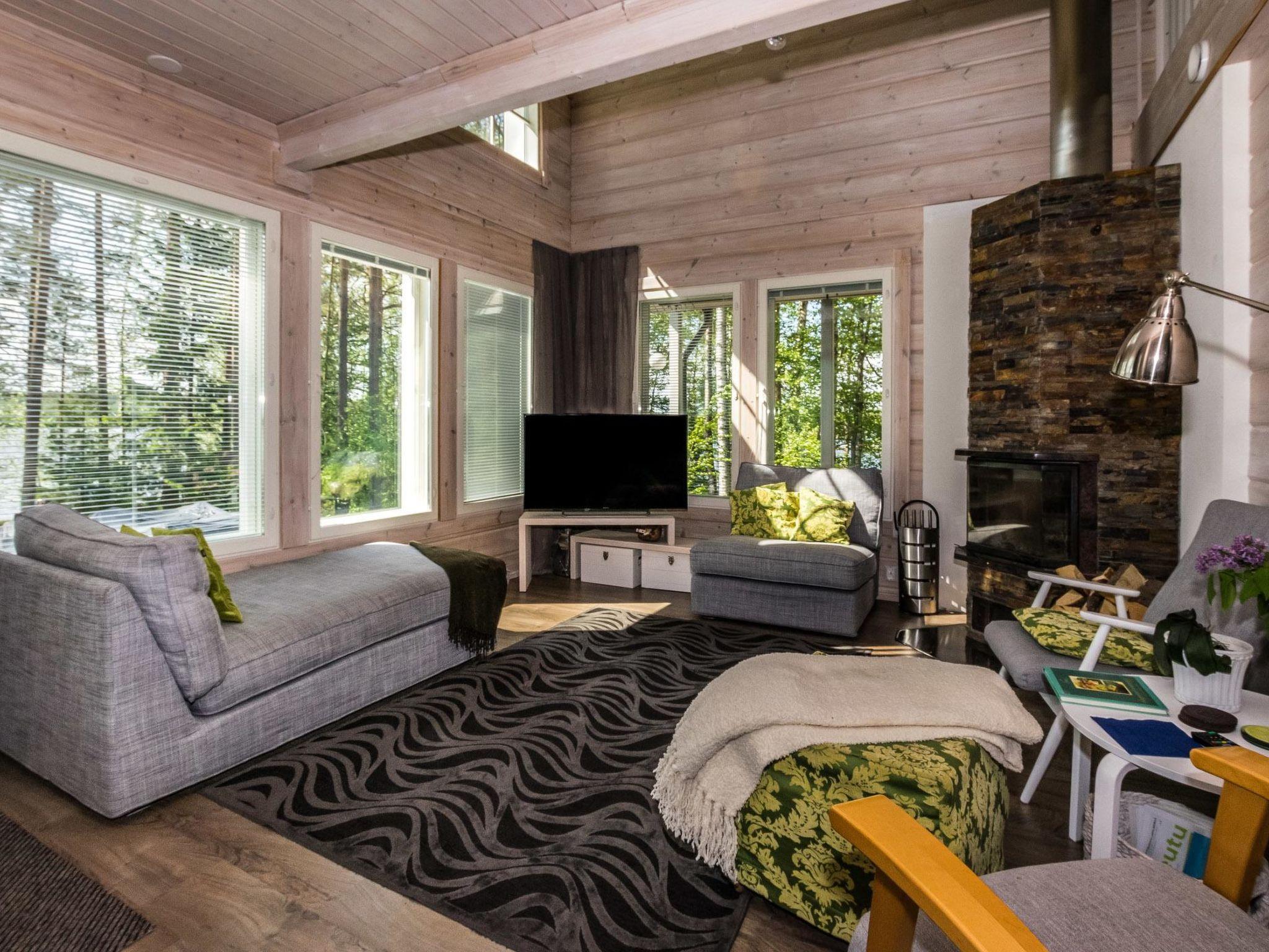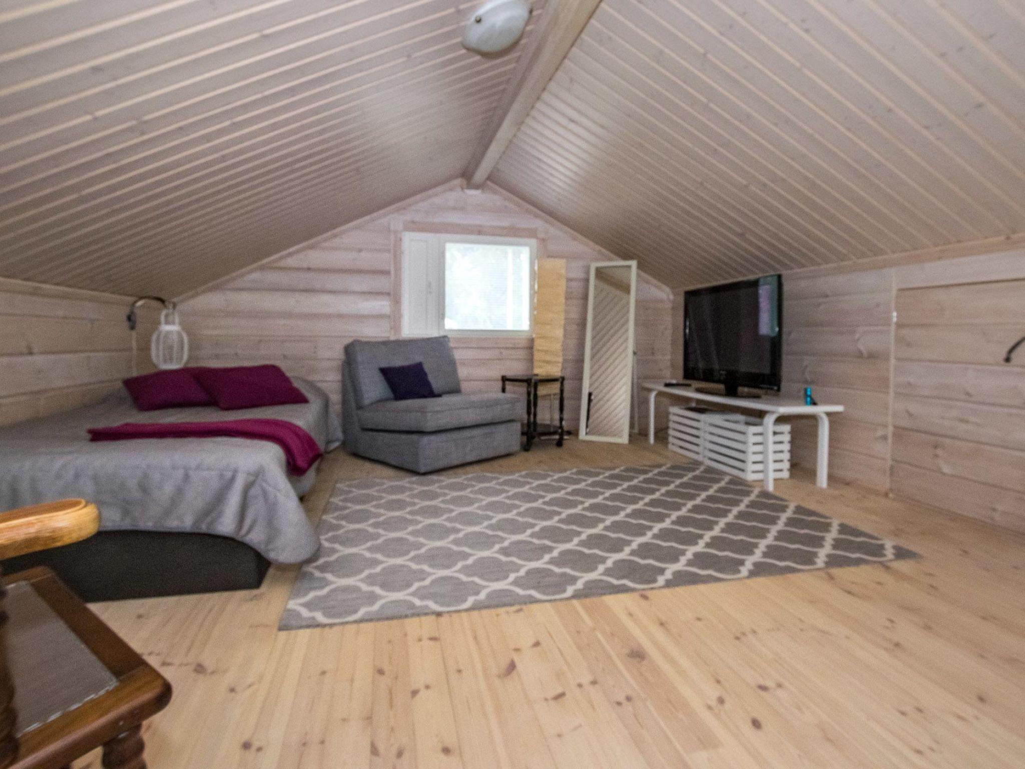 High-quality, well equipped log cabin 2012, two bedrooms, bedroom 1: 160x200 cm bed, bedroom 2: 120x200 cm bed, undivided space with 120x200 cm bed and 120x200 cm mattress on the upper floor. Living room with heat reserving fireplace. Living room/kitchen, separate WC, washroom, sauna (electric sauna stove) and large terrace with electric grill and garden furniture.