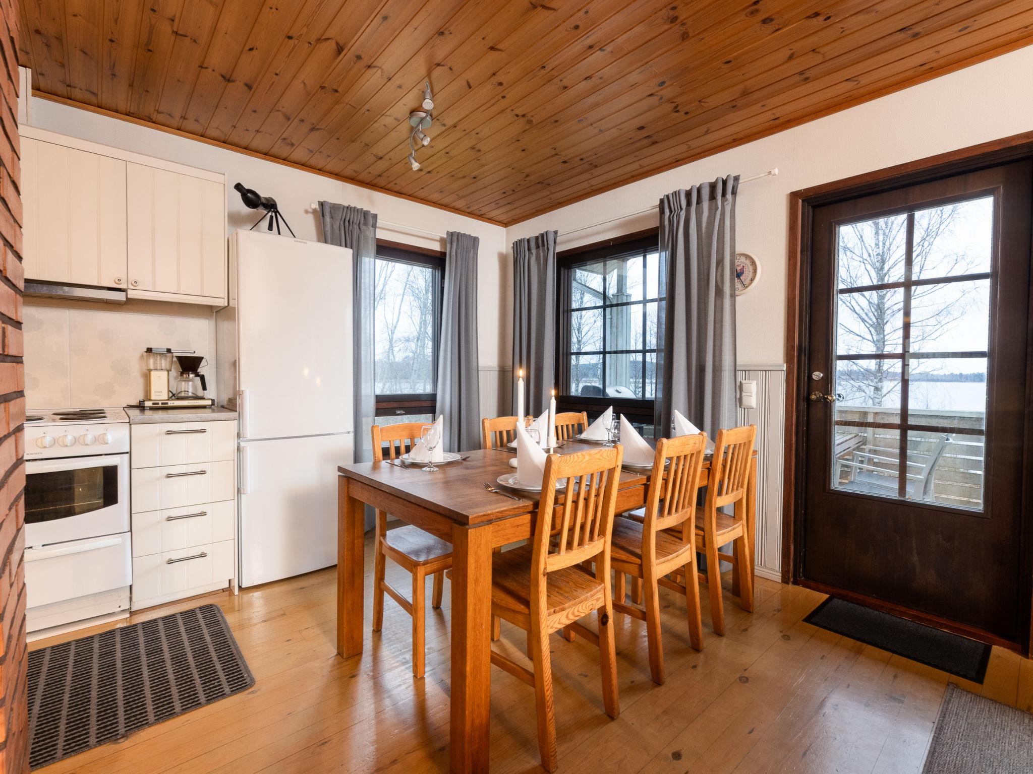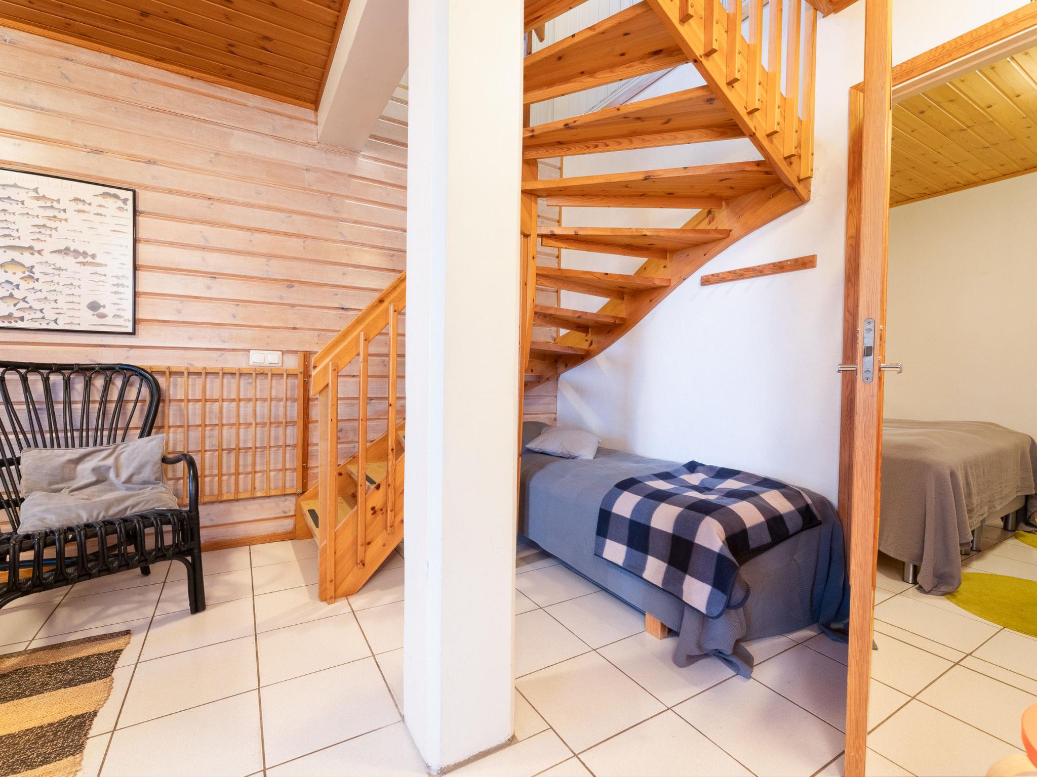 Downstairs: bedroom 3 beds, room with fireplace with 1 extra bed, sauna (wood-burning stove), washroom (shower). Cottage has balcony and open terrace towards evening sun.