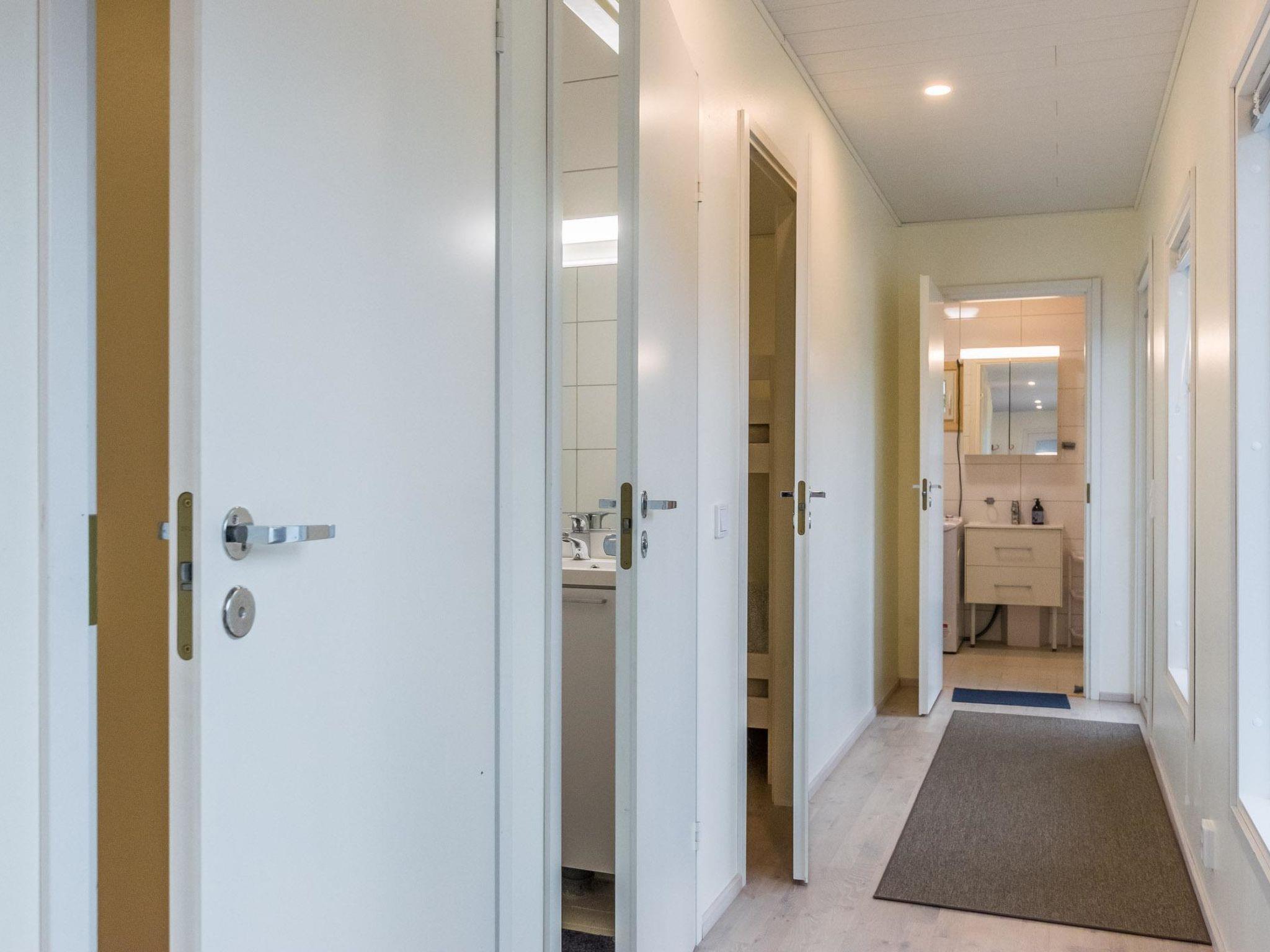 Wooden cabin (2019), living room/kitchen with a heat-storing fireplace. Two bedrooms: one with a double bed and a bunk bed (90x200 cm), the other with two beds and a bunk bed (90x200 cm), along with two thick 90x200 cm extra mattresses.