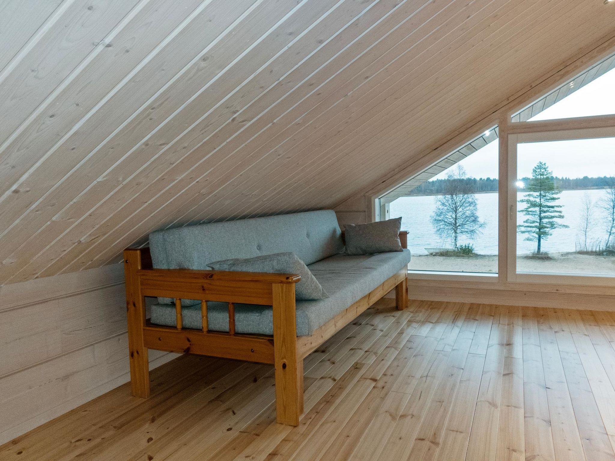 The villa has an open kitchen with a sofa bed. There is a double bed in one bedroom, two separate beds in the second bedroom, and a sofa bed in the loft. Please note that the stairs leading to the loft are very steep. There is a sauna, a shower room, and a WC. On the beach, there is a covered terrace.