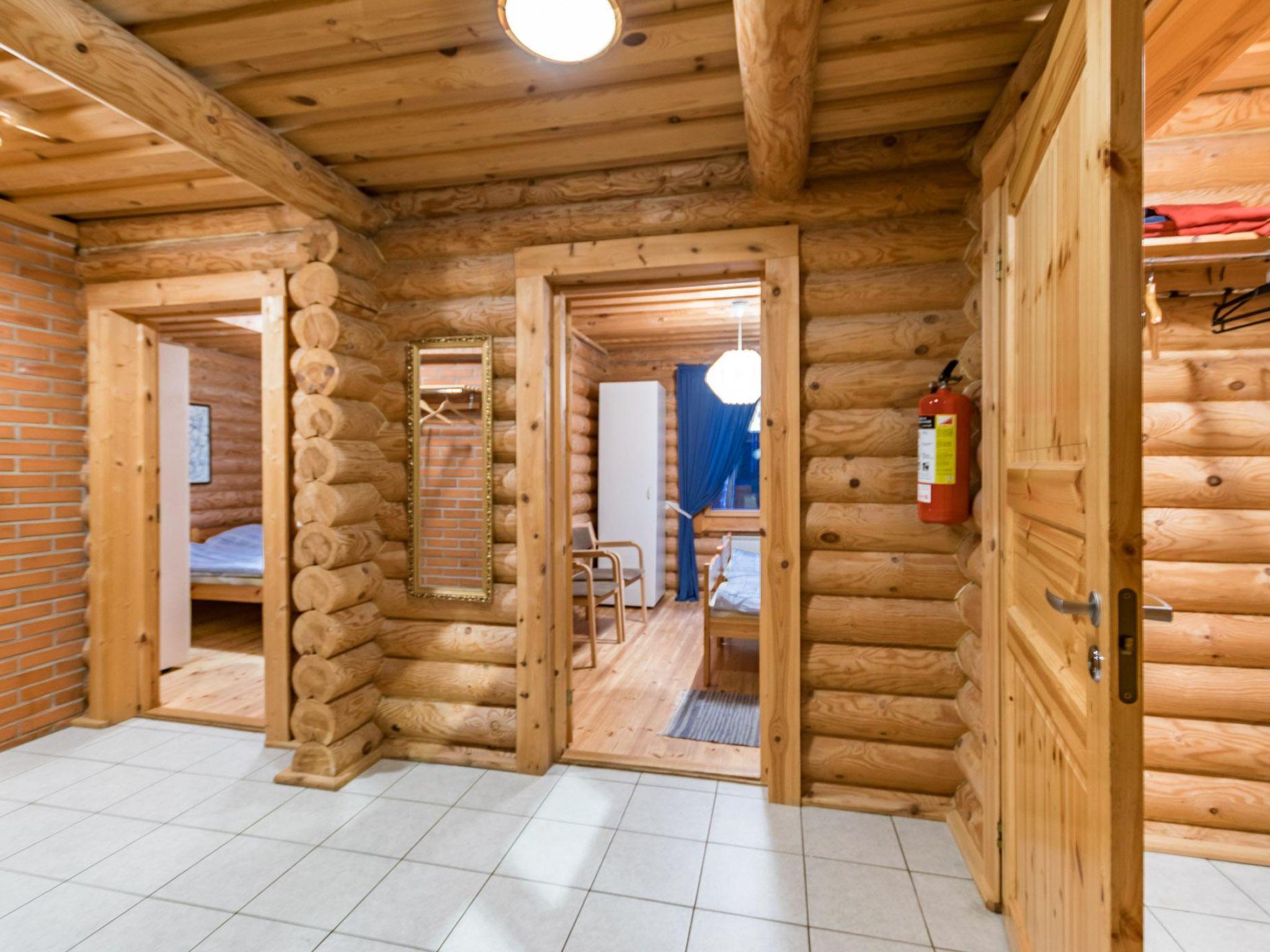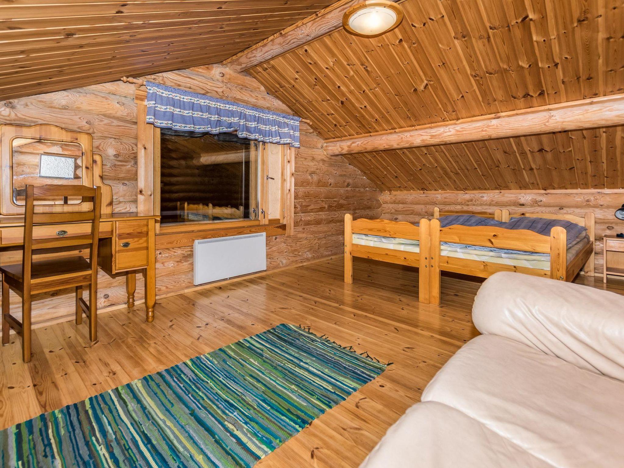68 km east of Jyväskylä, L.Hankavesi 30 m (length 7 km, width 3 km), shallow, hard sand ans stone bottom, own boat. Log cottage 2006, living room/ kitchen, 2 bedrooms 2 beds in each, upstairs bedroom 2 beds and lounge 120 cm wide mattress, washroom (shower), hall, open porch. Shore sauna (30 m²), room with fireplace, washroom, H&C water, shower, wood-burning sauna stove.