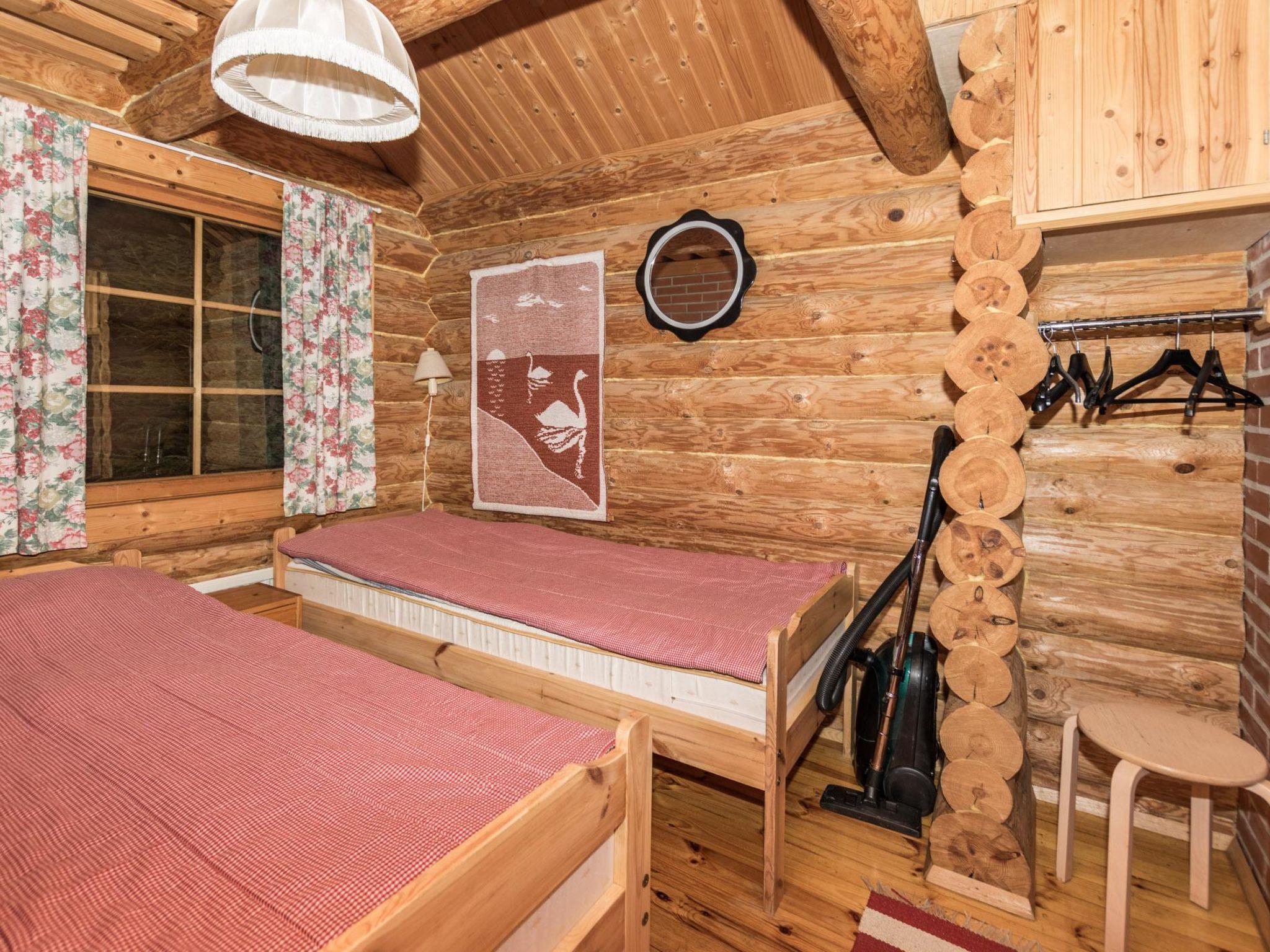 70 km east of Jyväskylä. Lake Hankavesi 35 m (length 7 km, breadth 3 km), shallow water, firm ans stony gravel/clay bottom. Own boat. Log cabin 1995, living room/kitchen, bedroom with 2 beds, bedroom with 1 bed (120 cm), sleeping loft with 2 mattresses, open veranda, balcony. Lakeside sauna with a shower, hearth room.