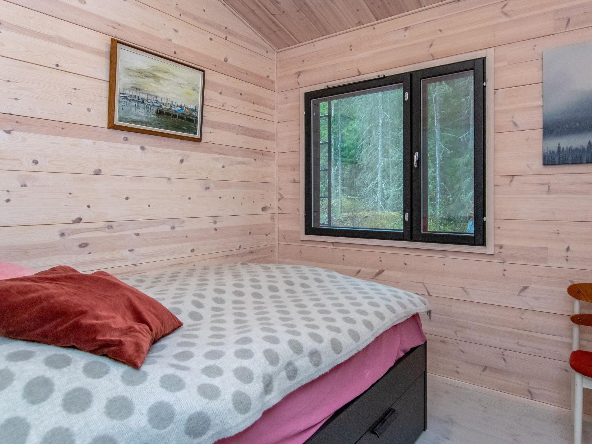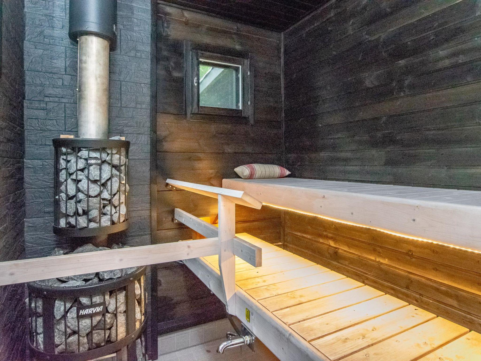 Log cottage 2021, living room and kitchen, two bedrooms, both with a double bed, toilet, shower in the bathroom, wood stove in the sauna. The kitchen has a gas hob, oven-microwave combination and other devices are electric.