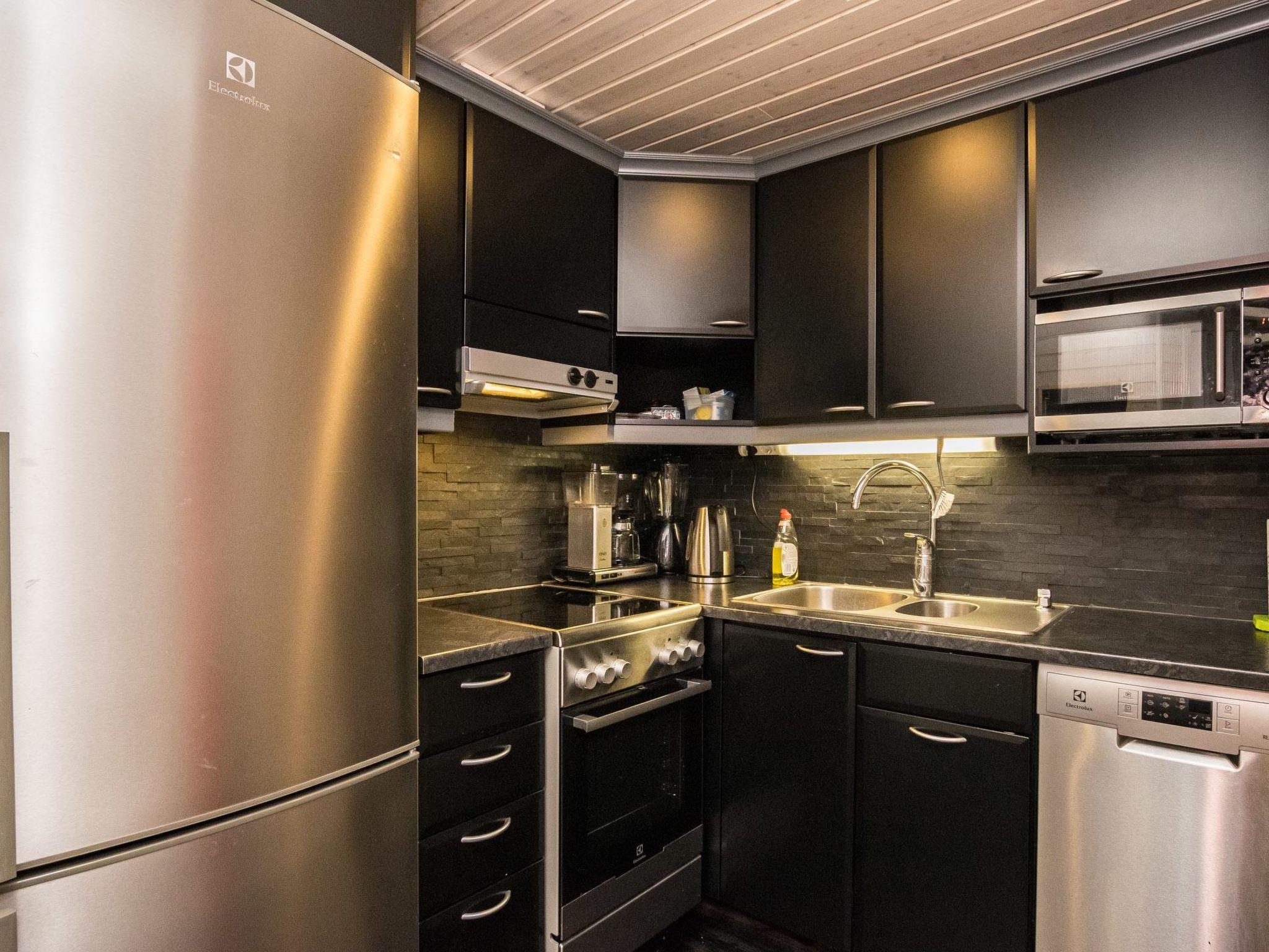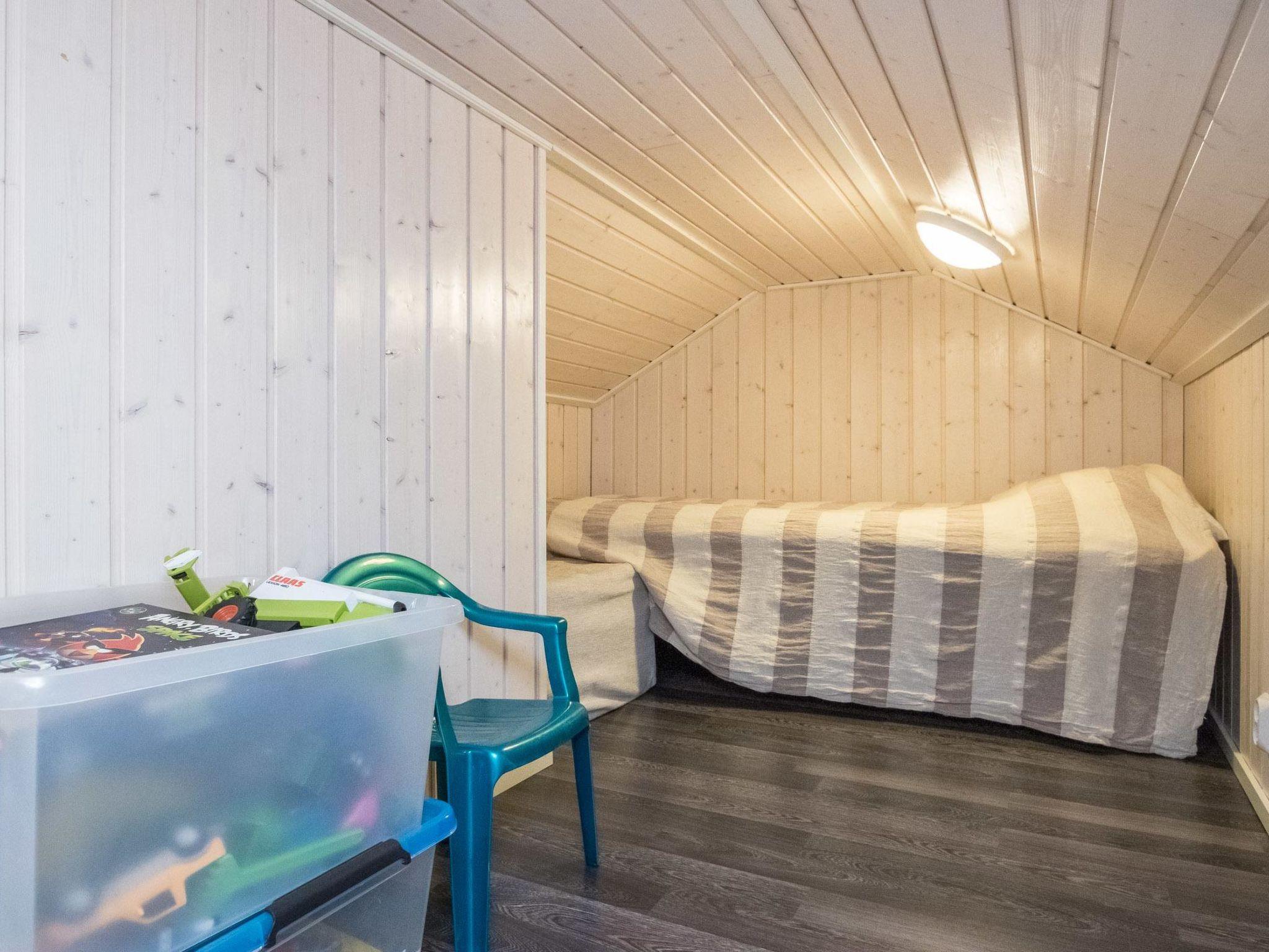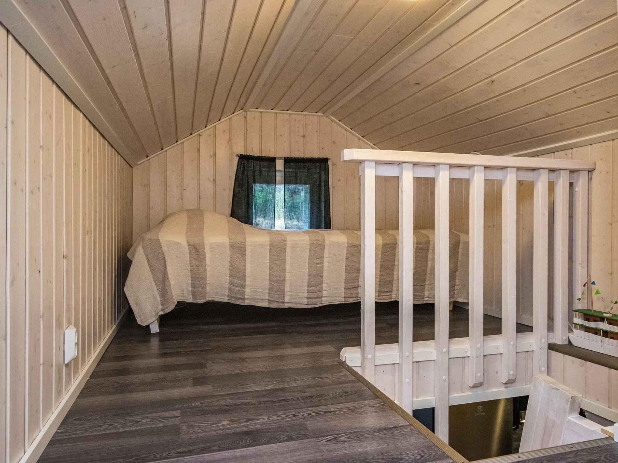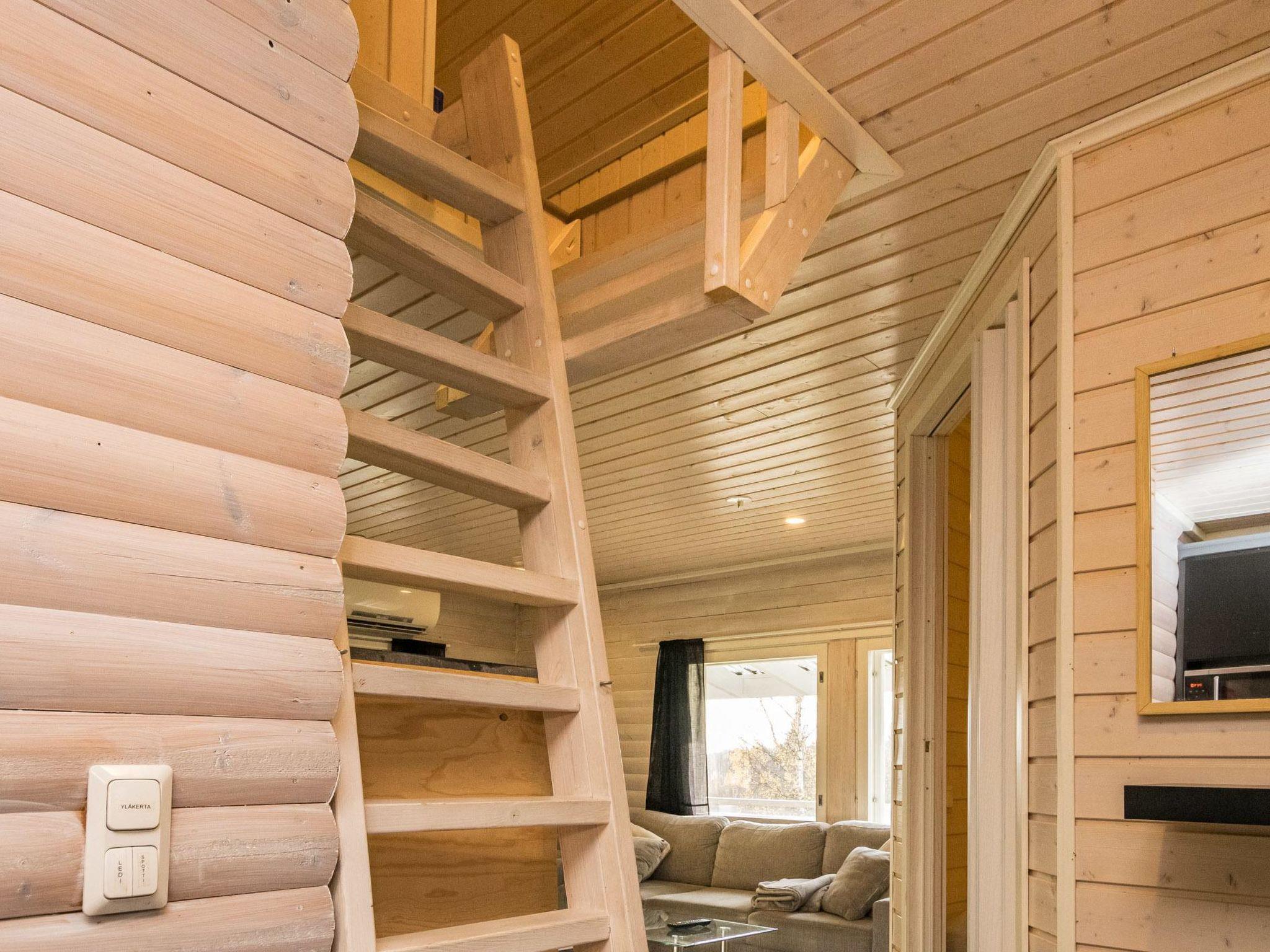 Hand carved log cabin 1950, totally renovated and inner side paneled 2014. Combined kitchen-living room, downstairs alcove (5 m ², no window) with double bed, upstairs loft with 2 single beds, steep and narrow stairs to the loft, sauna, toilet and shower cubicle in the washroom. Fine, large covered terrace 50 m². Tumble-dryer and air source heat pump.