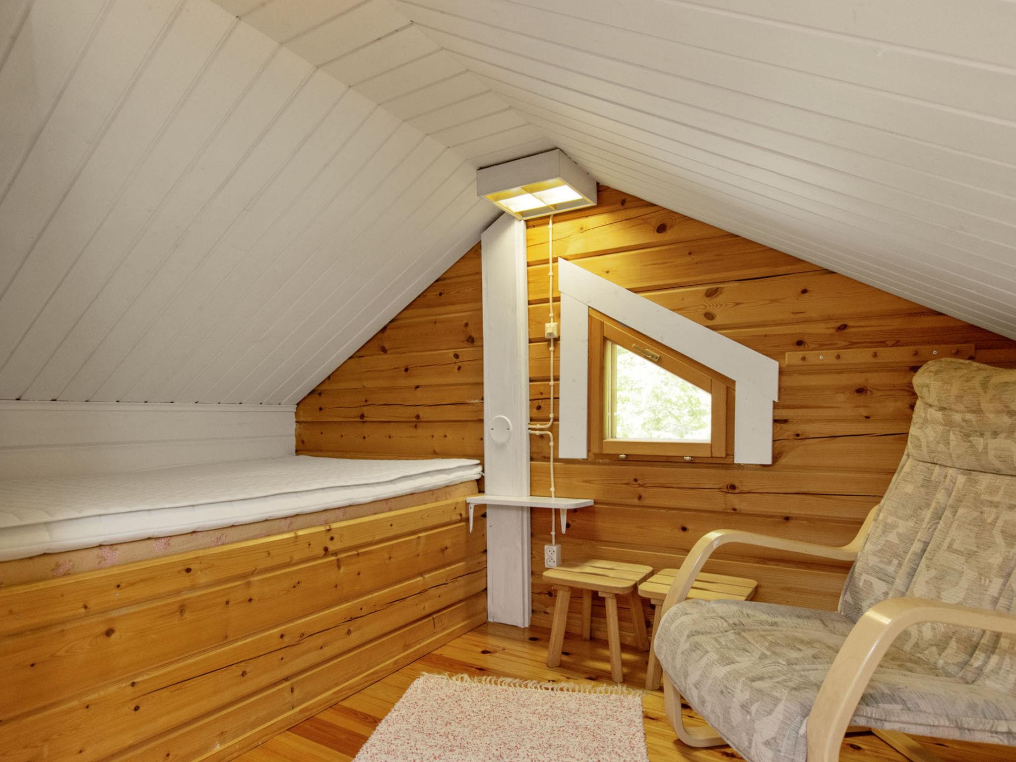 80 km southwest of Joensuu, Lake Pölläkkäjärvi 35 m (1,9 km²), shallow sanded mud and partly rocky bottom, own beach, rowing boat and jetty. Log cottage 1991, living room, kitchen, bedroom with double bed, sleeping gallery (9 m²) with 2 beds, sleeping gallery (4 m²) with 2 beds, bathroom, sauna (elec. stove), terrace. Own separate sauna building (10 m²) with wood heated stove (smoke sauna oven not in use), in sauna building a room with 2 beds, electricity and water supply.