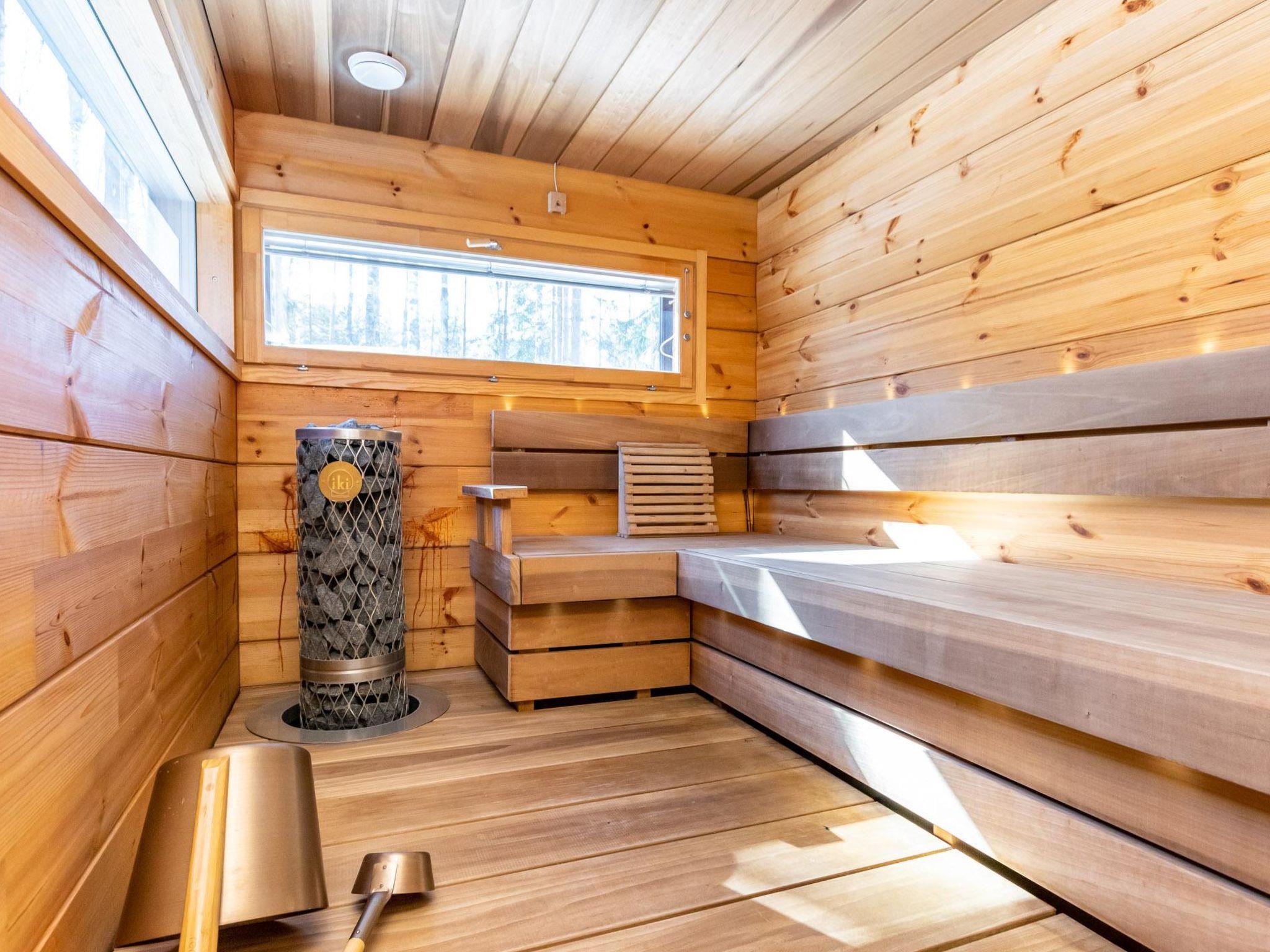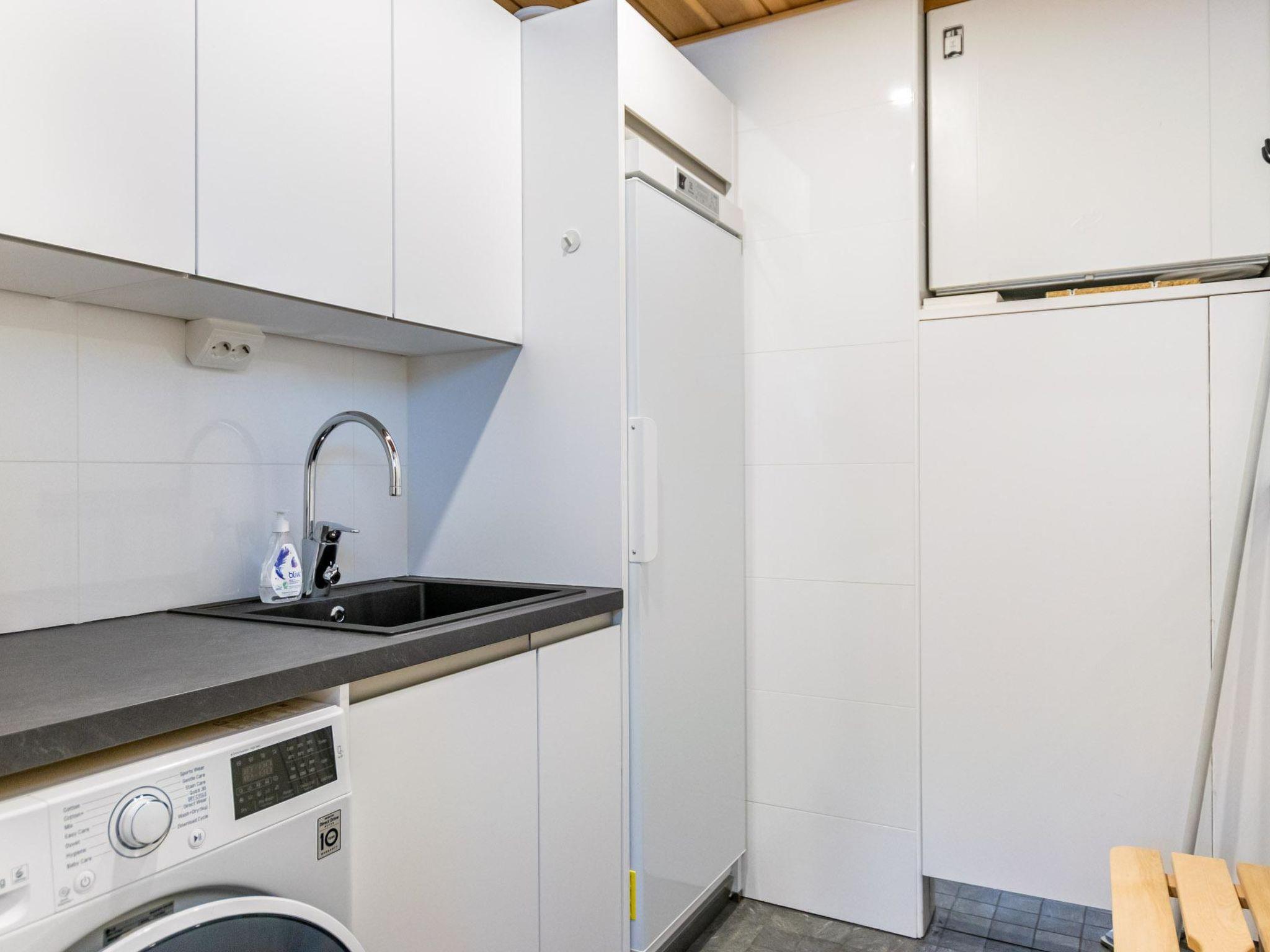 You can grill delicious food on the partially covered spacious terrace, the terrace is also well lit. You can enjoy your meals either on the peaceful terrace or at the generous concrete table inside. The kitchen, equipped for even the most demanding tastes, allows you to eat in the apartment if Vierumäki's renewable restaurant offer doesn't invite you over every night.
