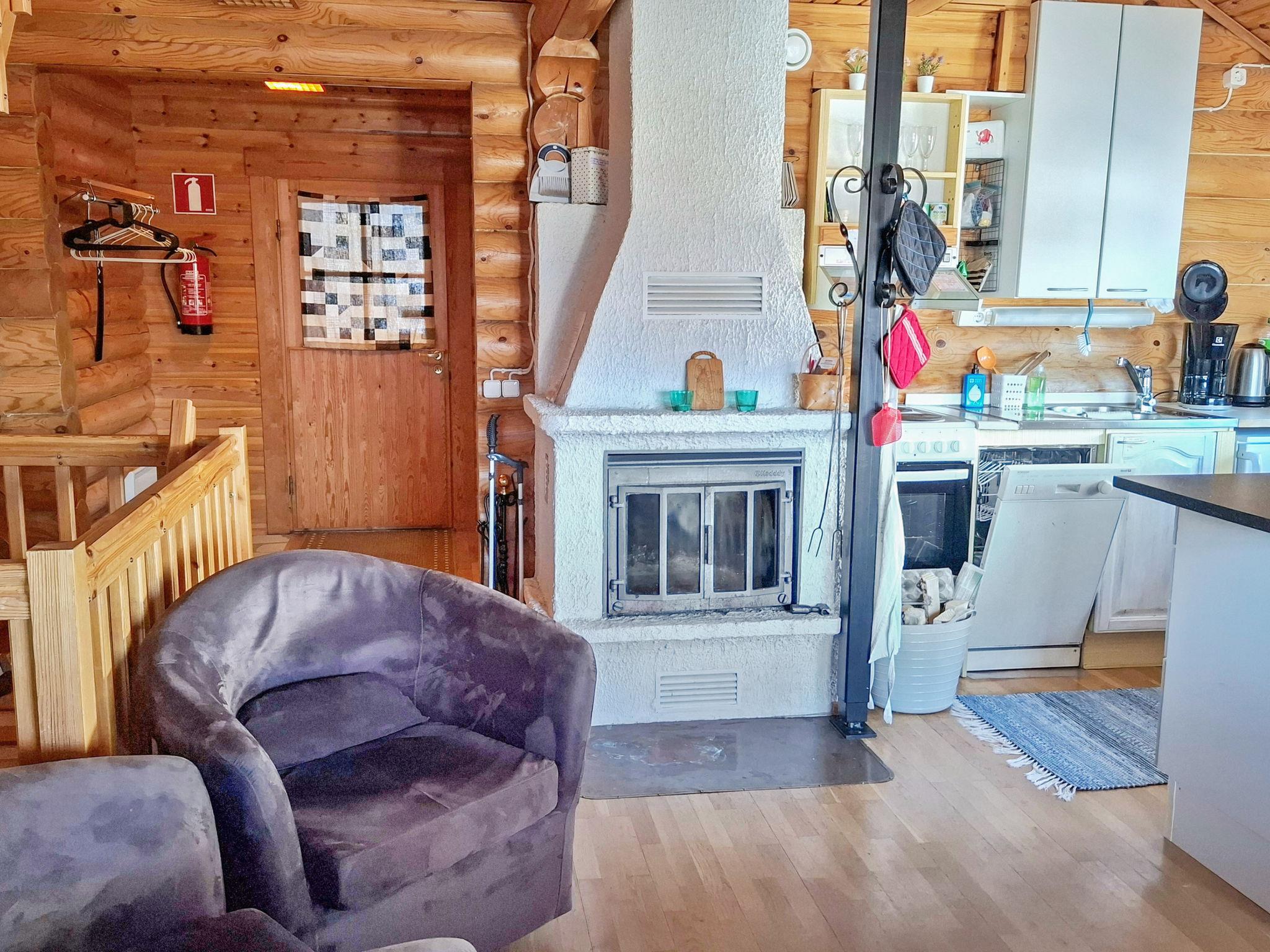 A semi-detached house located in the Ukkohalla tourism centre, 6 persons, 63,5 m², built in 1991, premises on 3 floors, kitchen, bedroom with a double bed, loft, sauna, shower room and separate toilet downstairs, dressing room, balcony, terrace, vestibule, fireplace, 3 beds on the loft, child safety gate on top of the stairs. Steep stairs! Toilet on the ground floor.