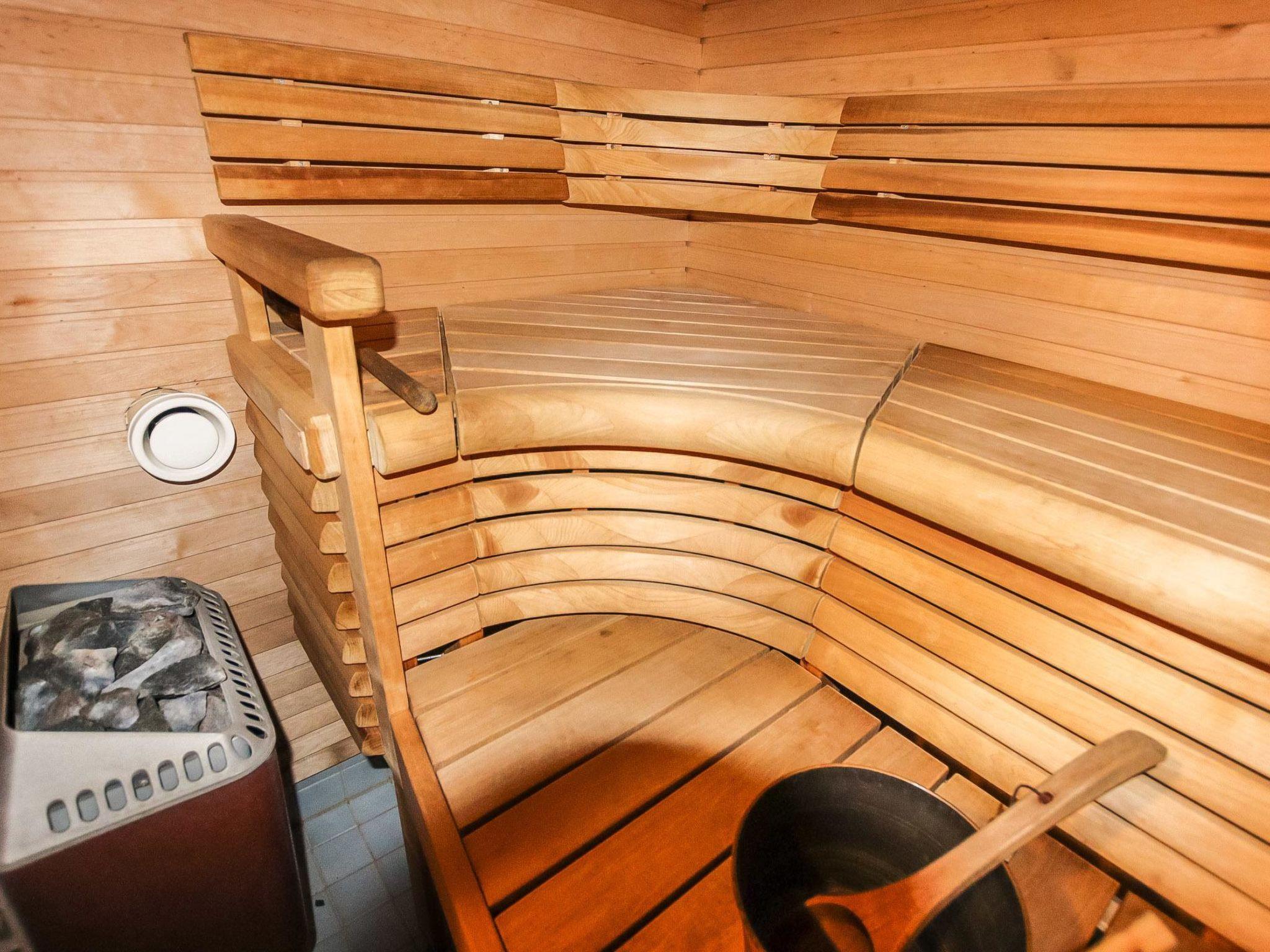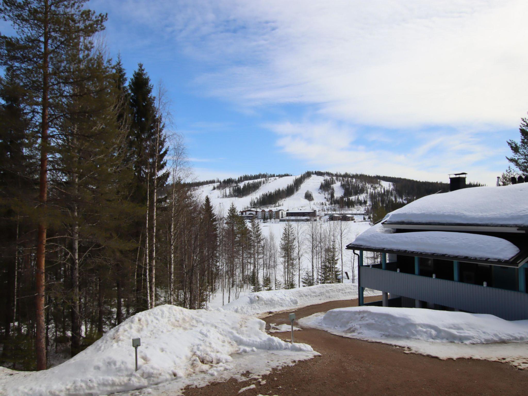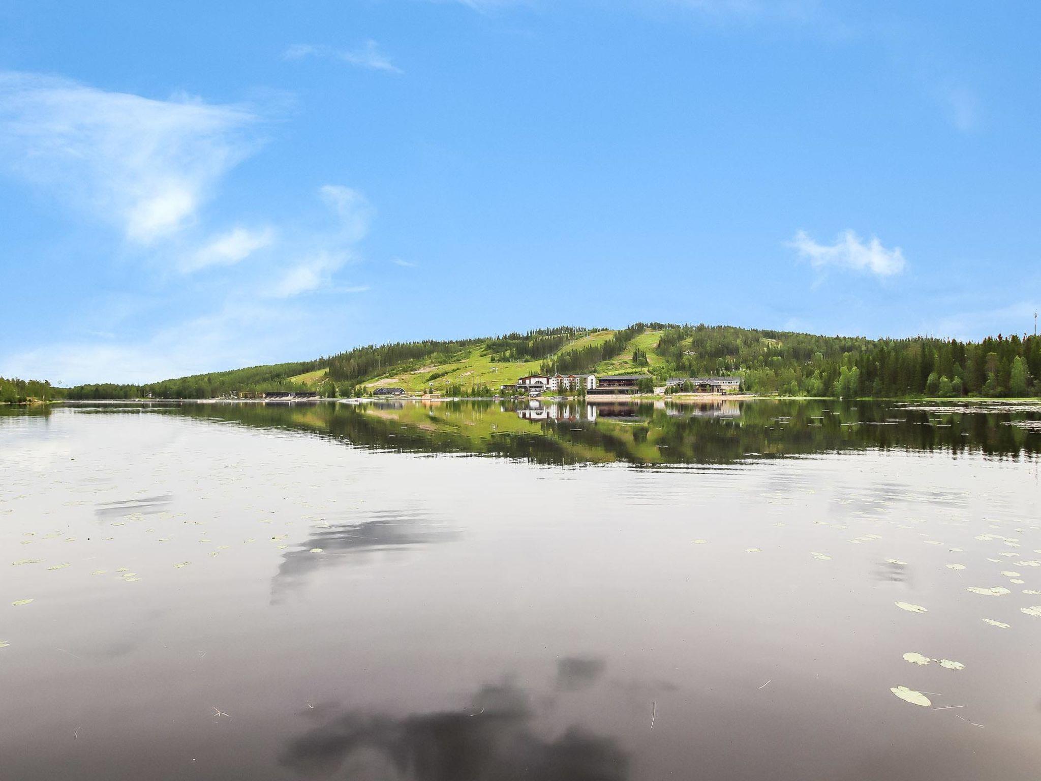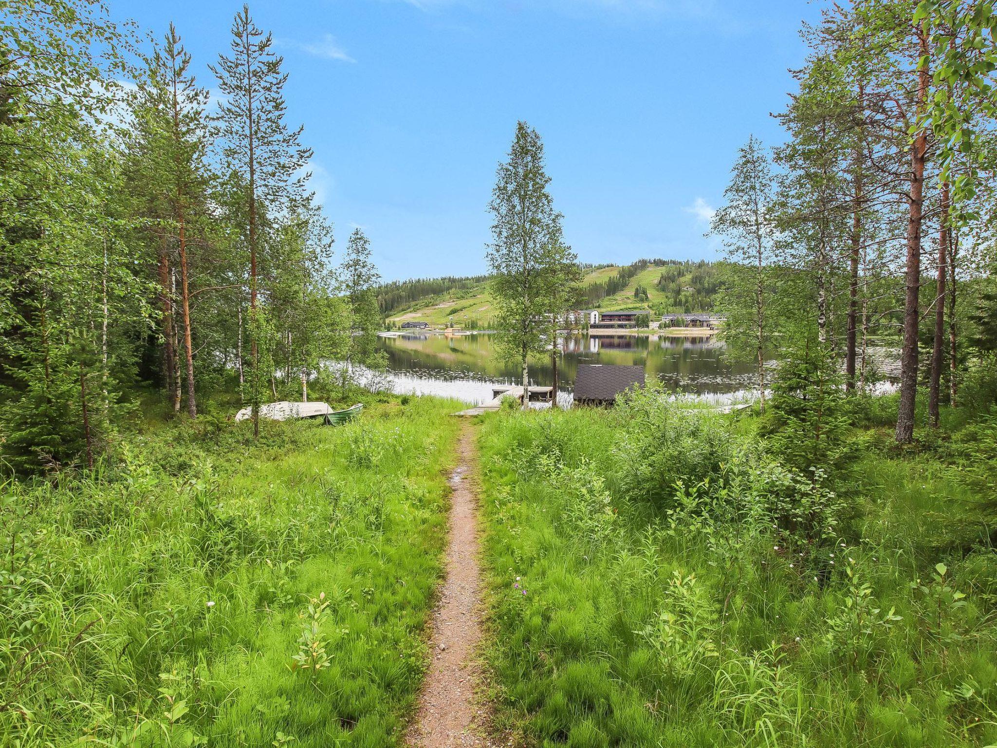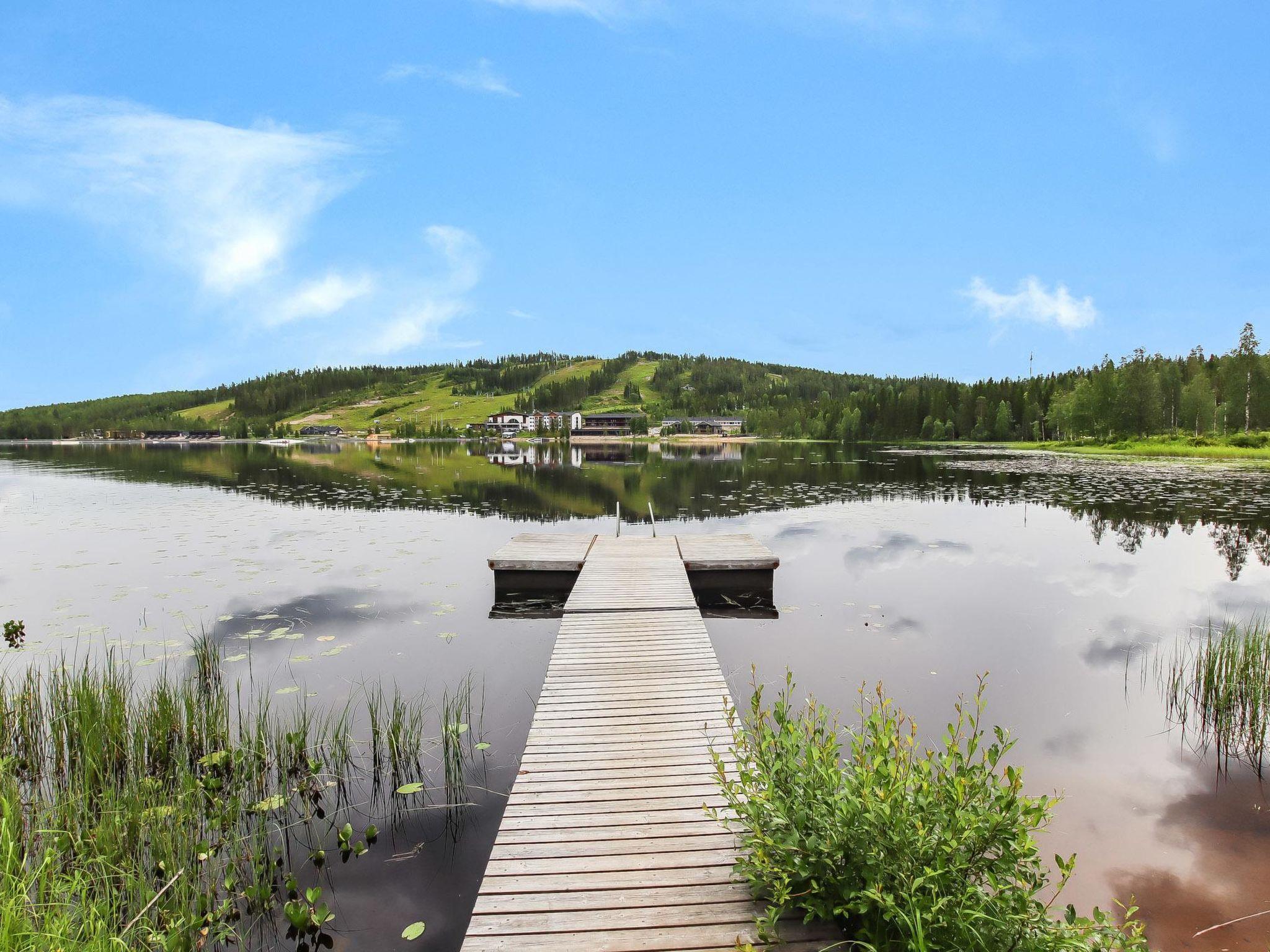 The downstairs of a double semi-detached house located in the Ukkohalla tourism centre, 35 m², built in 1992. Kitchen, bedroom with a bunk bed, sauna, shower room/toilet, terrace, storage, living room sofa-bed. A dock in shared use, lean-to and fireplace.
