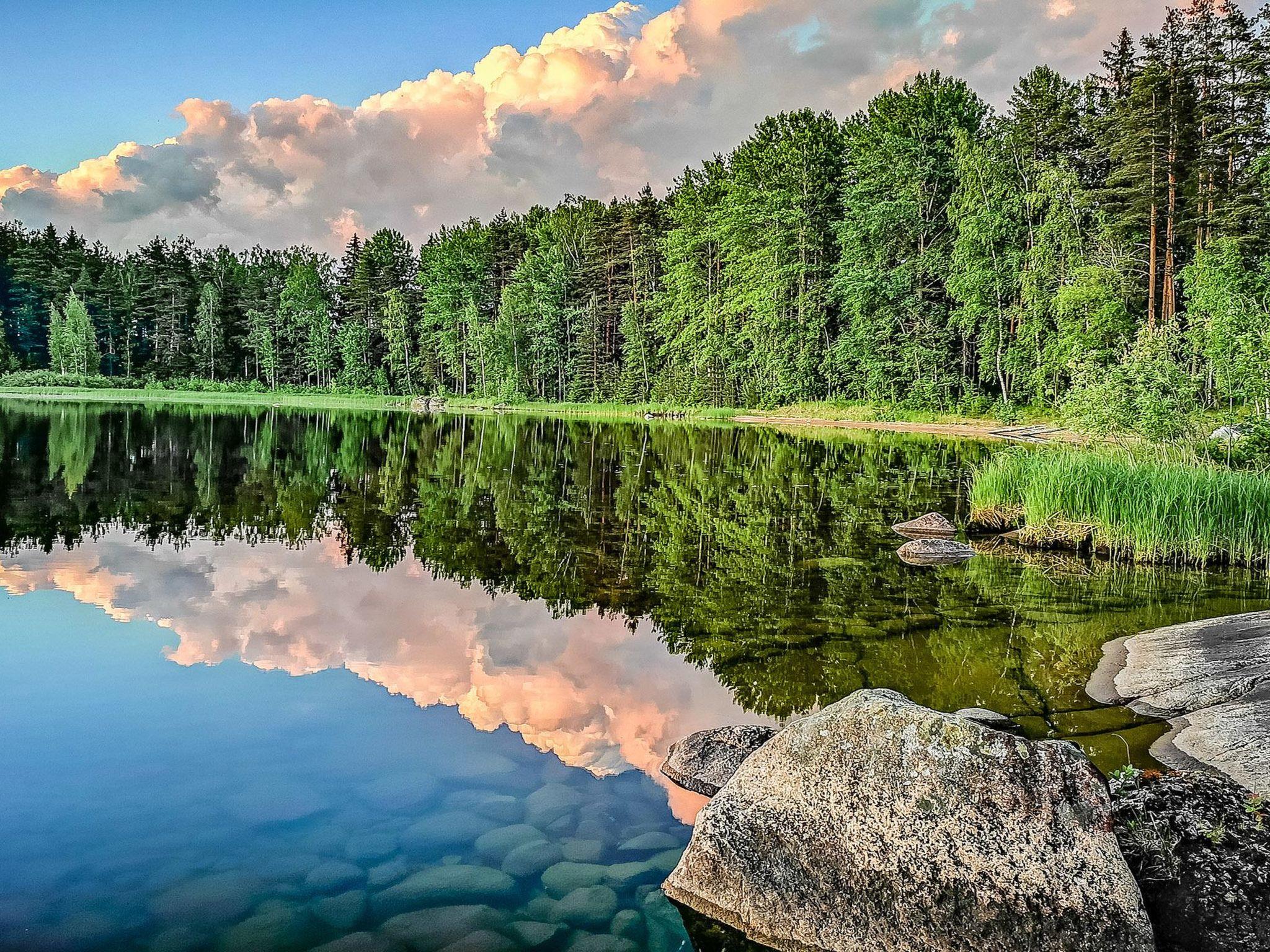 45 km to the east from Lahti, lake Kirkkojärvi 30 m (length 4 km, width 3,5 km), hard, gently deepening sand bottom, rocky beach near pier, rowing boat.