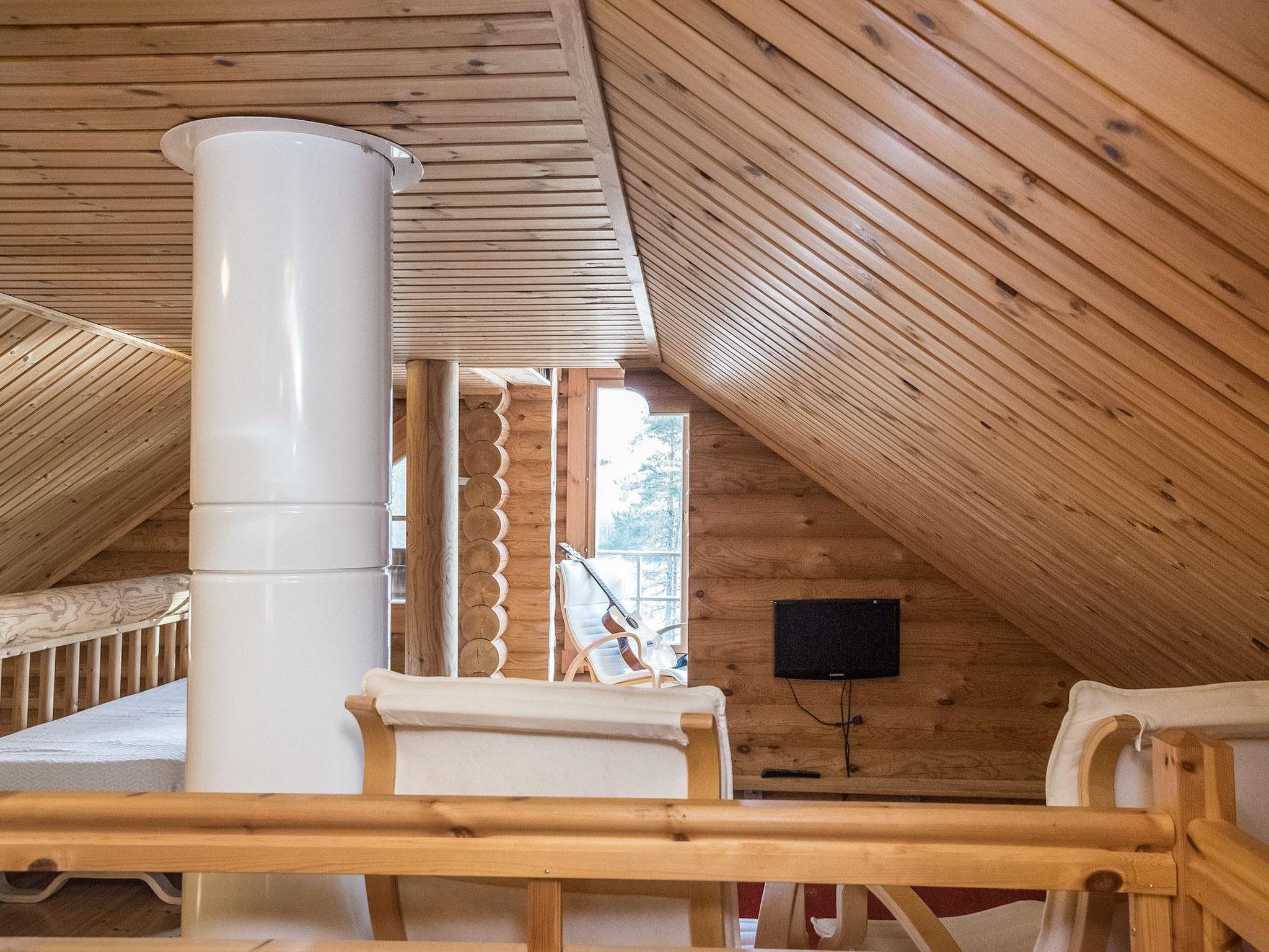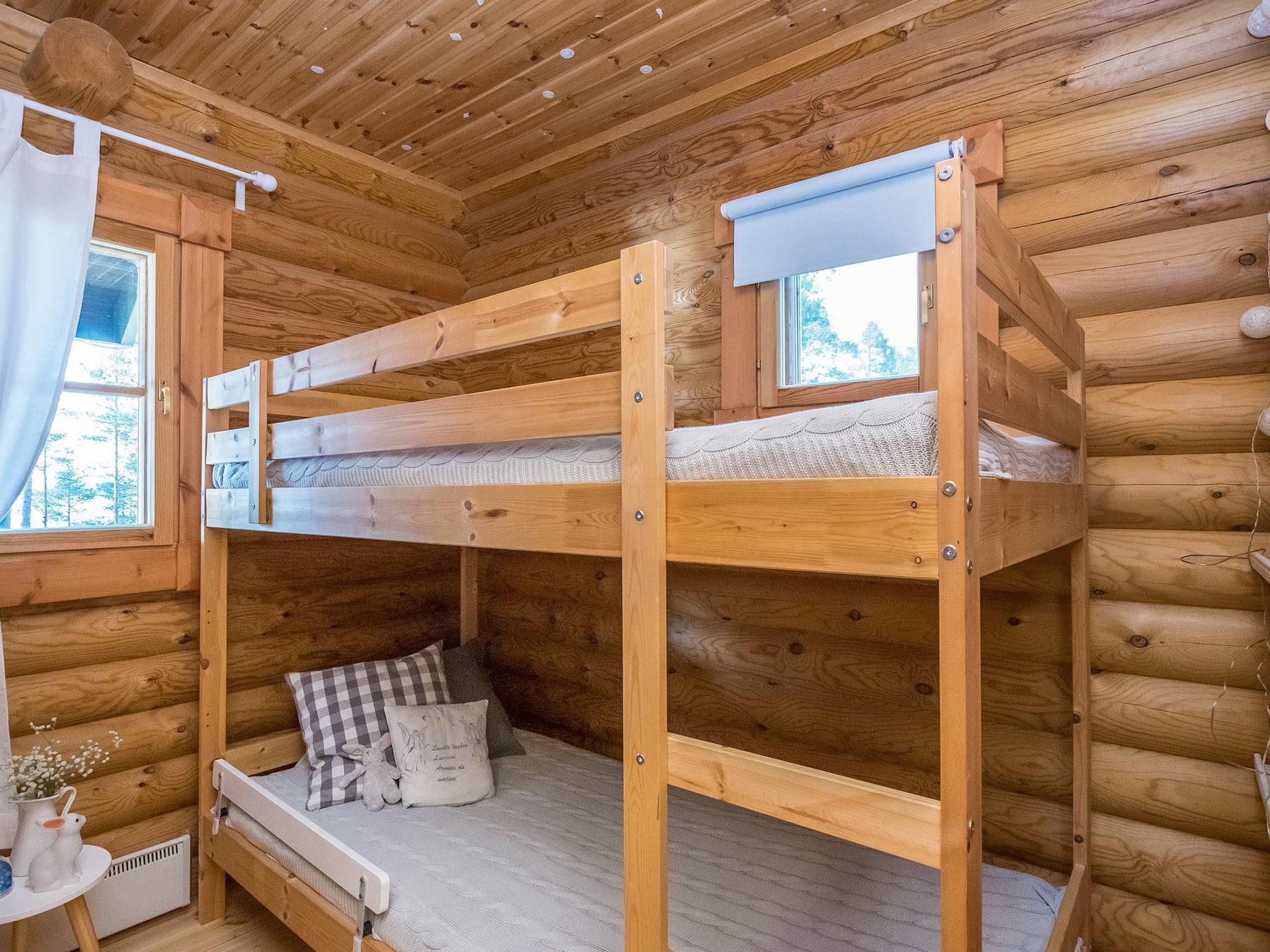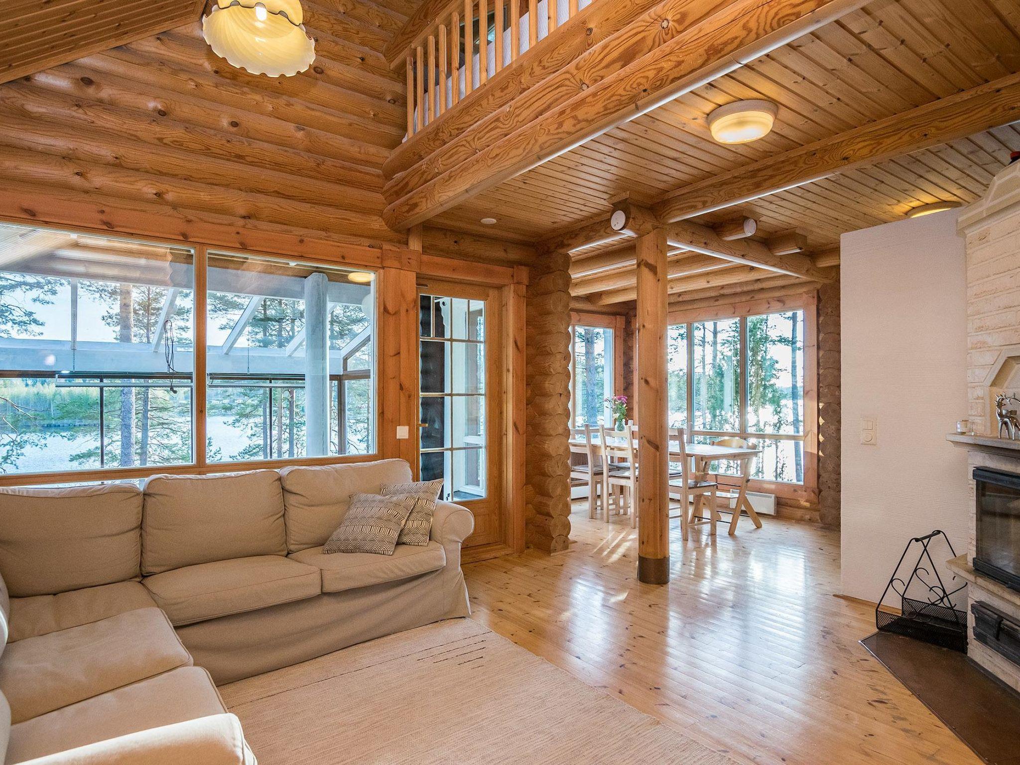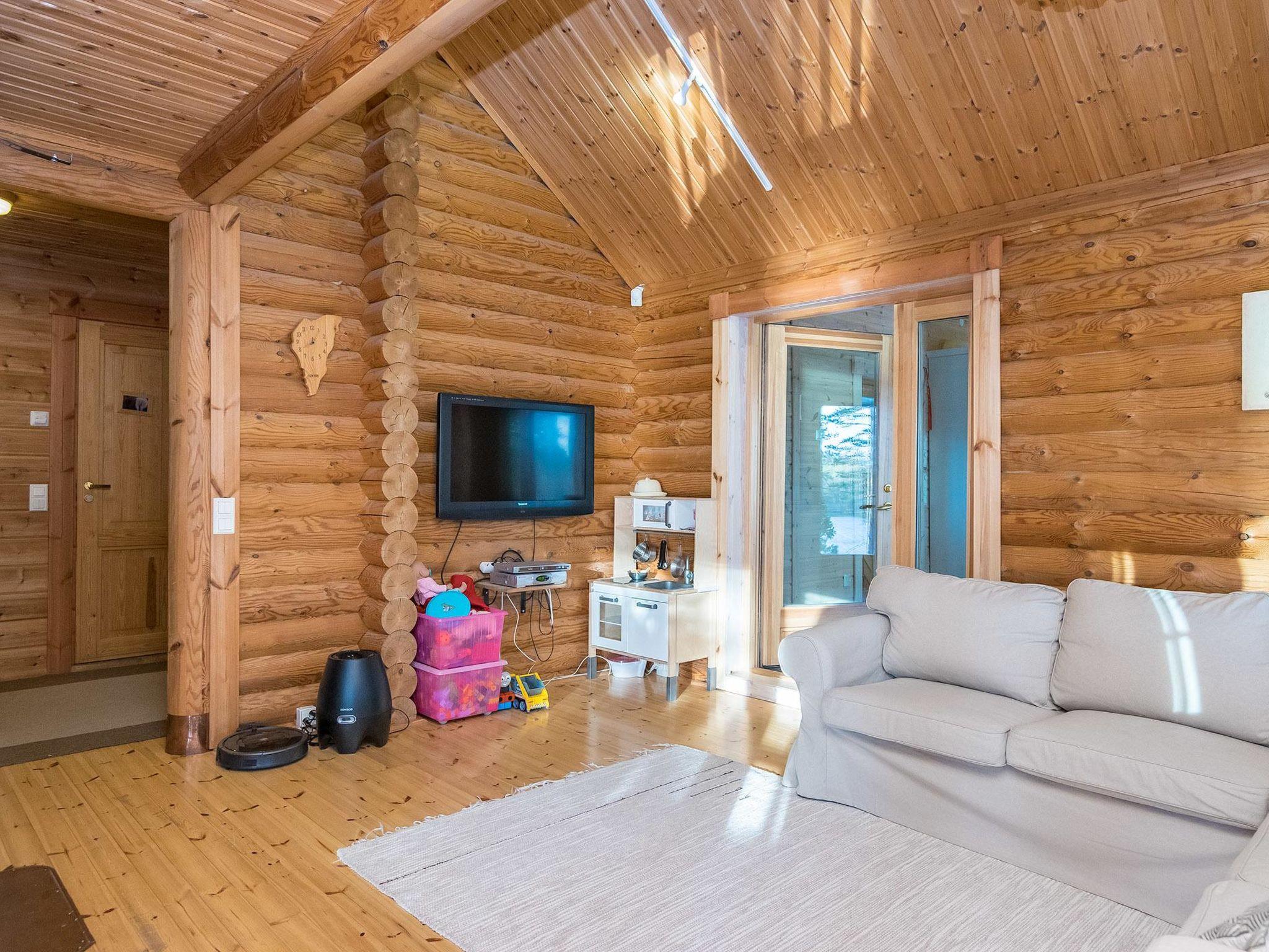 Log villa built in 2003, extended in 2020, the old part has living room, kitchen, bedroom (12 m²) double bed, bunk bed in the sleeping area, washroom with shower and WC, loft (20 m²) with four beds. Glazed terrace.