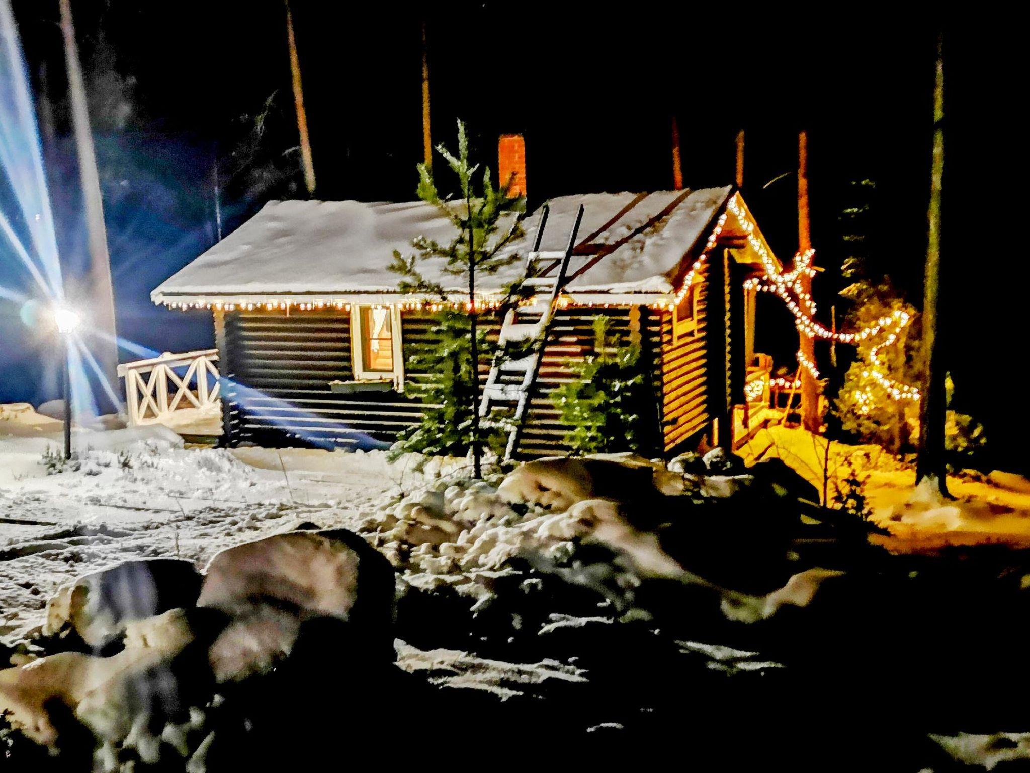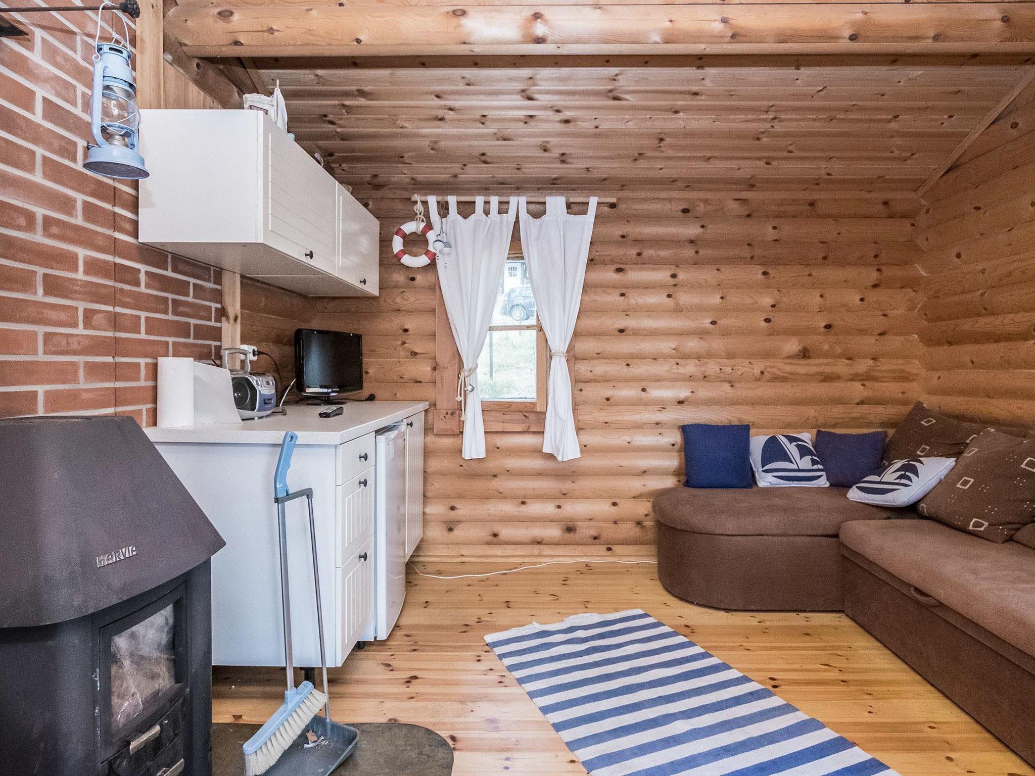 Lakeside sauna with wood-burning sauna stove, sofa bed (two alternative beds), TV, fridge and stove.