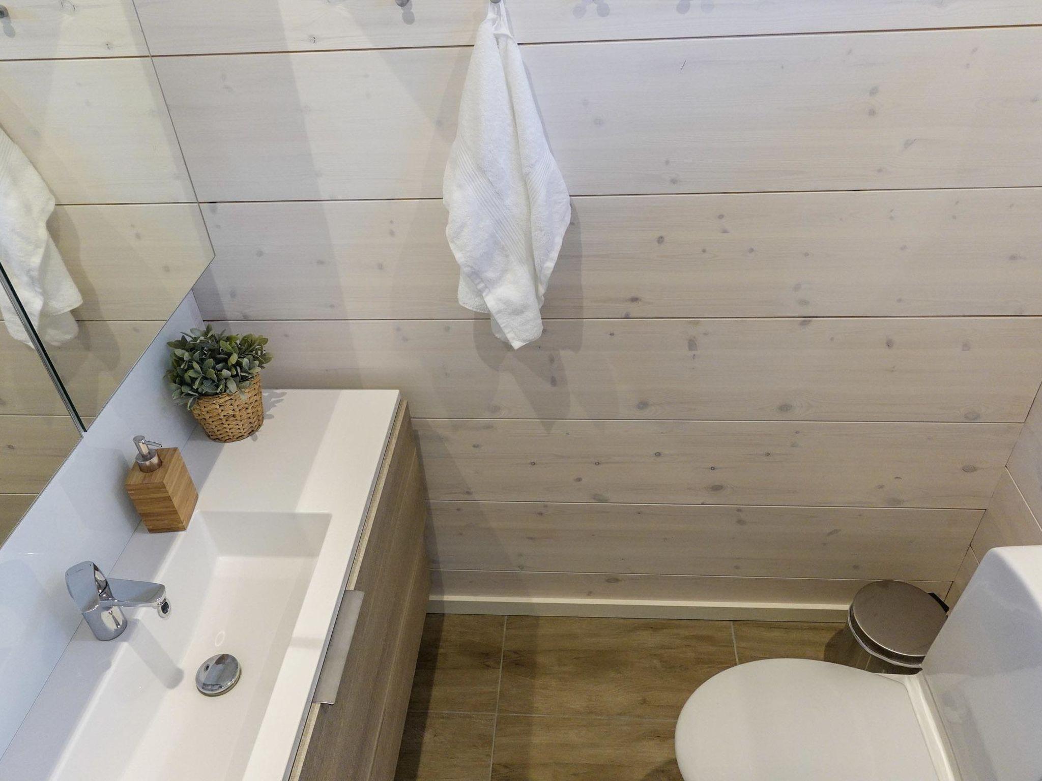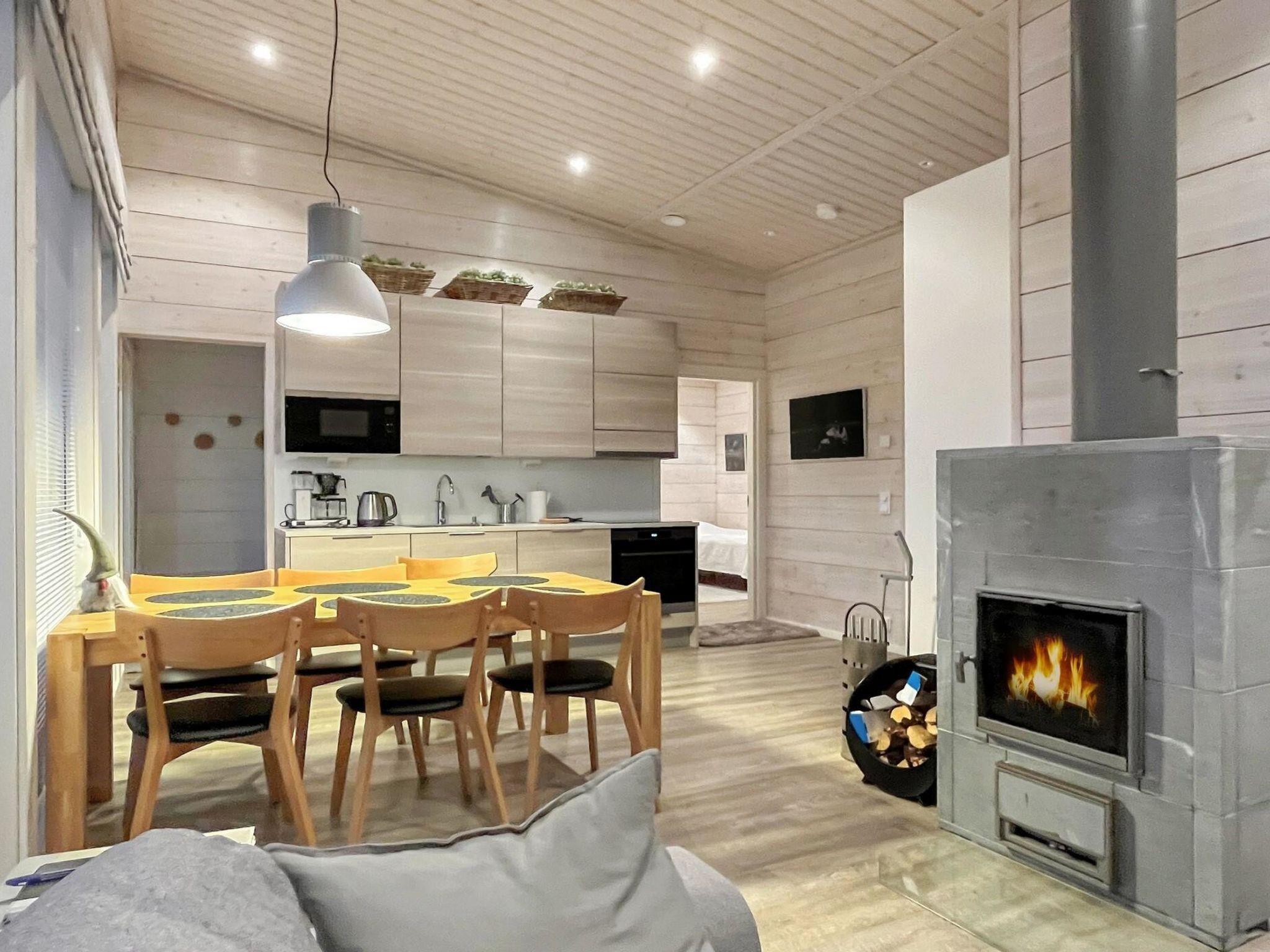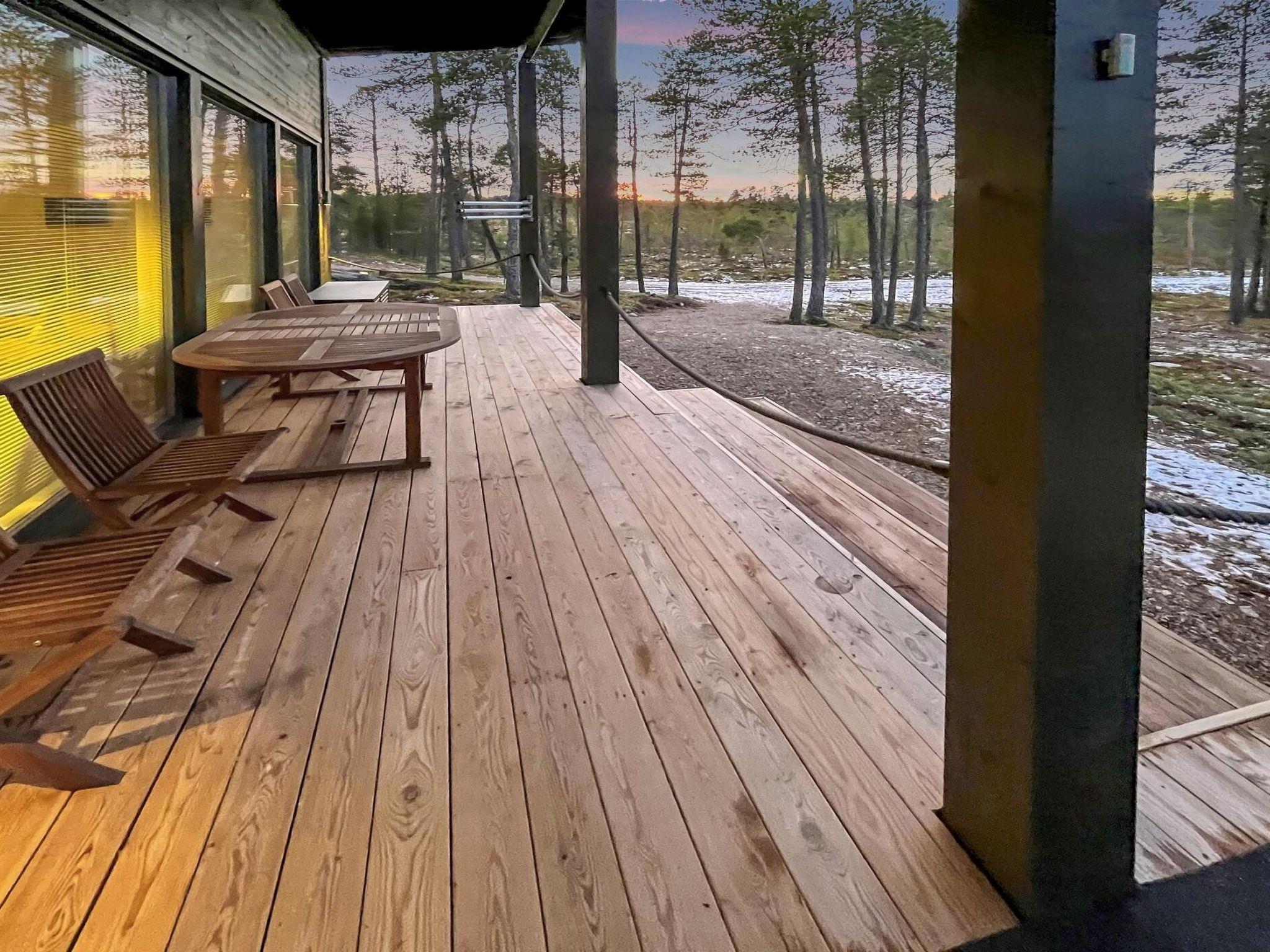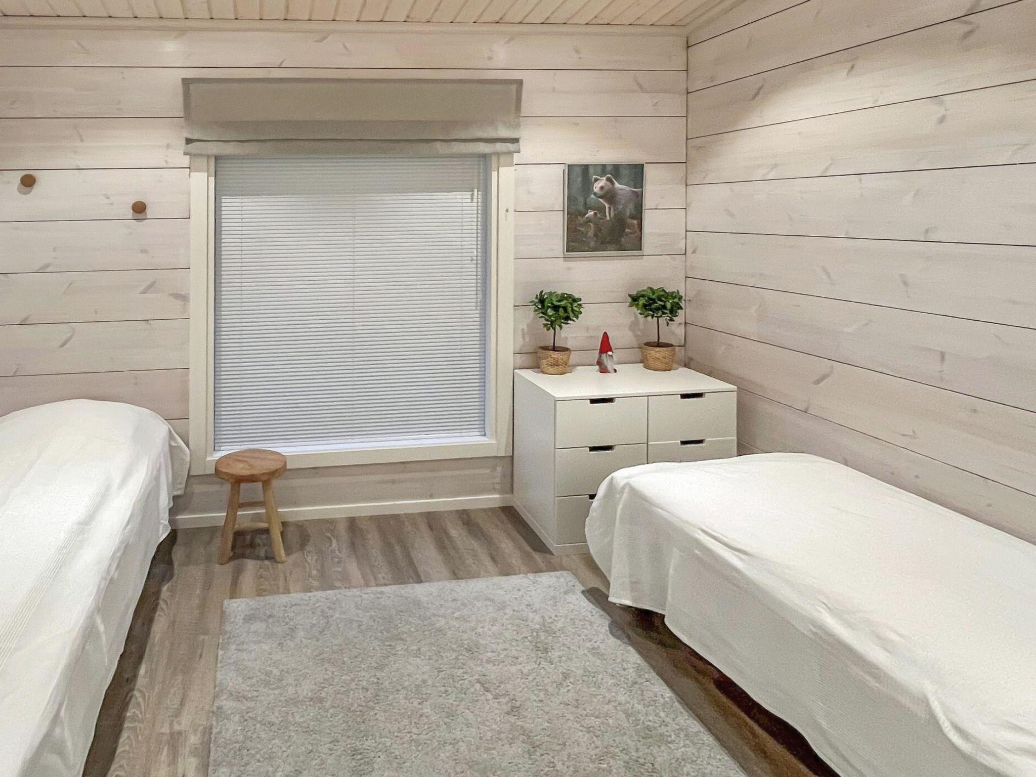 Log house (80 m²), built in 2020. Living room/kitchen with sofa bed, two bedrooms, both with two beds, sauna, washroom, utility room, separate WC and covered terrace.