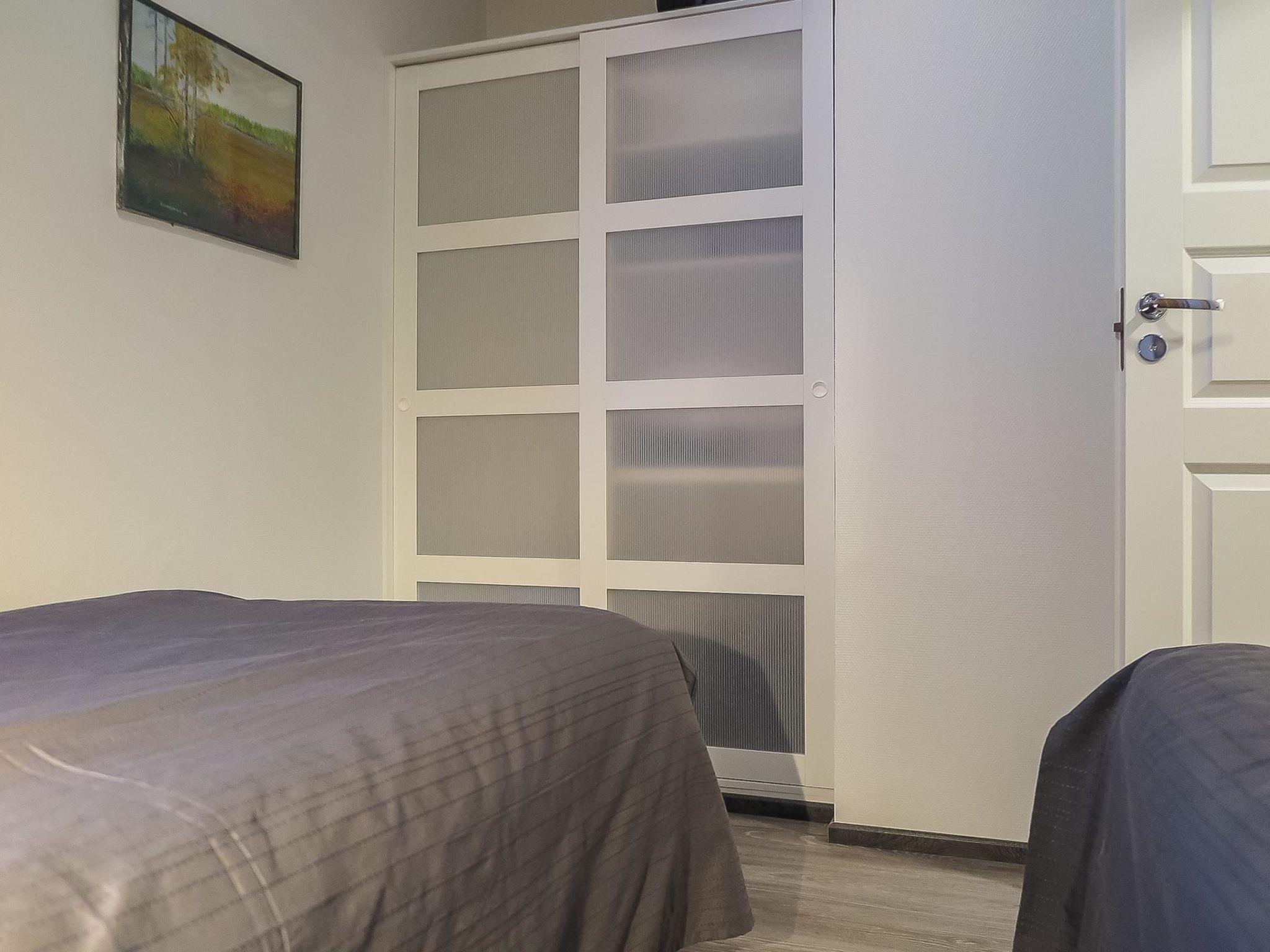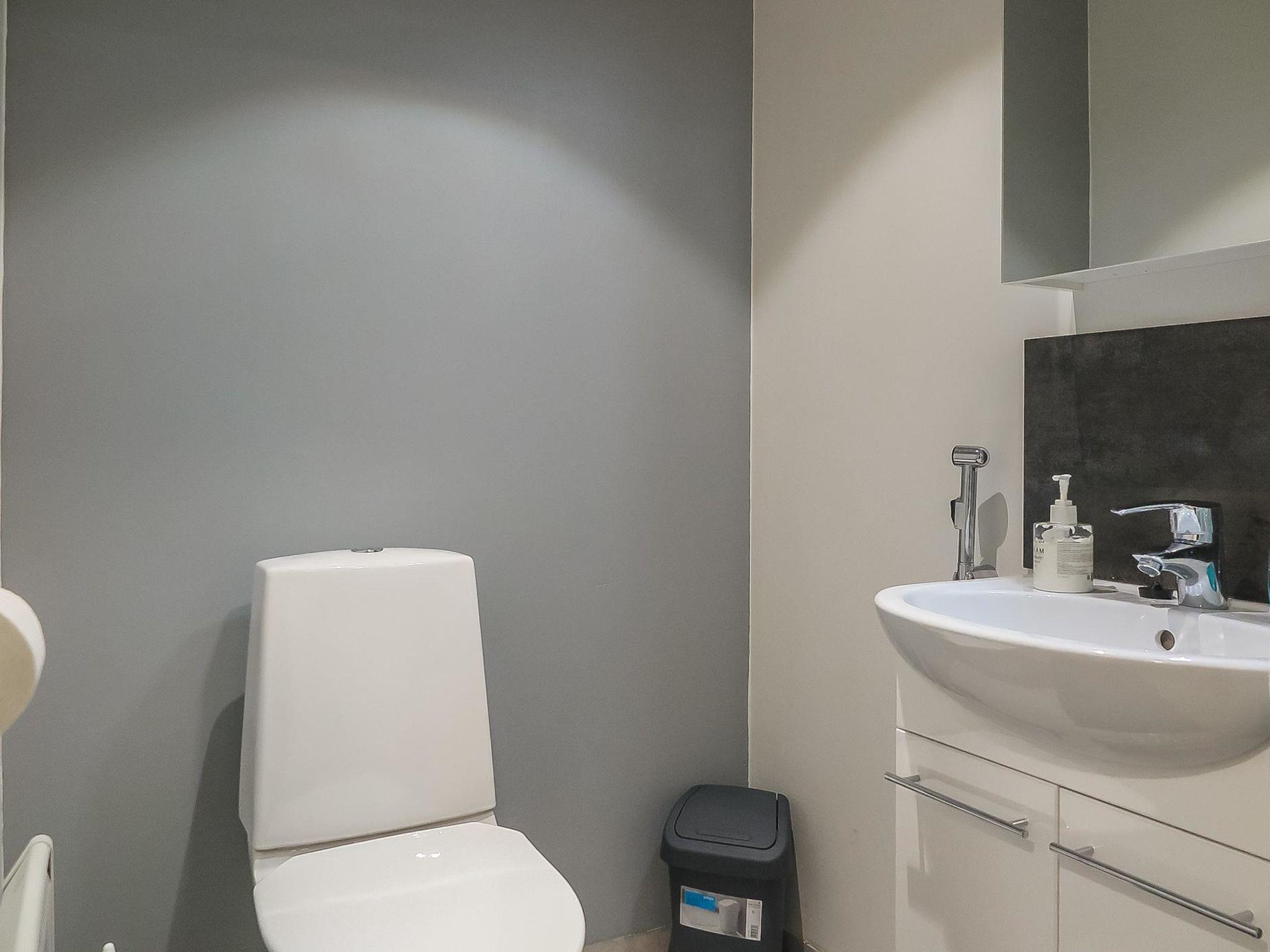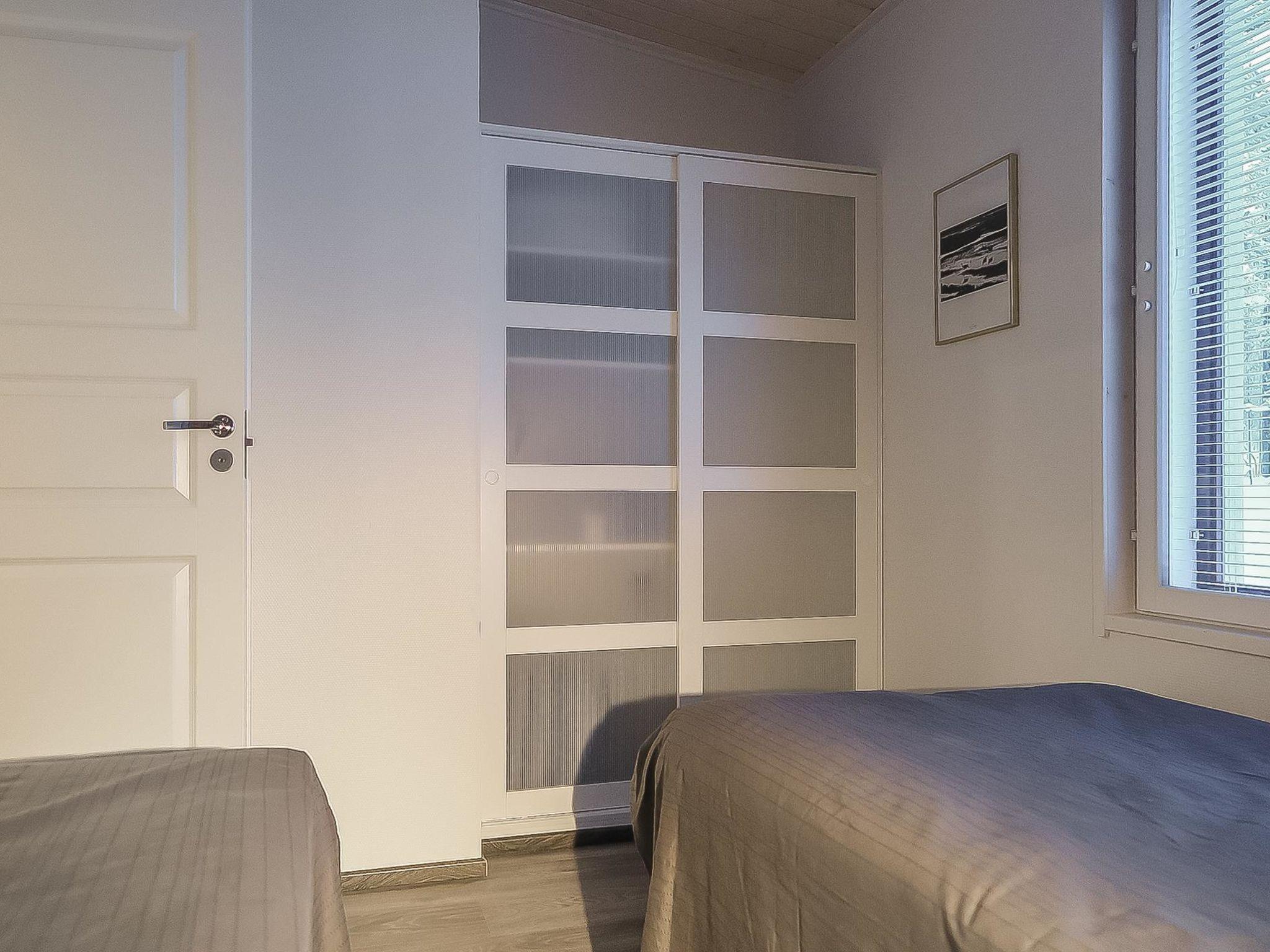 Apartment in semi-detached wooden house, built in 2019. Living room/kitchen with convertible sofa, 2 bedrooms with 2 beds, sauna, washroom/WC, separate WC, covered open veranda and storeroom.