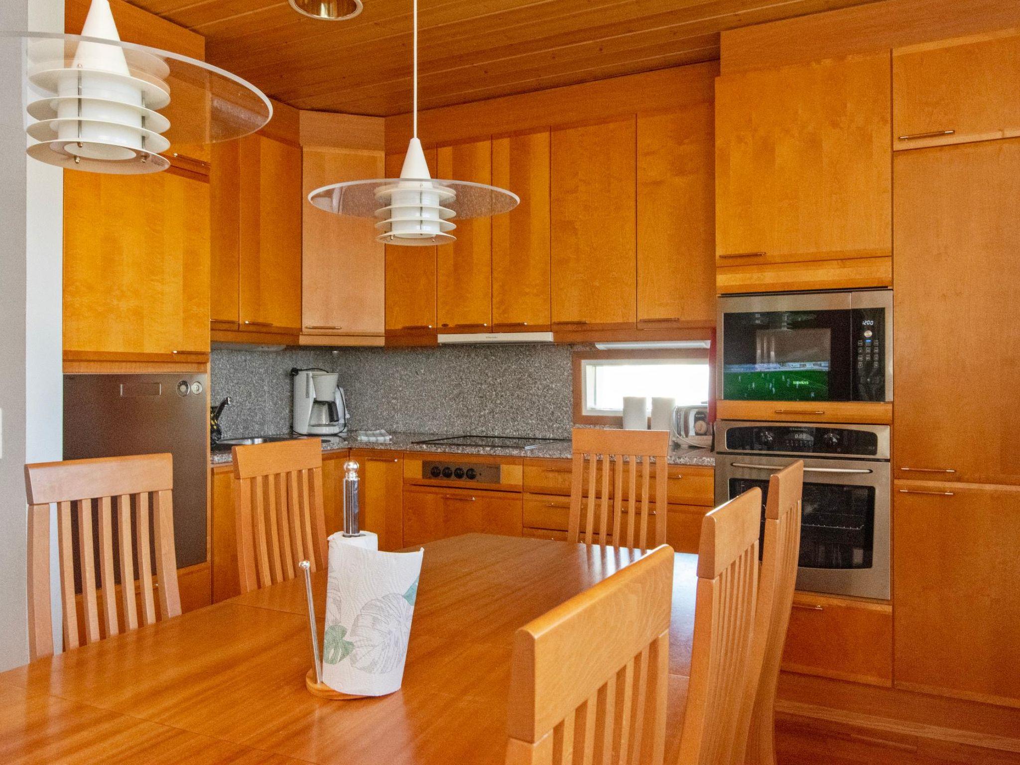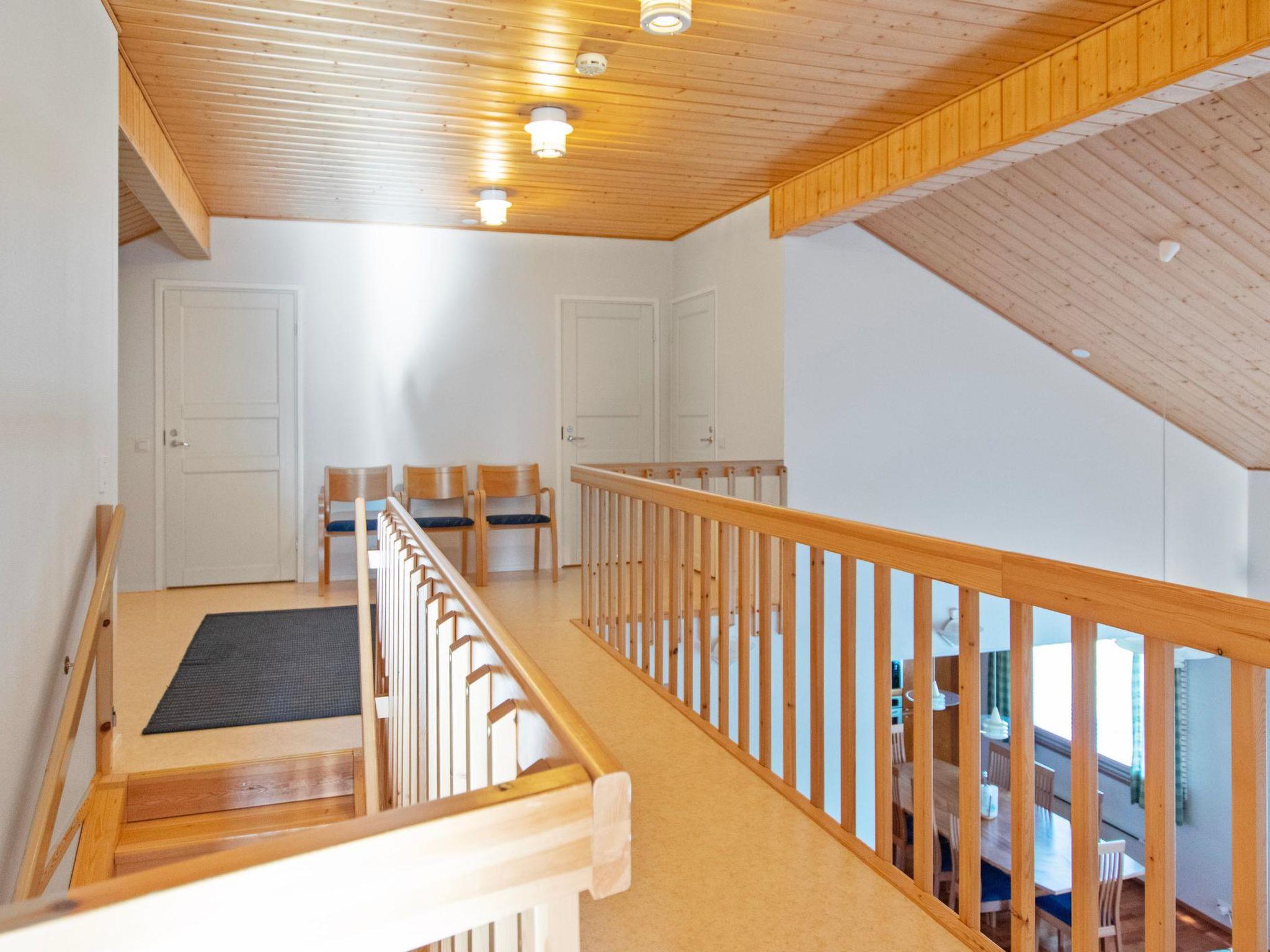 The wooden 2-floor cottage has a kitchen/living room, 6 bedrooms, fireplace room, dressing room, washroom, sauna, 3 toilets (two with shower/toilet), wardrobe and terrace. A warm ski maintenance room.
