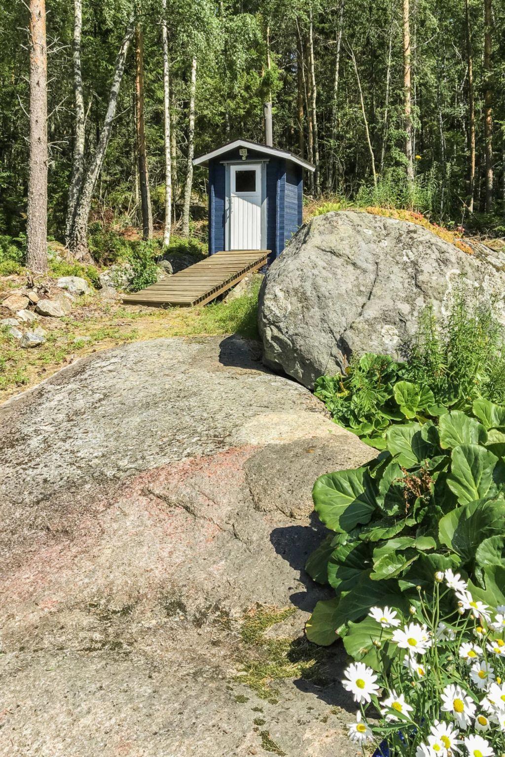 On sea shore new sauna building 18 m², wood-fired stove, dressing room, small porch, sea 10 m. Water pipe during summer, during winter water must be carried from the cottage. In dressing room extra double bed. Comfortable location for up to 2 families on holiday.
