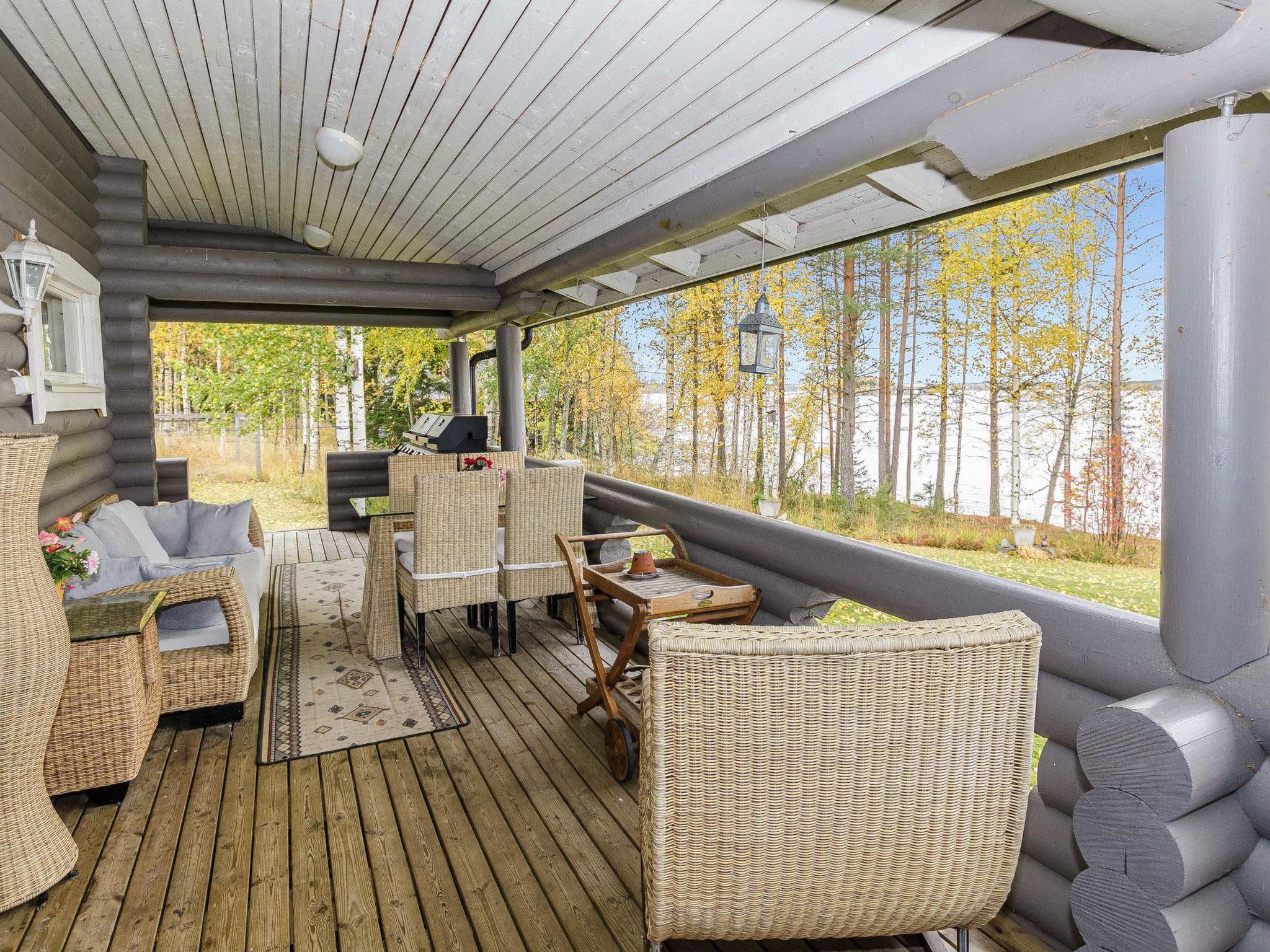 49 km to the northeast from Joensuu, lake Pielinen 35 m (871,2 km²), shallow natural sand bottom, own beach, own boat. Log cabin in one floor, built in 2001, living room, kitchen, bedroom with double bed, another bedroom with 2 beds, plus 1 foldable extra bed, electric sauna. Terrace. Separate wood-heated sauna with washroom, dressing room and fireplace room on the beach. There are electricity and water pipe in the sauna. Fridge, electric stove and spreadable sofa in the fireplace room. There are spreadable sofa also in the dressing room. The lakeside sauna can be used from May to Aug