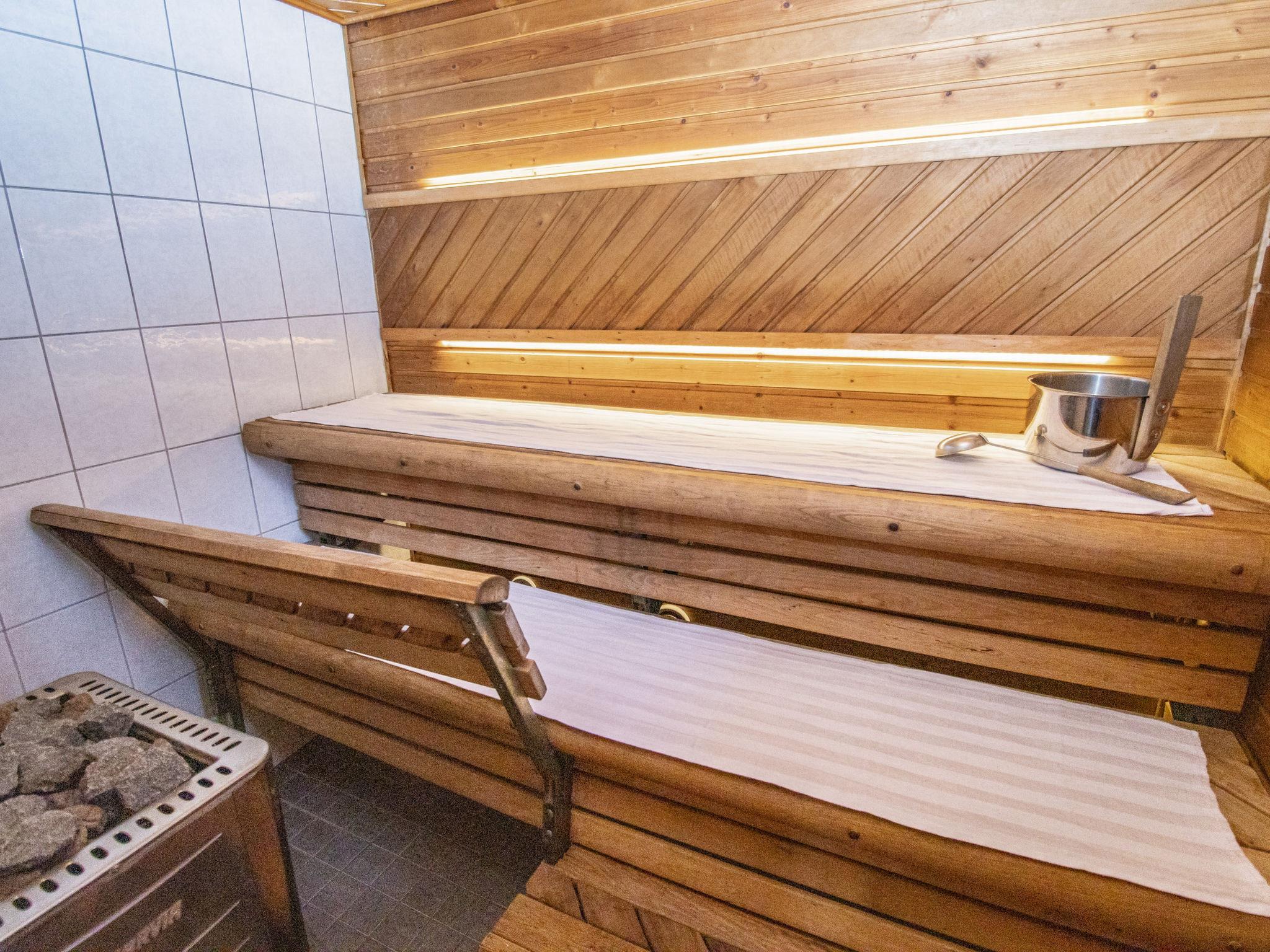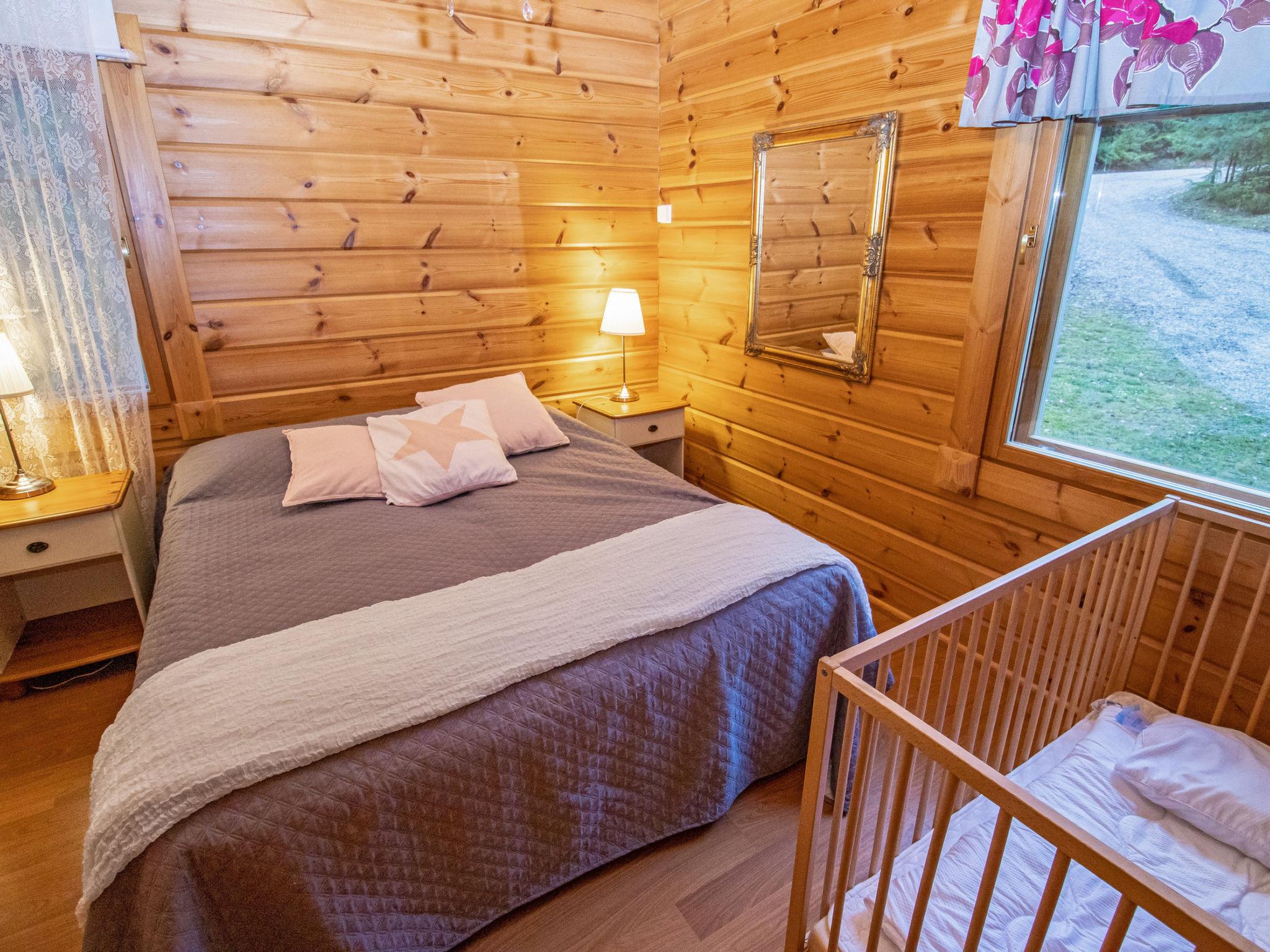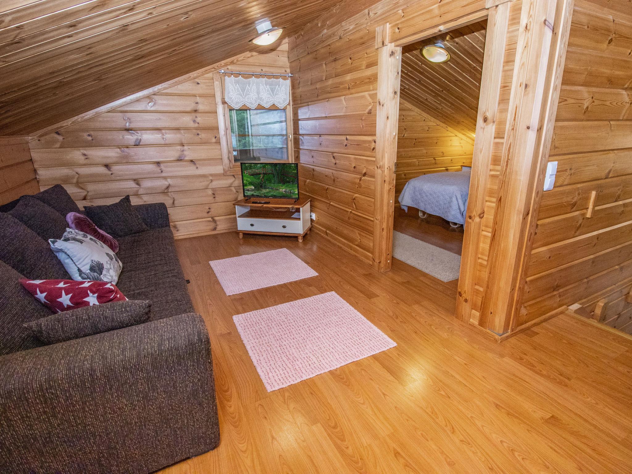 On the ground floor of the cabin, there is a kitchen, a spacious living room and two bedrooms. One bedroom has a double bed, while the beds in the second bedroom can be placed together or kept separate. A separate WC and a dressing/utility room are also located on the ground gloor, with direct access to a private terrace for cooling off after the sauna. The dressing room also has its own refrigerator.