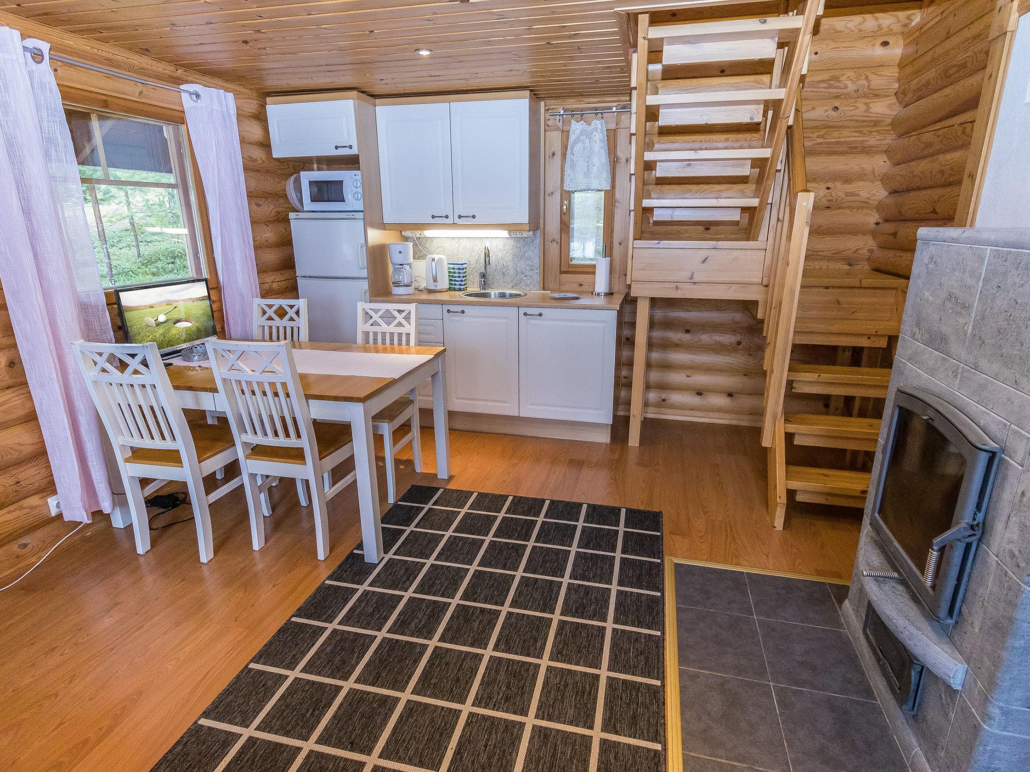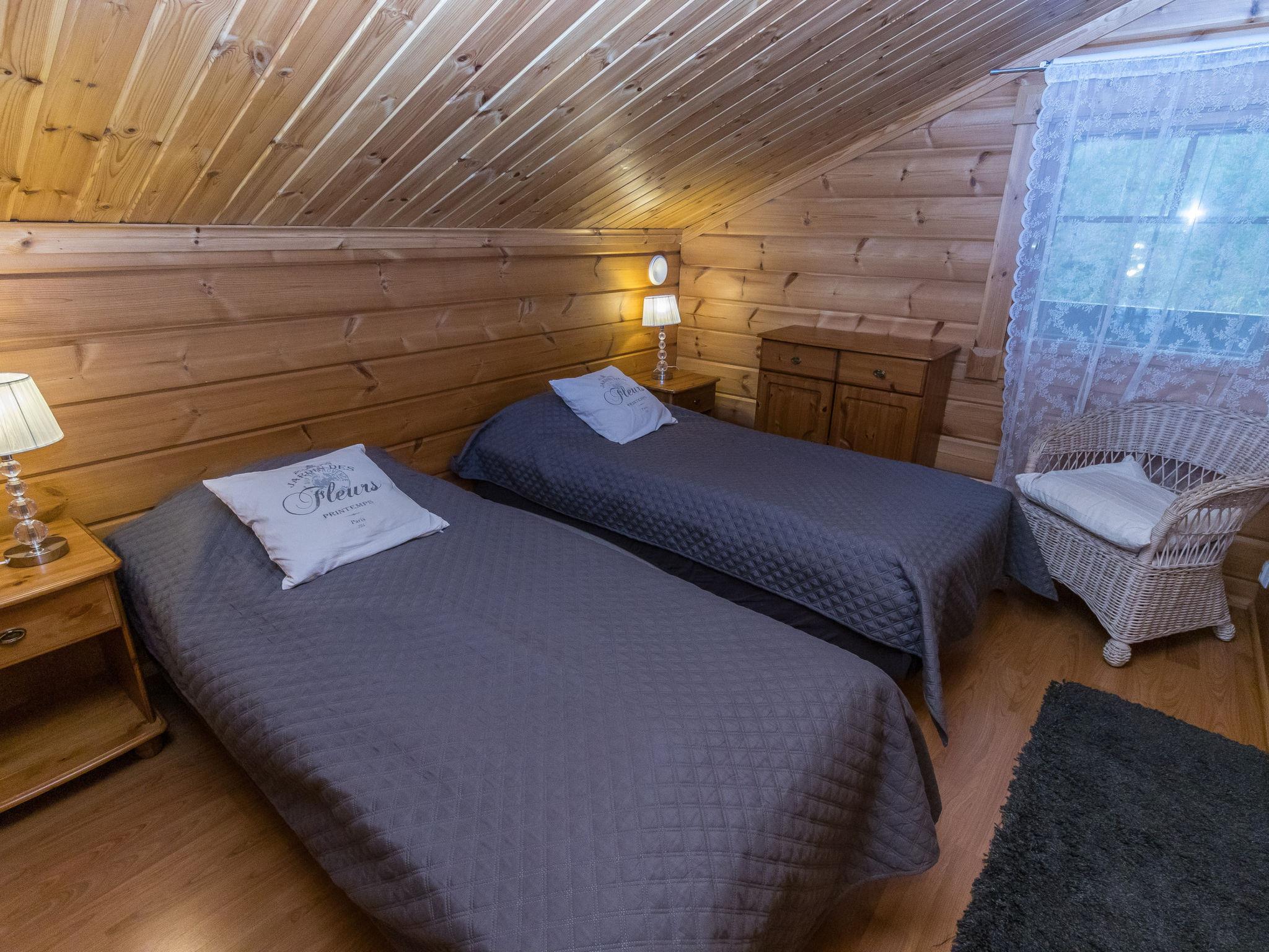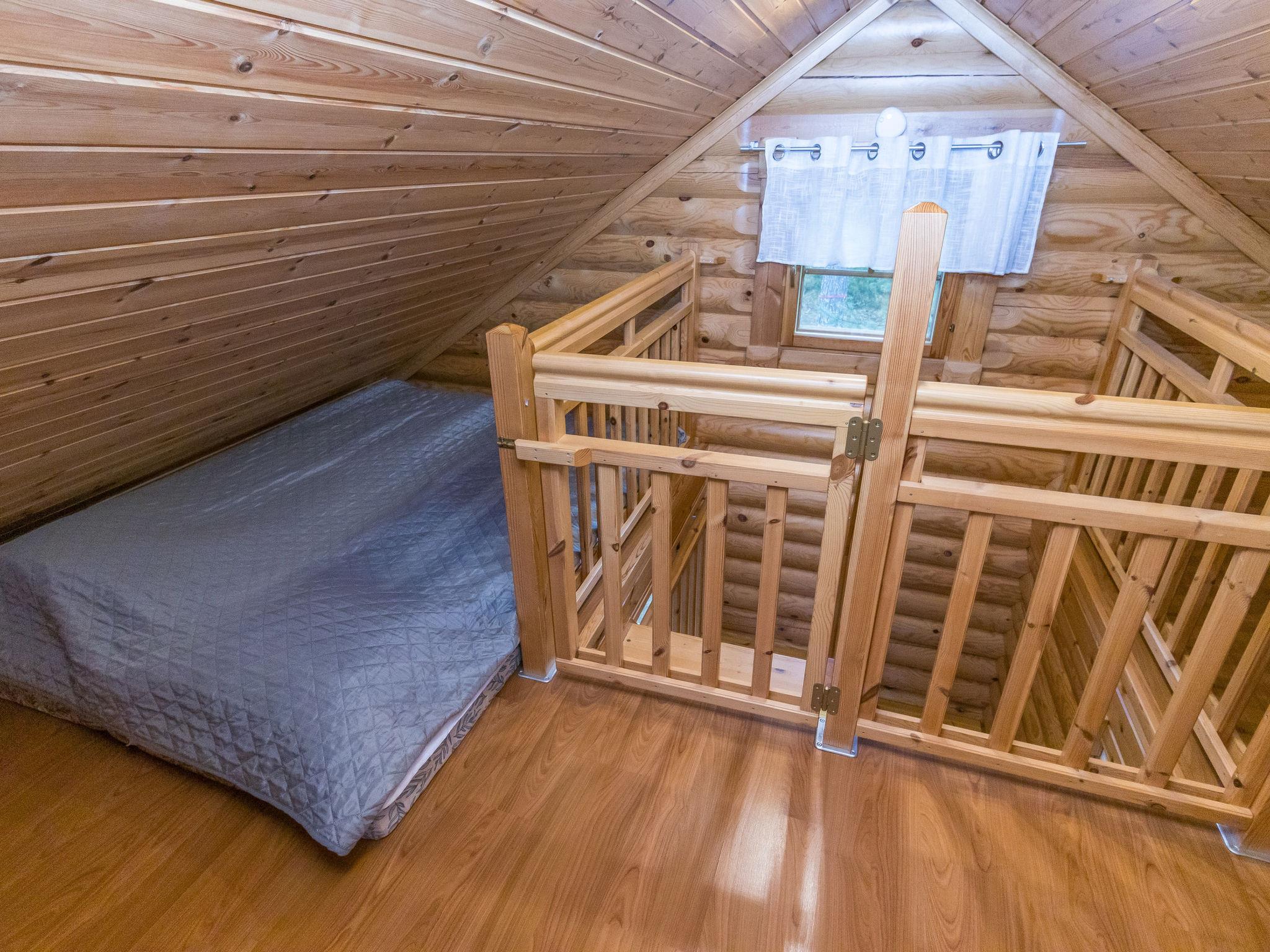The main cabin’s ground floor features a kitchen, a spacious living room and a bedroom with a double bed. There is also a separate WC, an electric sauna with instant ready sauna stove, a washroom with two showers, and a dressing/utility room with direct access to a terrace for cooling off