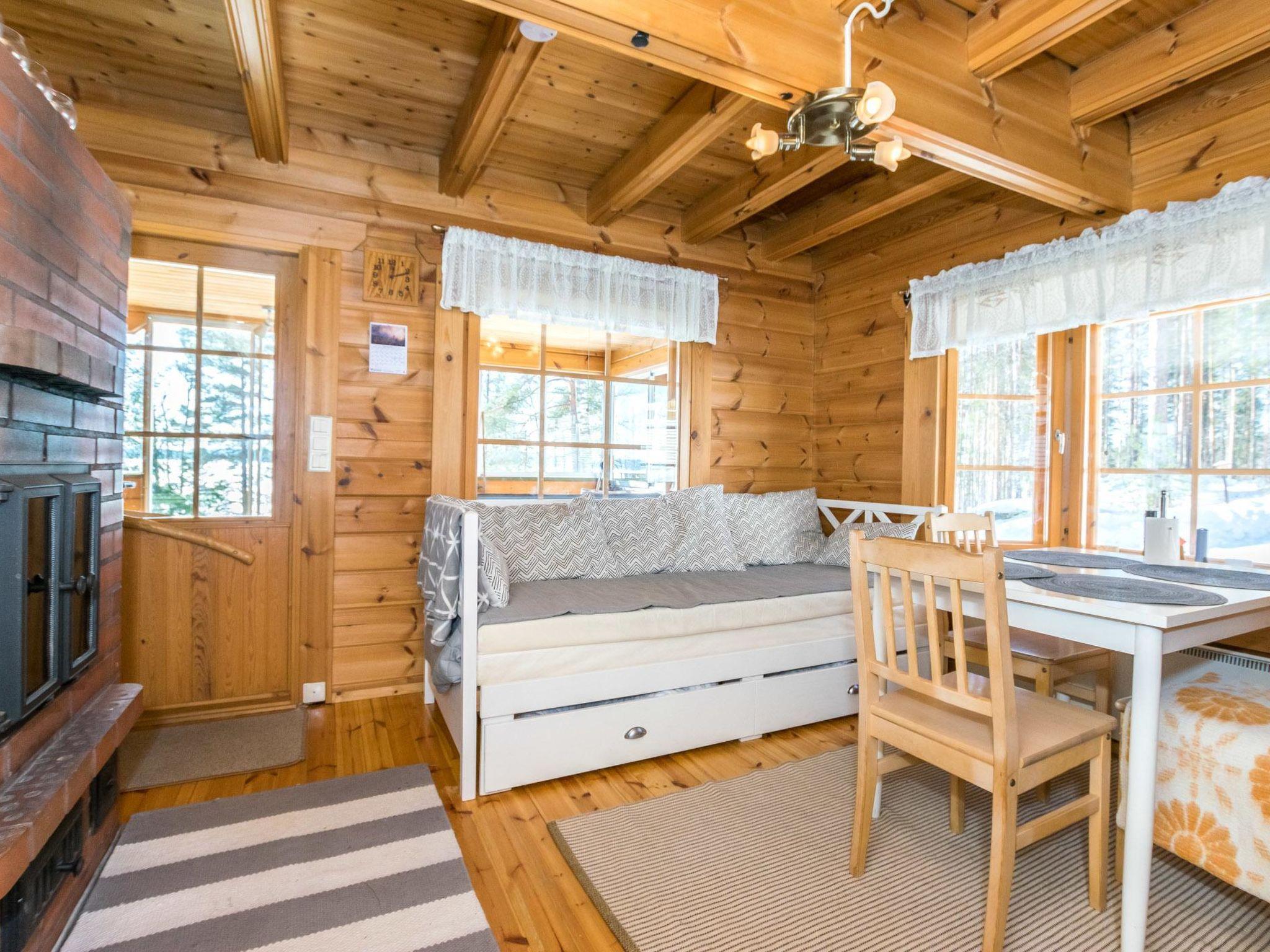 Planed log cabin 2021, living room/kitchen, dining group for four, dishwasher, sofa bed (140x200 cm bed) in living room, sleeping alcove with 160x200 cm Yankee bed, WC with shower and washing machine, running water from the own well (there is also boiler in this cabin), spacious glazed terrace.