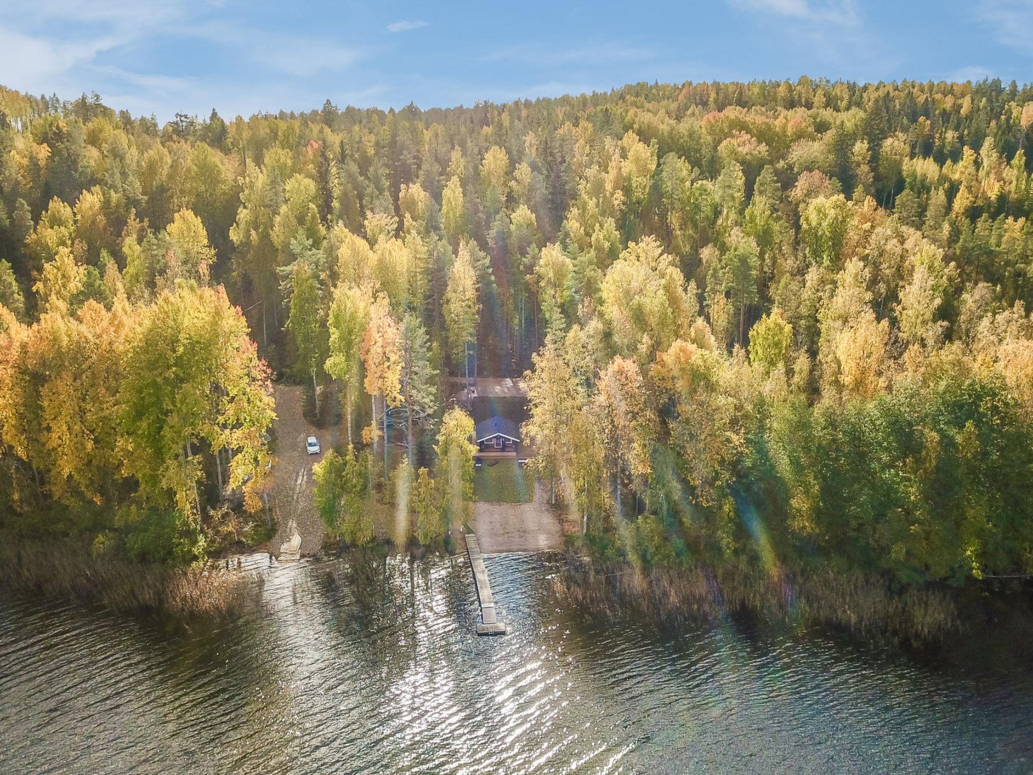 53 km south of Jyväskylä, Lake Päijänne 30 m. Log cabin (2002) and wood-heated lakeside sauna (2024). Shallow beach with a sandy bottom, a long pier, own rowing boat. The beach has been sanded from an area of 10m*20m up to the end of the pier.
