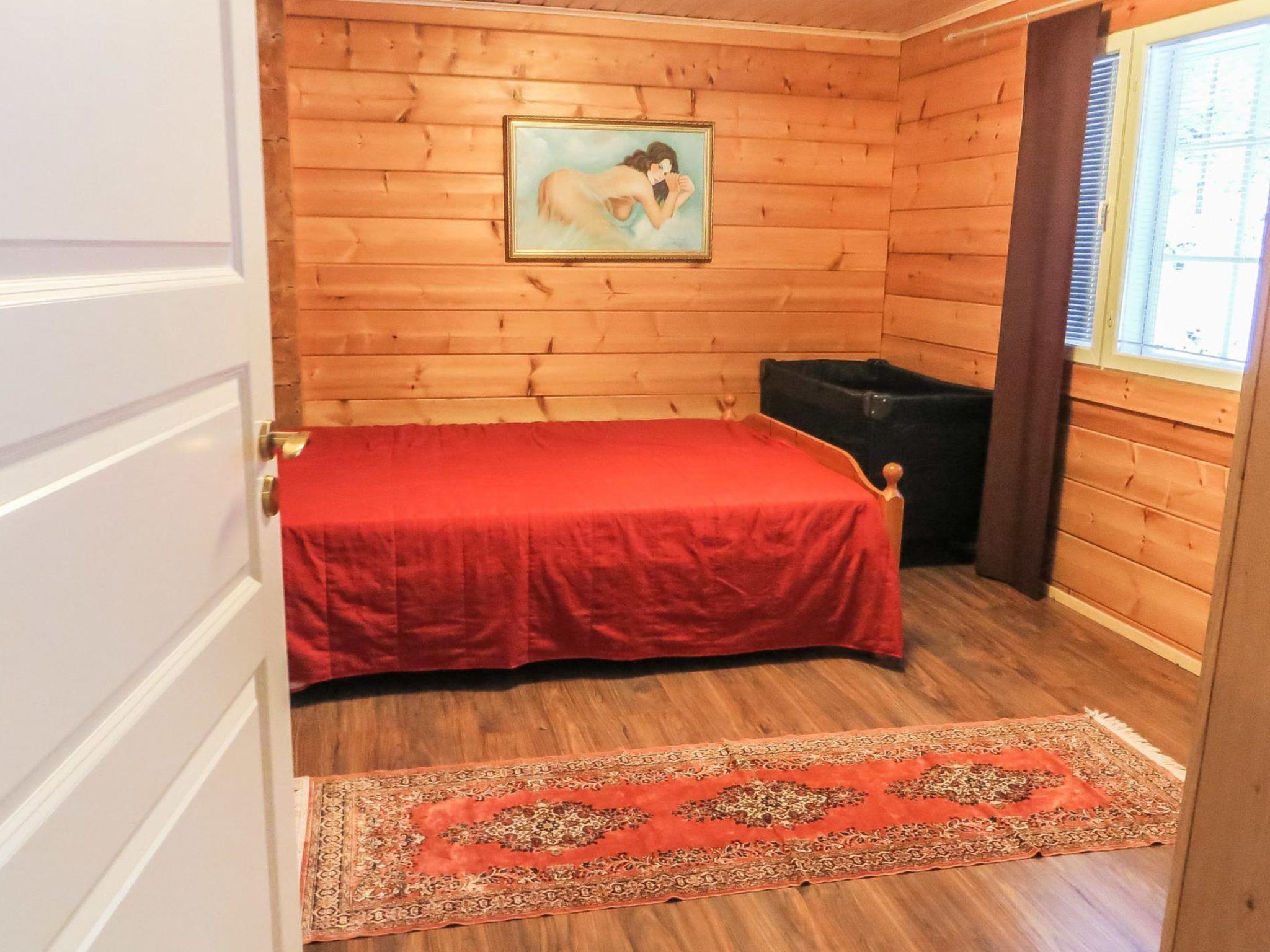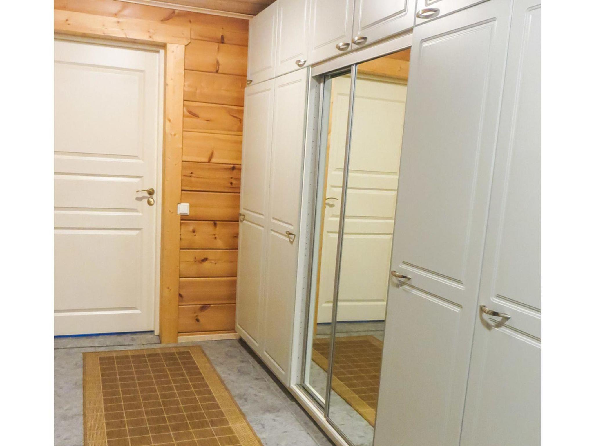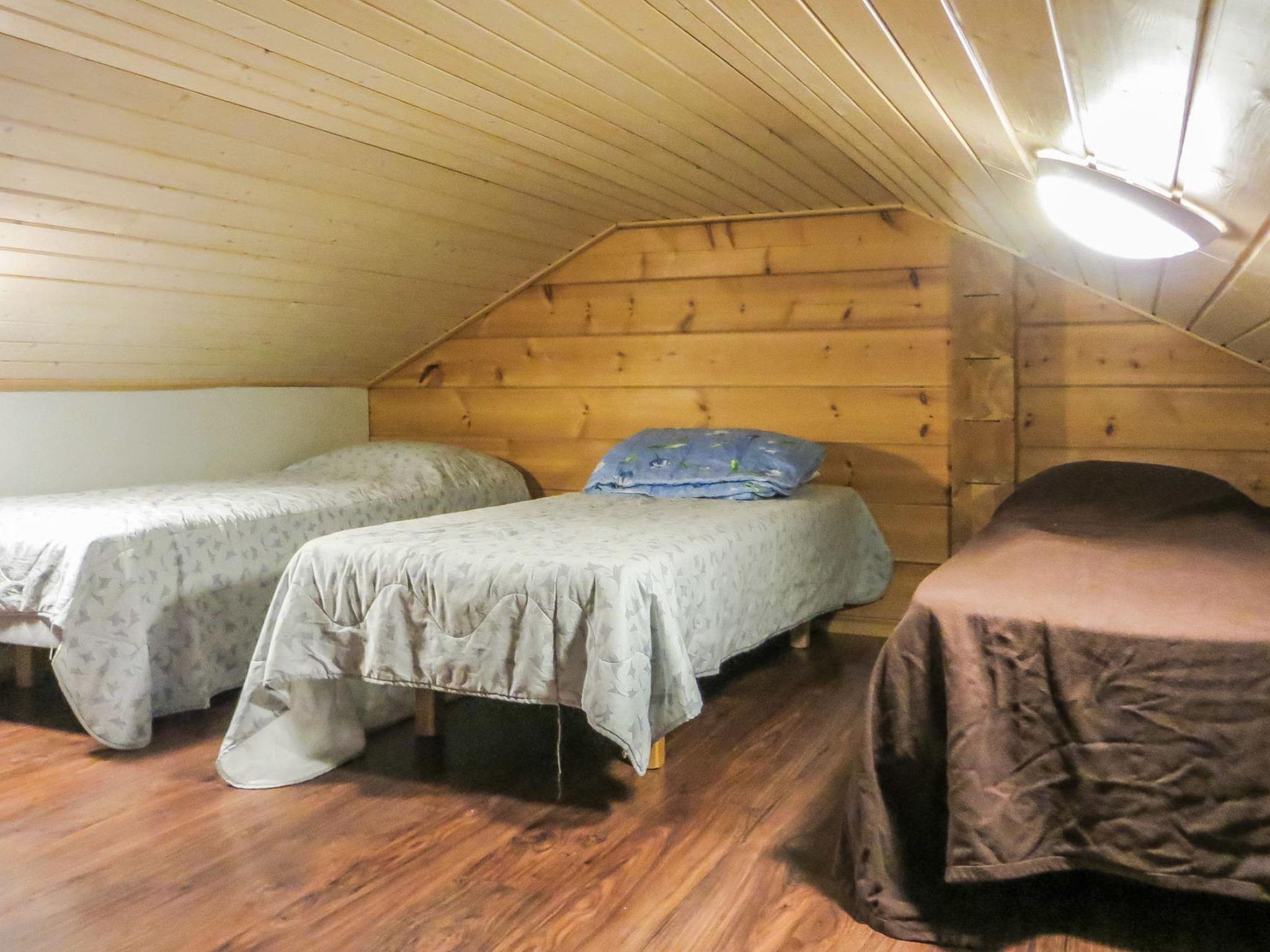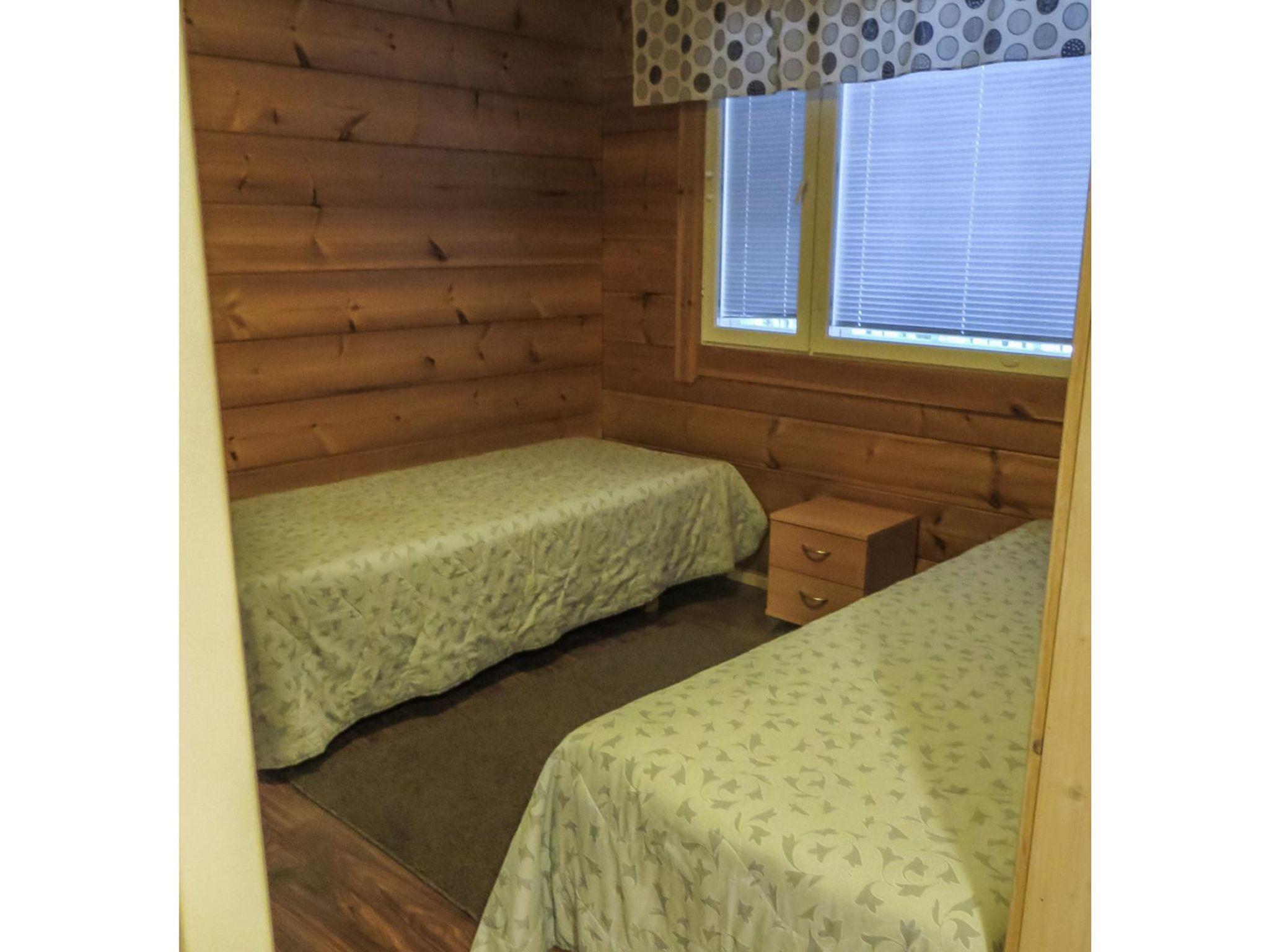 Log holiday home 2007. Downstairs: living room/kitchen with ceiling open to upstairs, 3 bedrooms each with 2 beds, dressing room/utility room, washroom, sauna (electric stove), roofed porch (35 m²) with wheel chair ramp.