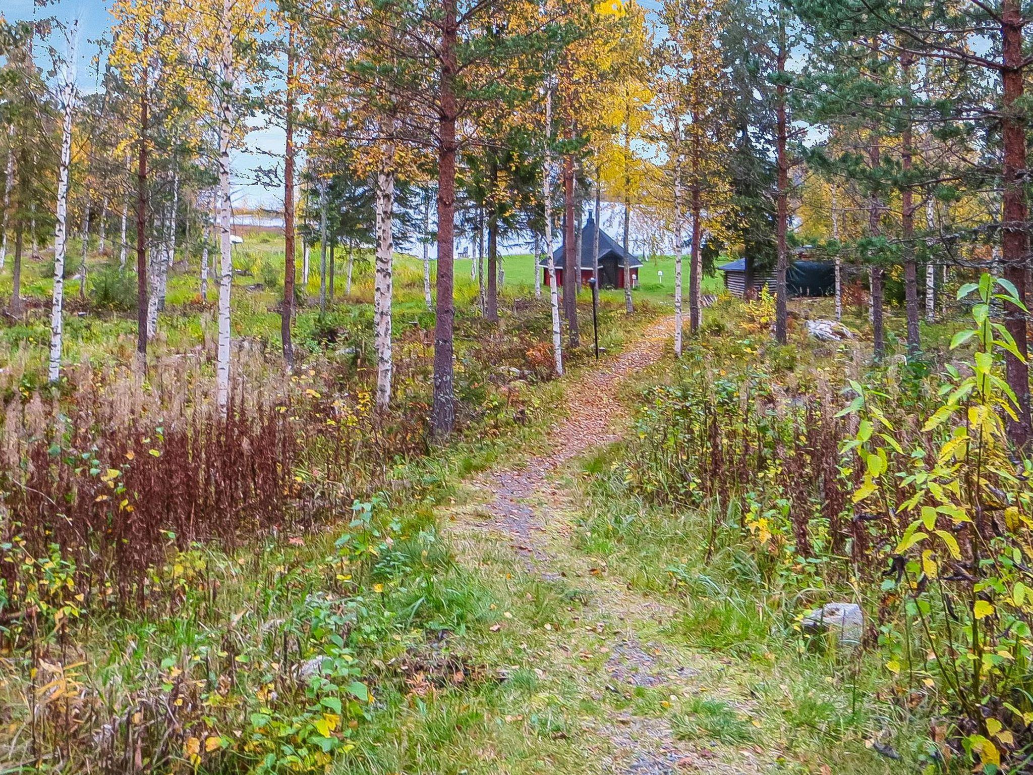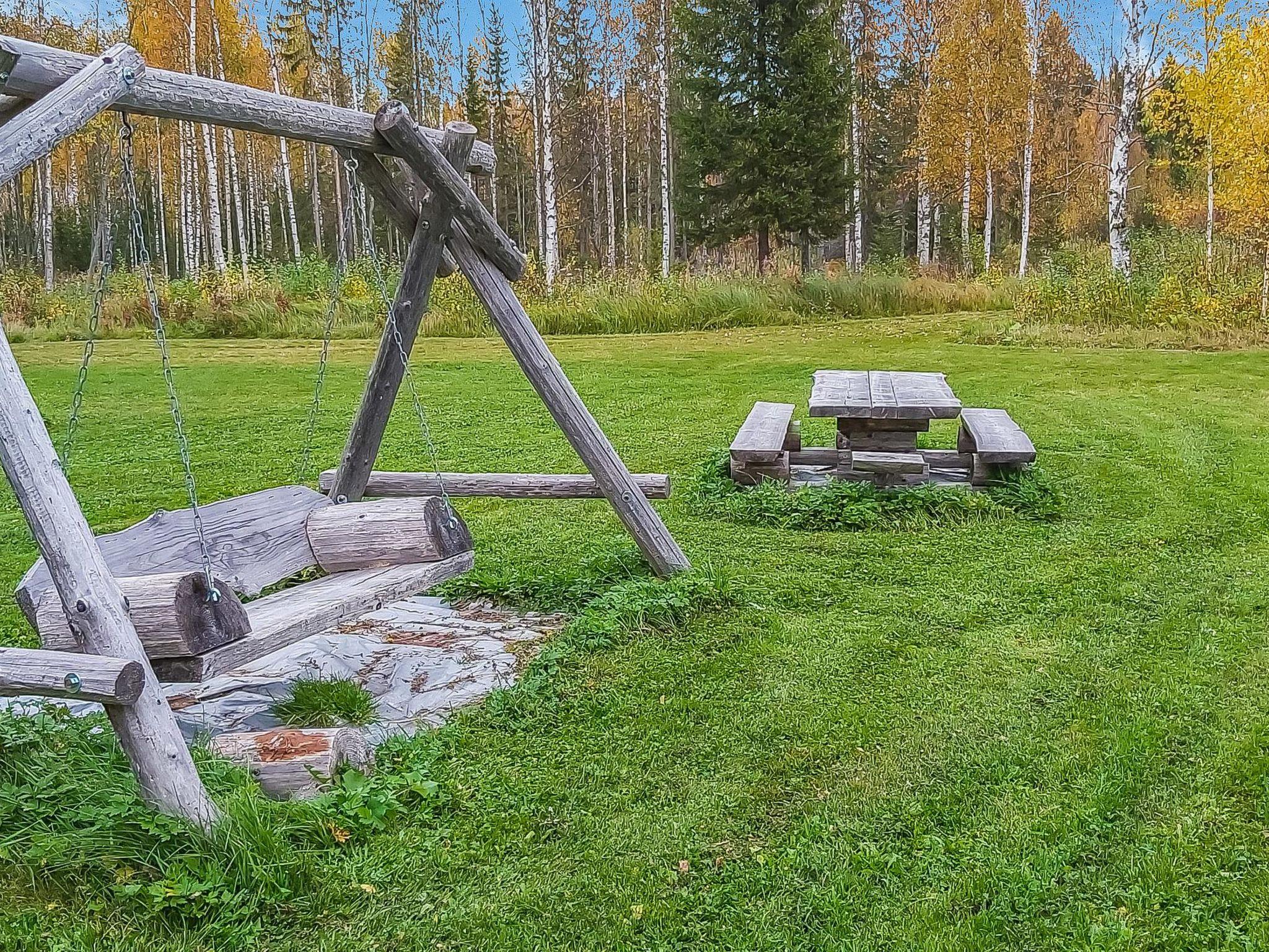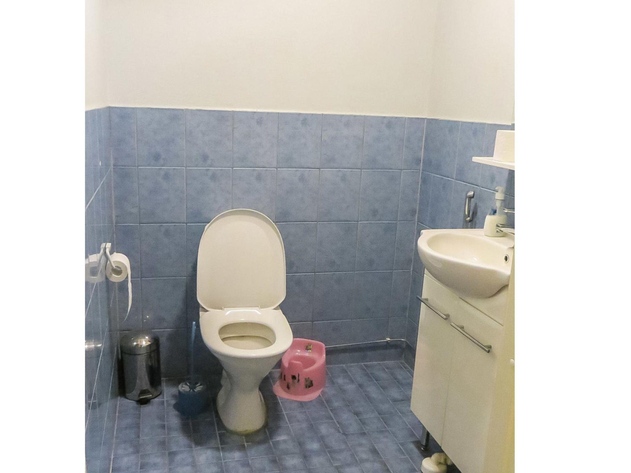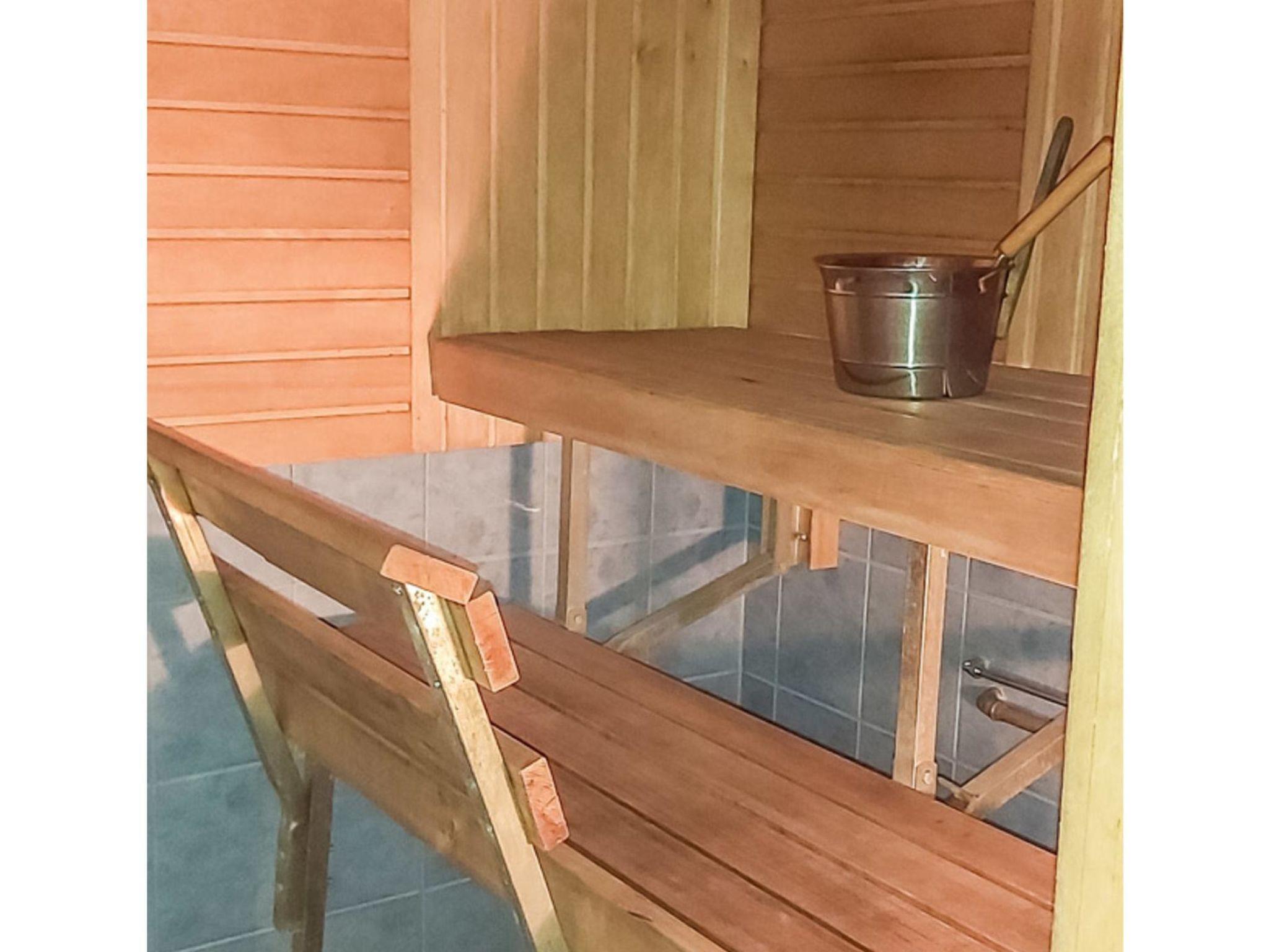 Log holiday home 2007. Downstairs: living room/kitchen with ceiling open to upstairs, 3 bedrooms each with 2 beds, dressing room/utility room, washroom, sauna (electric stove), roofed porch (35 m²) with wheel chair ramp.