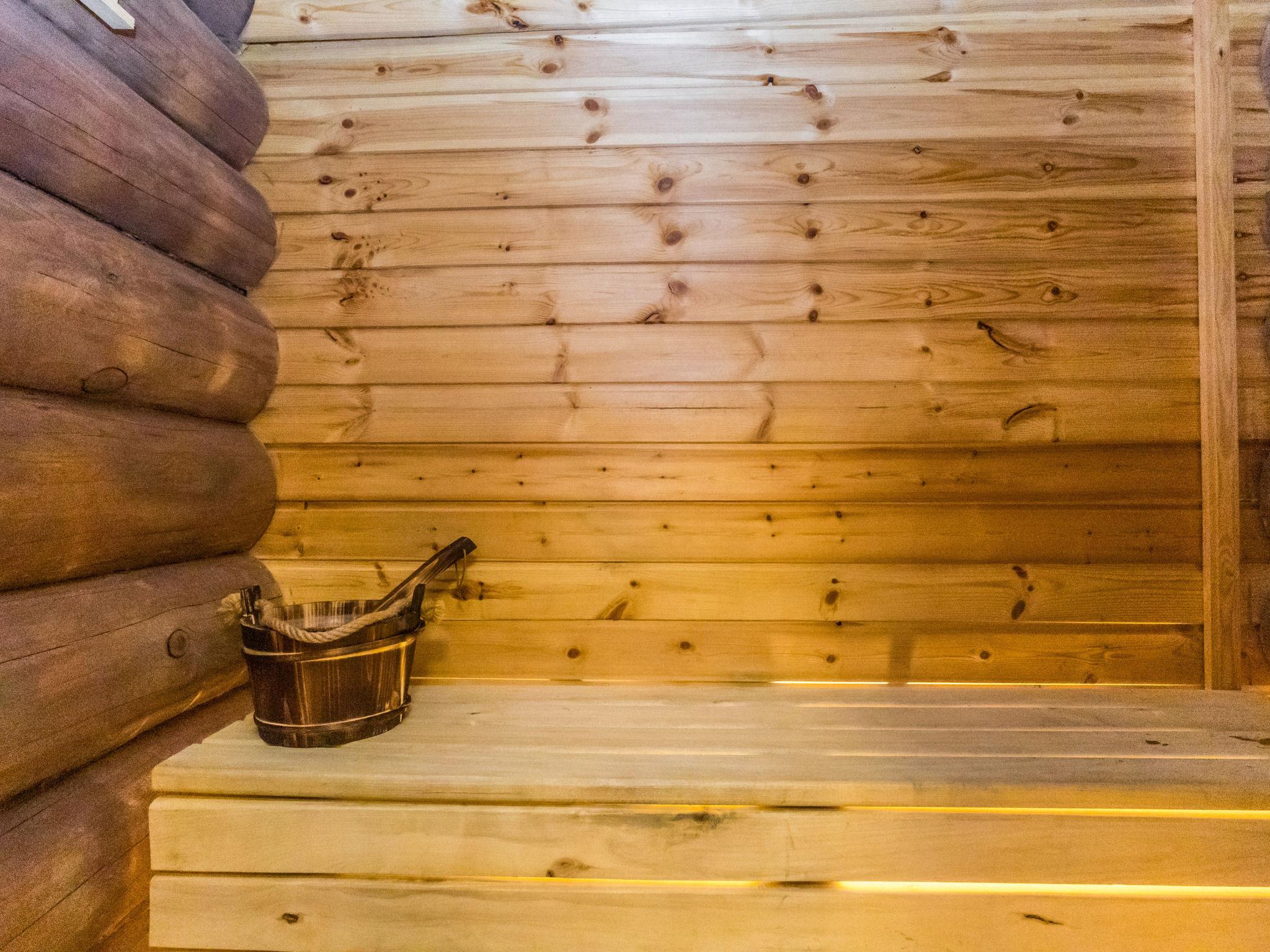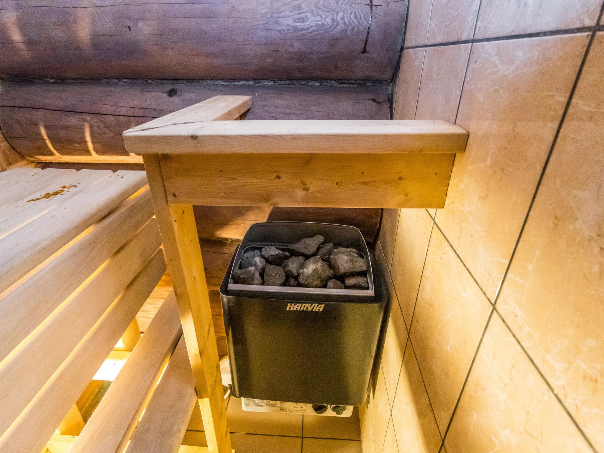 The bright living room/kitchen is functional and well-equipped, providing excellent facilities for cooking and spending time together. There is also a separate WC, a washroom, and a sauna for your use.
