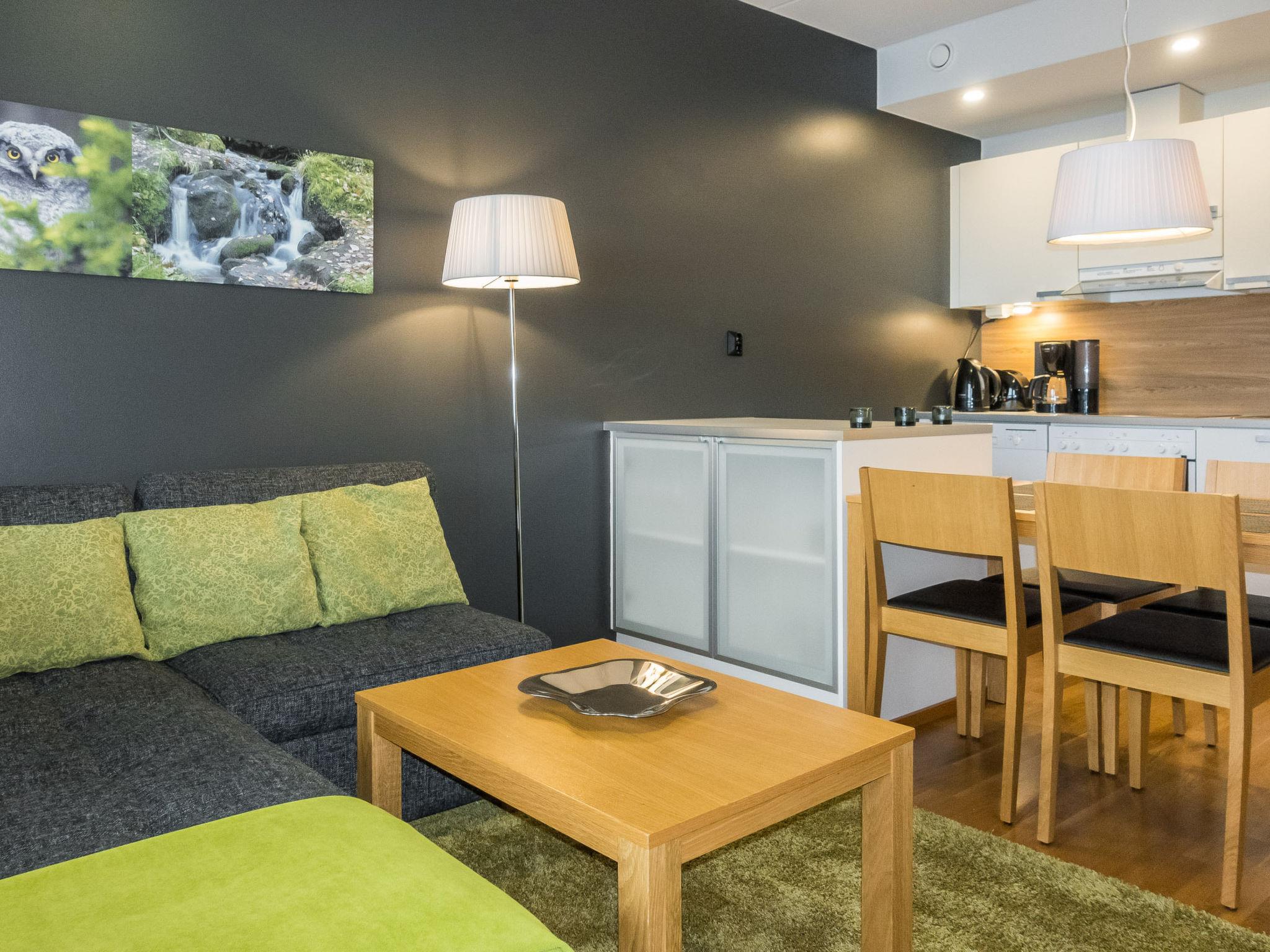 Situated near the Levi Panorama Hotel in Levi's tourist center, this chalet apartment offers a stunning holiday living experience. Situated on the top floor (6th floor) of the building, an elevator ensures comfortable access. The apartment is crowned by a magnificent view of the Levi Tourist Center.